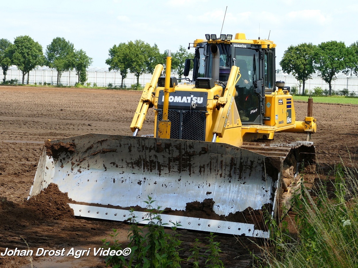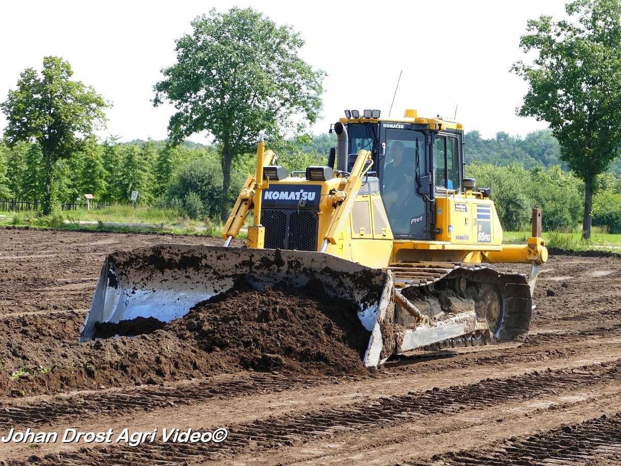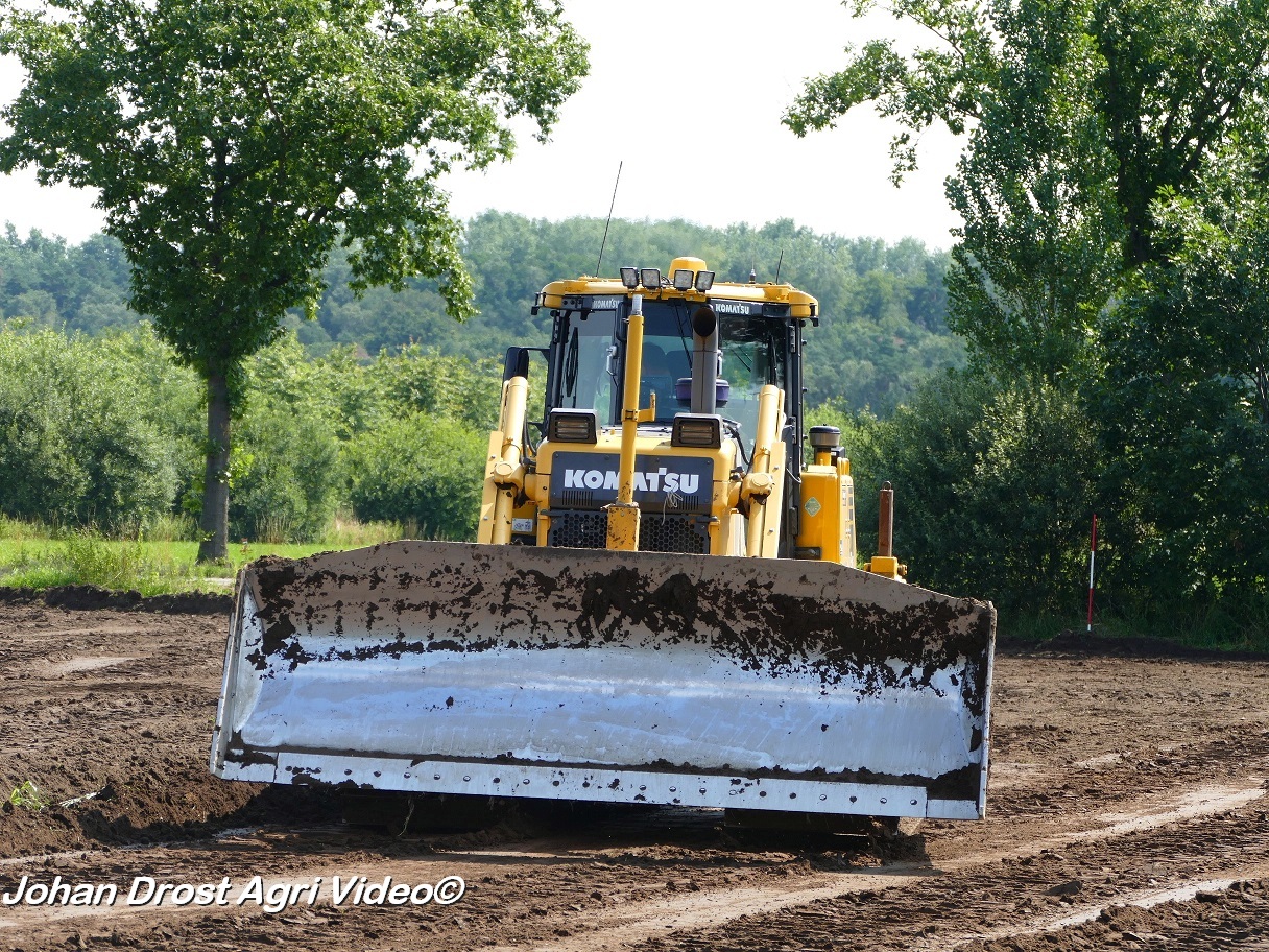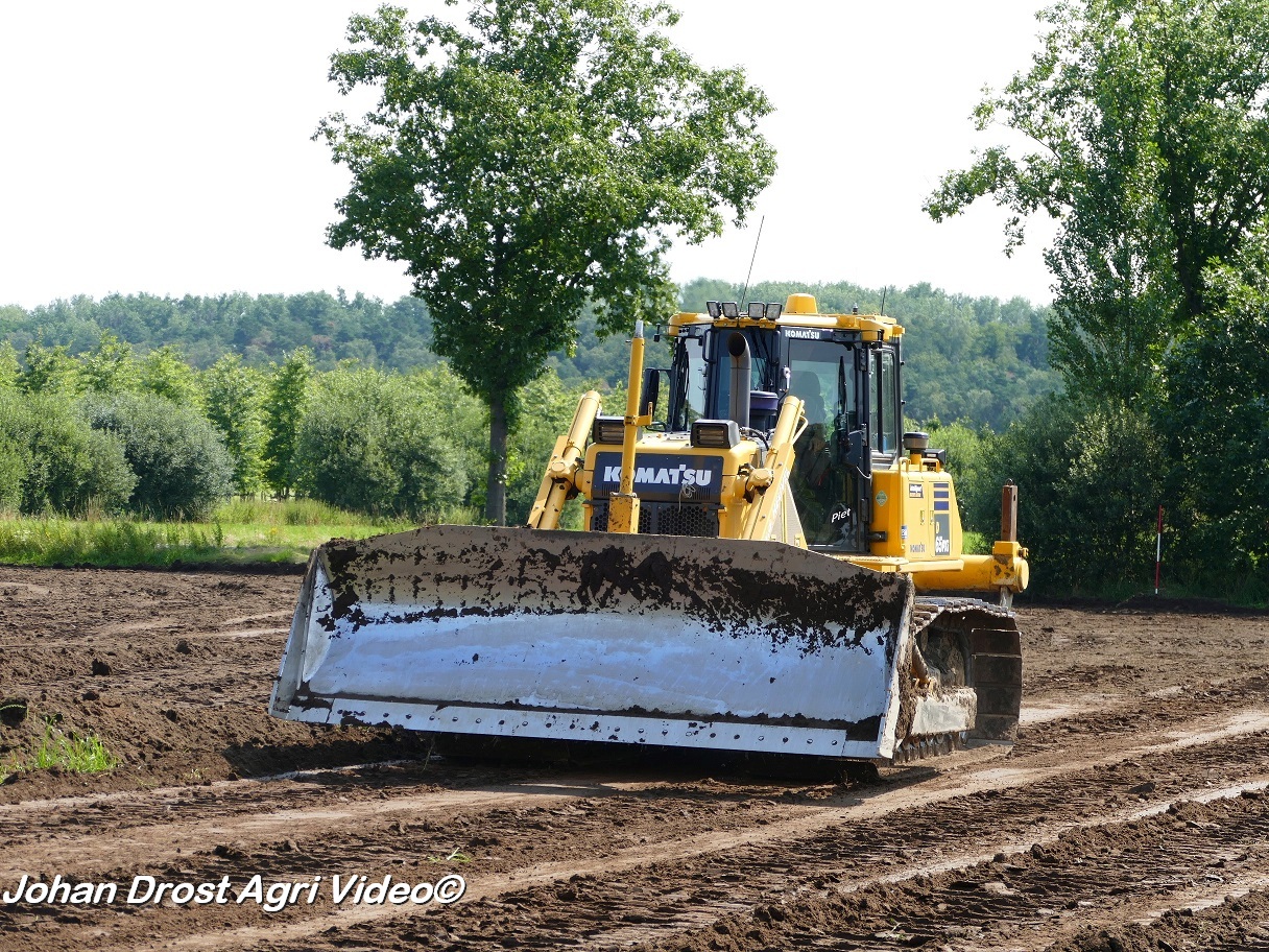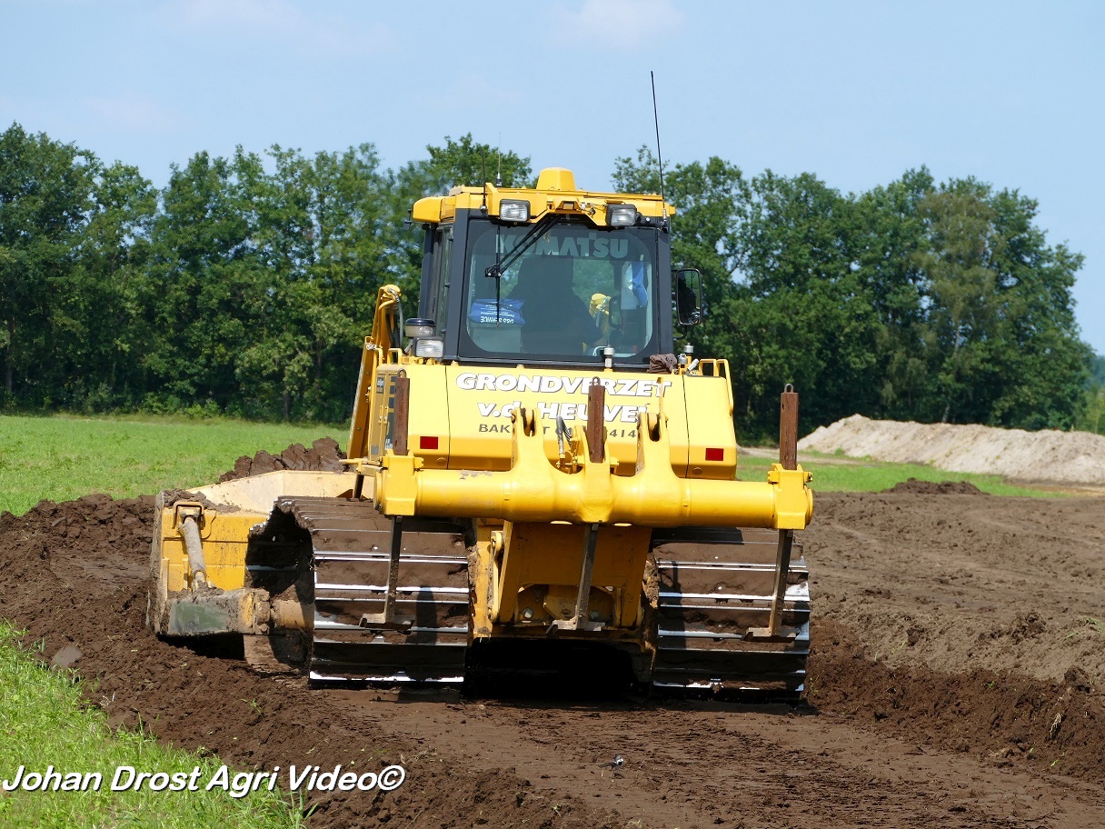 Grondverzet van den Heuvel BV uit Bakel (NB) aan het egaliseren t.b.v. kassenbouw in Belfeld (LB) met een Komatsu D65 PXi-bulldozer.