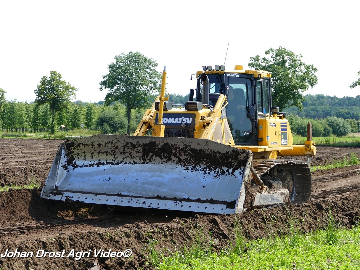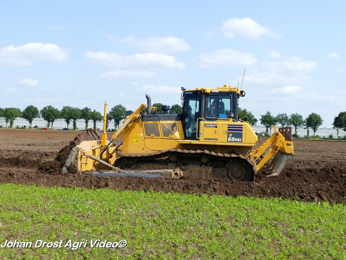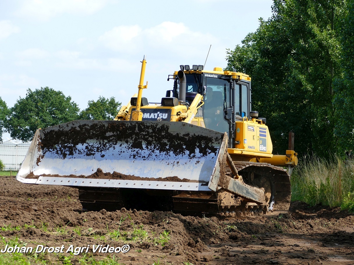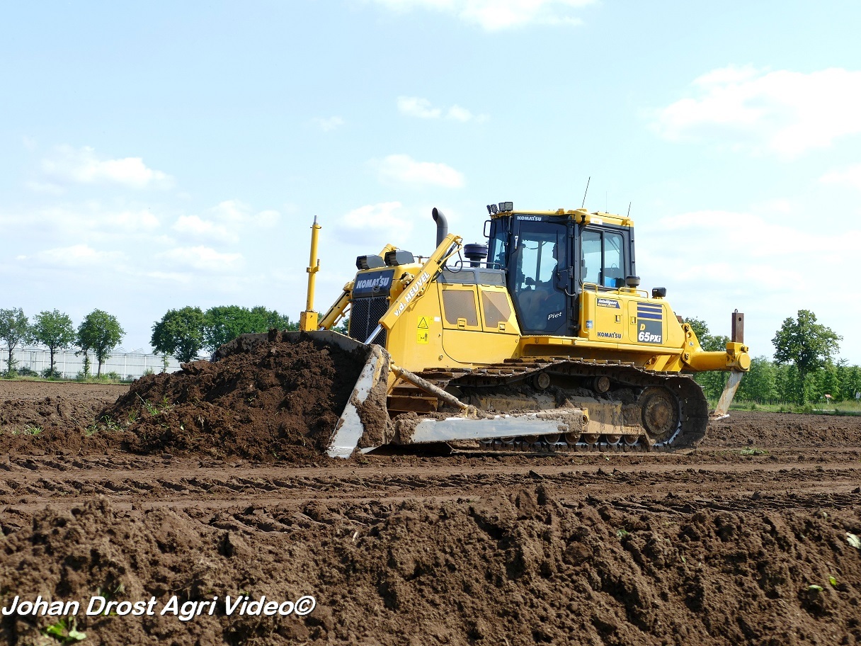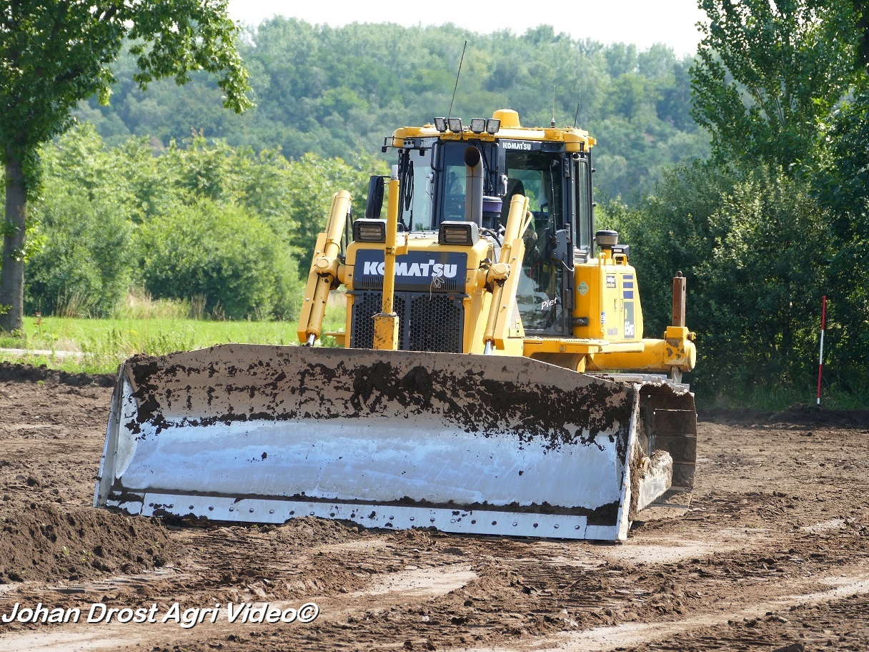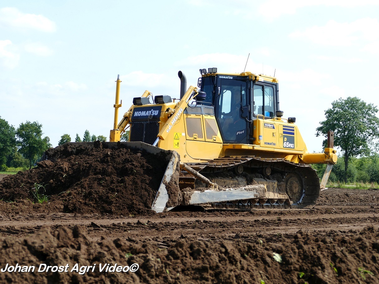 Grondverzet van den Heuvel BV uit Bakel (NB) aan het egaliseren t.b.v. kassenbouw in Belfeld (LB) met een Komatsu D65 PXi-bulldozer.