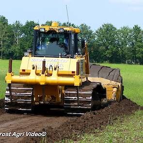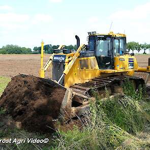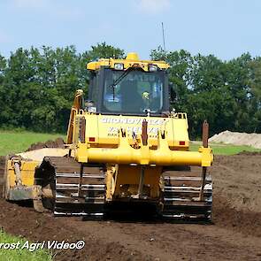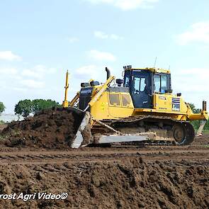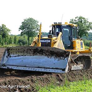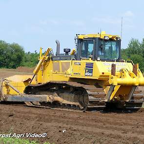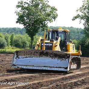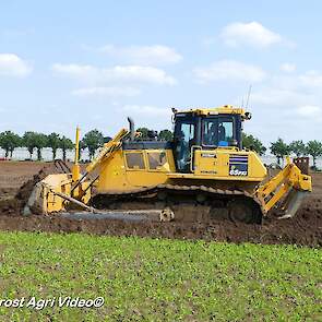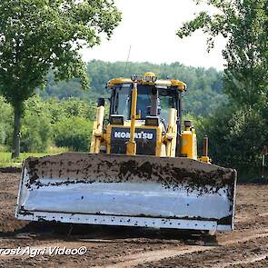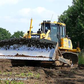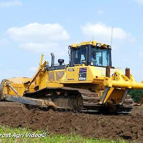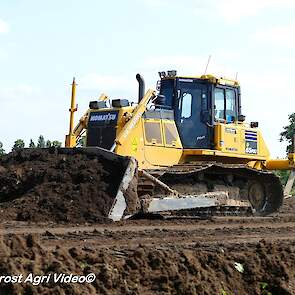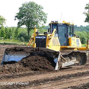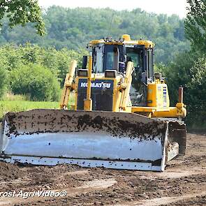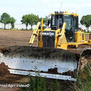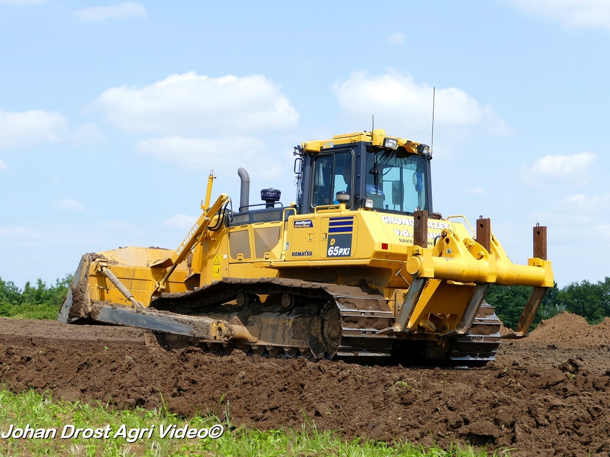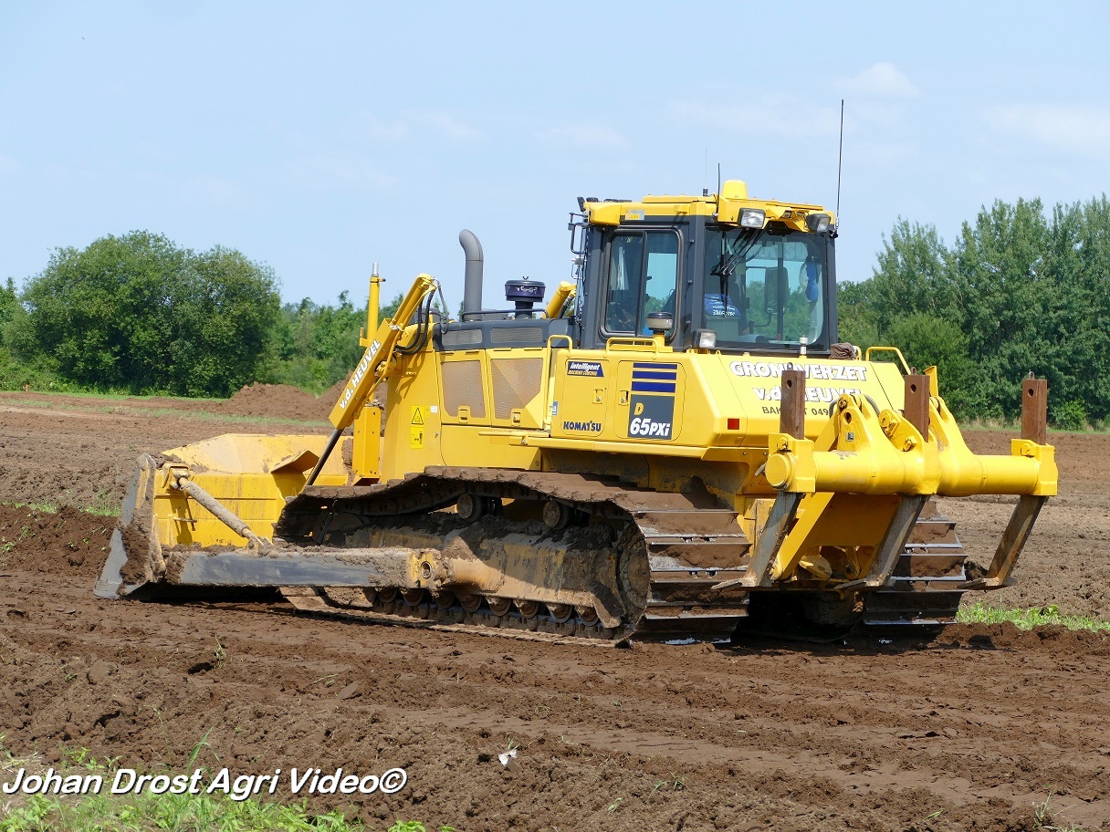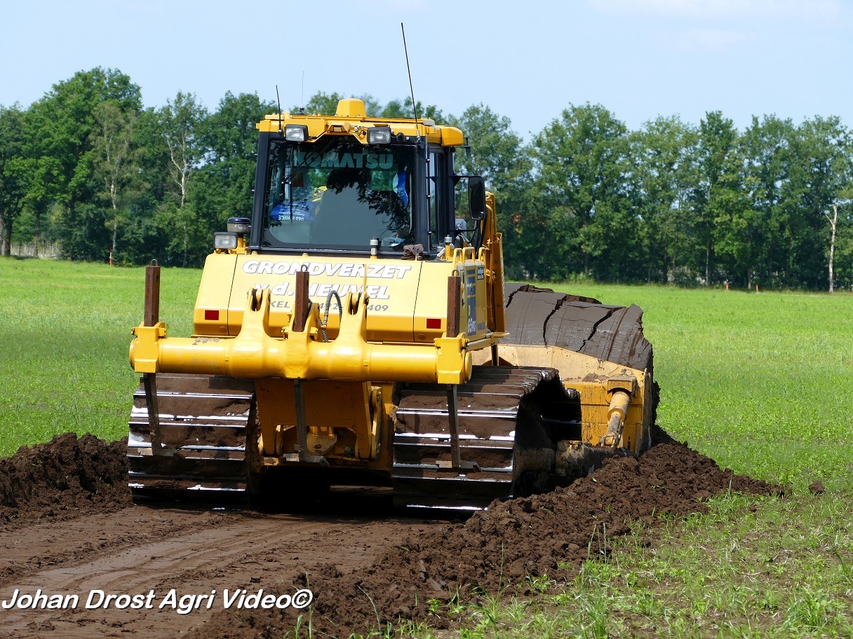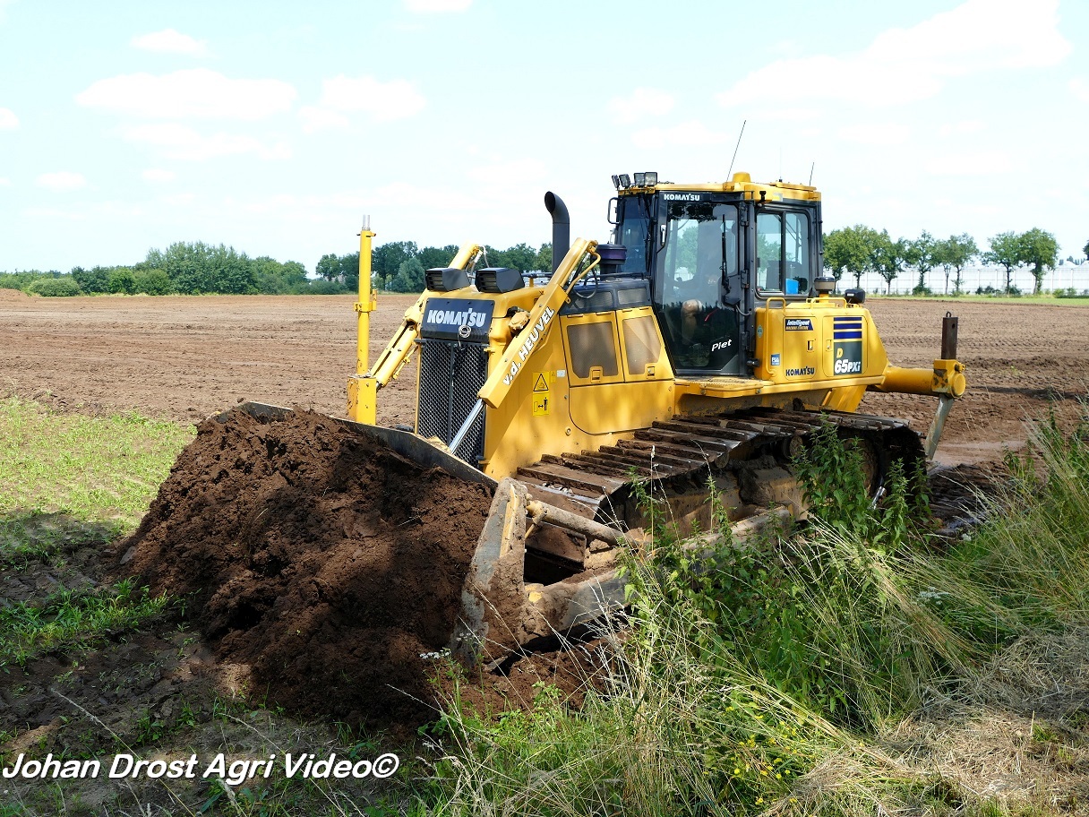 Grondverzet van den Heuvel BV uit Bakel (NB) aan het egaliseren t.b.v. kassenbouw in Belfeld (LB) met een Komatsu D65 PXi-bulldozer.