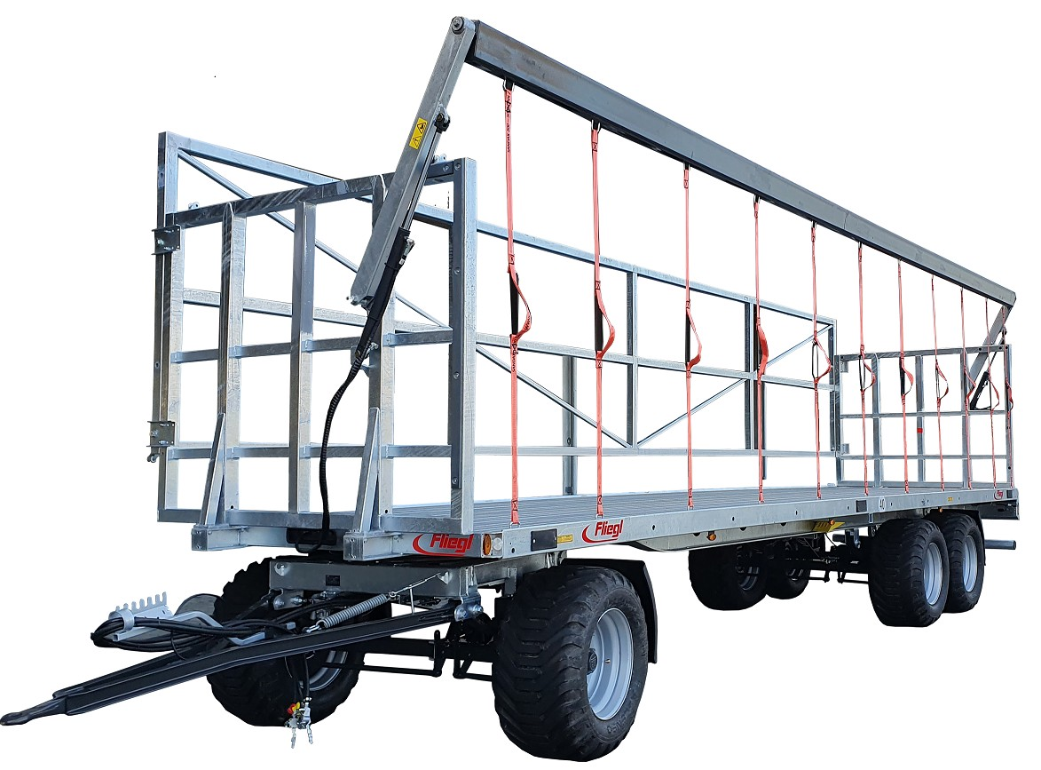 Nieuw van de Duitse fabrikant is de Fliegl DPW210 BL Ultra. Deze 21-tons wagen is een mooie en niet te zware oplossing voor het transport van kisten en balen. Deze wagen heeft aan een zijde een vaste gegalvaniseerde ladingbeveiliging, en aan de andere zijde wordt de lading gezekerd door spanbanden welke door een hydraulisch frame op spanning worden getrokken. De spanbanden kunnen een stukje oprekken; wanneer de balen overmaats zijn (geworden) geeft dat geen problemen met het sluiten van de zijkant. Er kan met deze Fliegl-wagen ook met geopende zijkant gestuurd en gereden worden op het land. De wagen is voorzien van een stalen bodem met opstaande randen aan de buitenzijde om het glijden van pallets/ kisten te voorkomen.