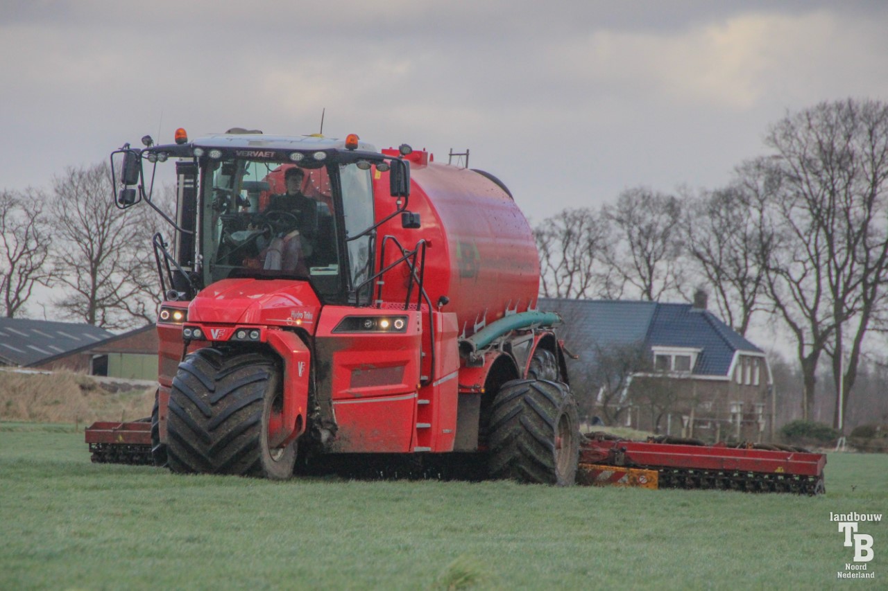 Deze week was loonbedrijf Zeijerveld (DR) aan het mest injecteren. Dat deden ze met de Vervaet Hydro Trike met een Vredo-graslandbemester erachter.