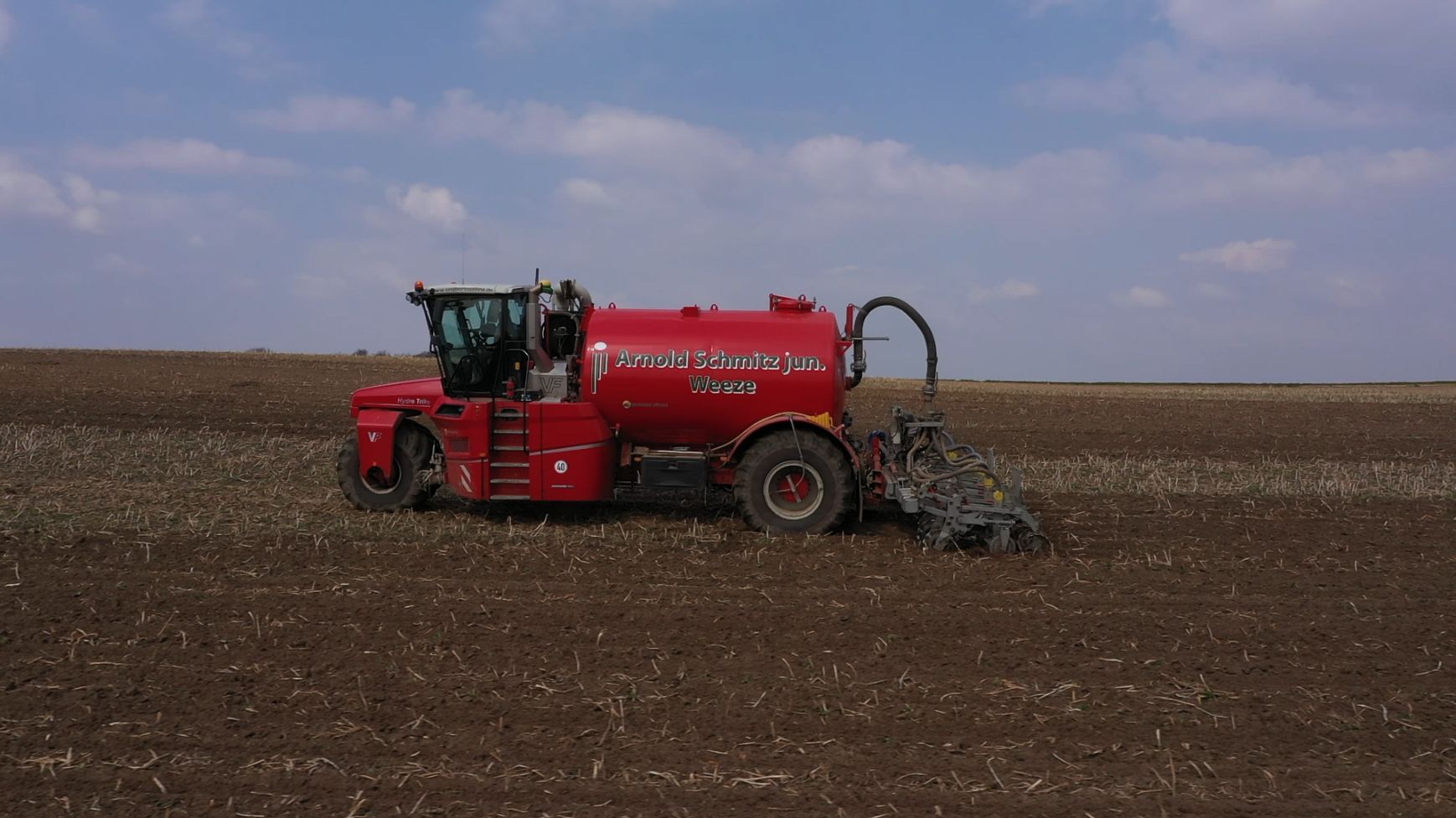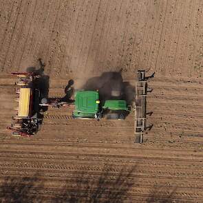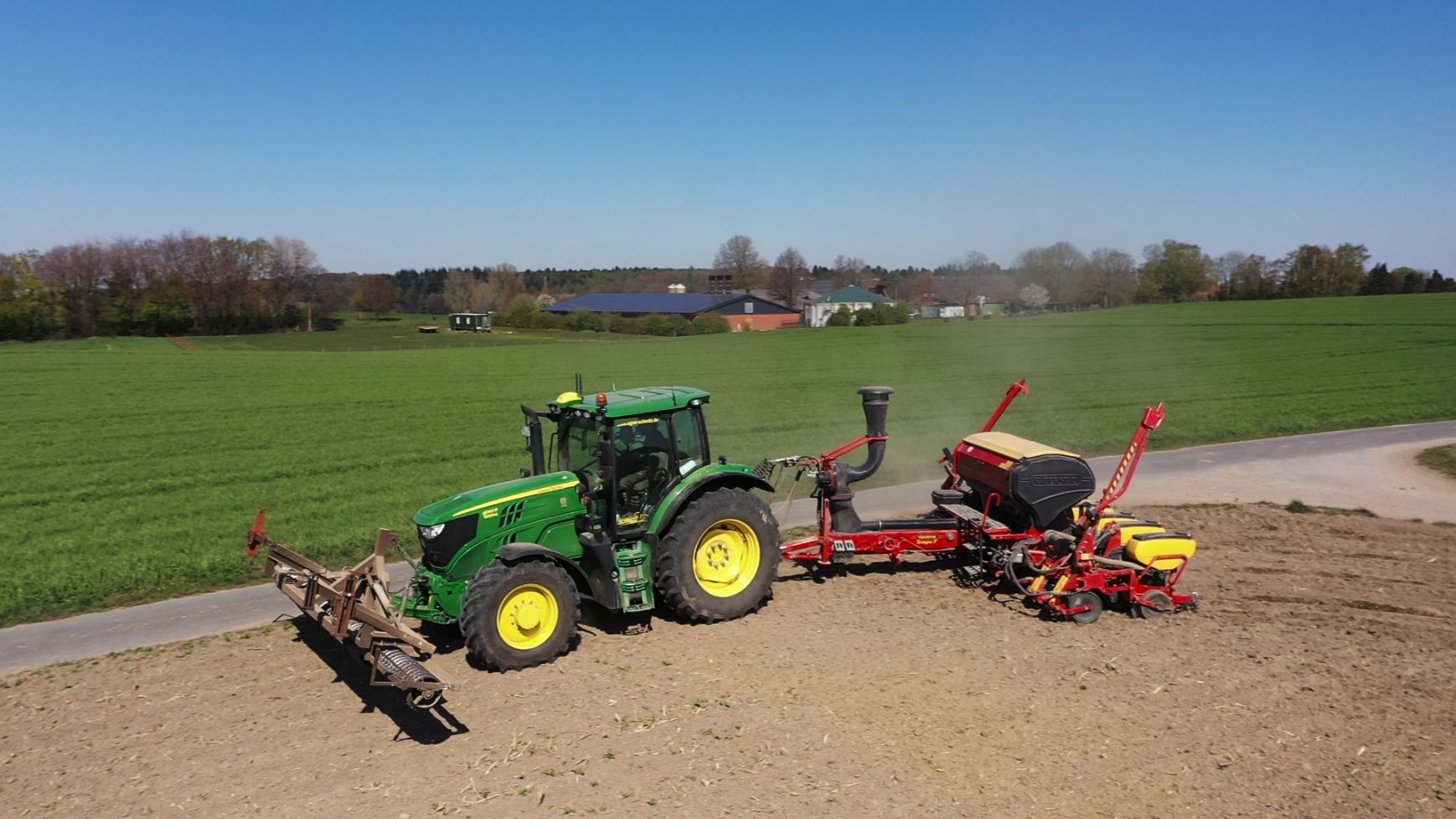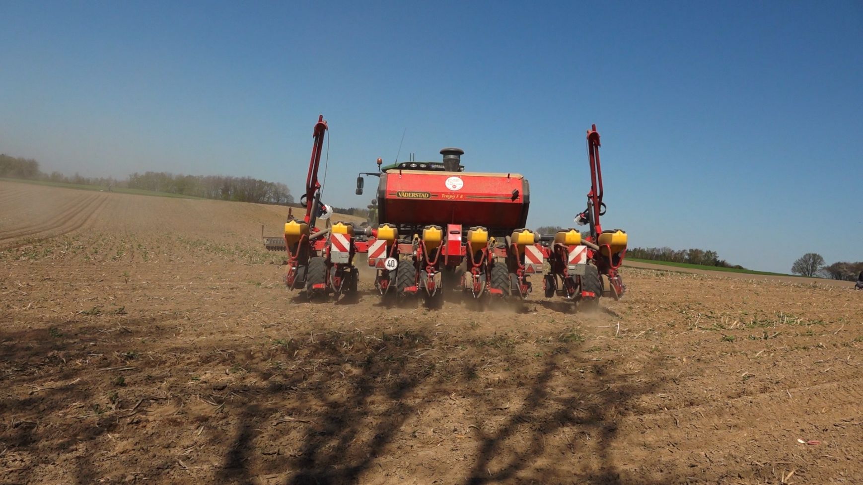 Een Vervaet Hydro Trike en een John Deere met Väderstad Tempo 8 aan het maïs zaaien door Loonbedrijf Arnold Schmitz jun. uit Weeze (DE).