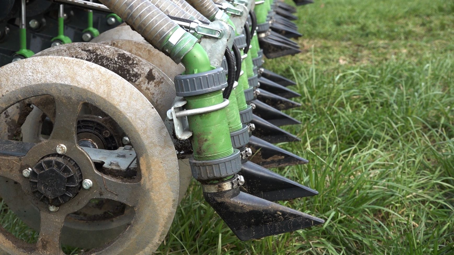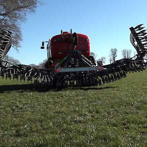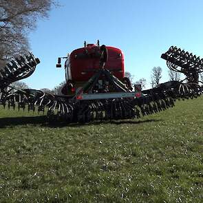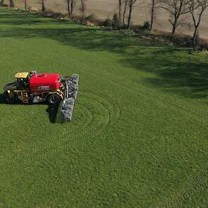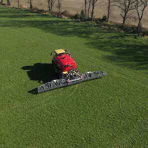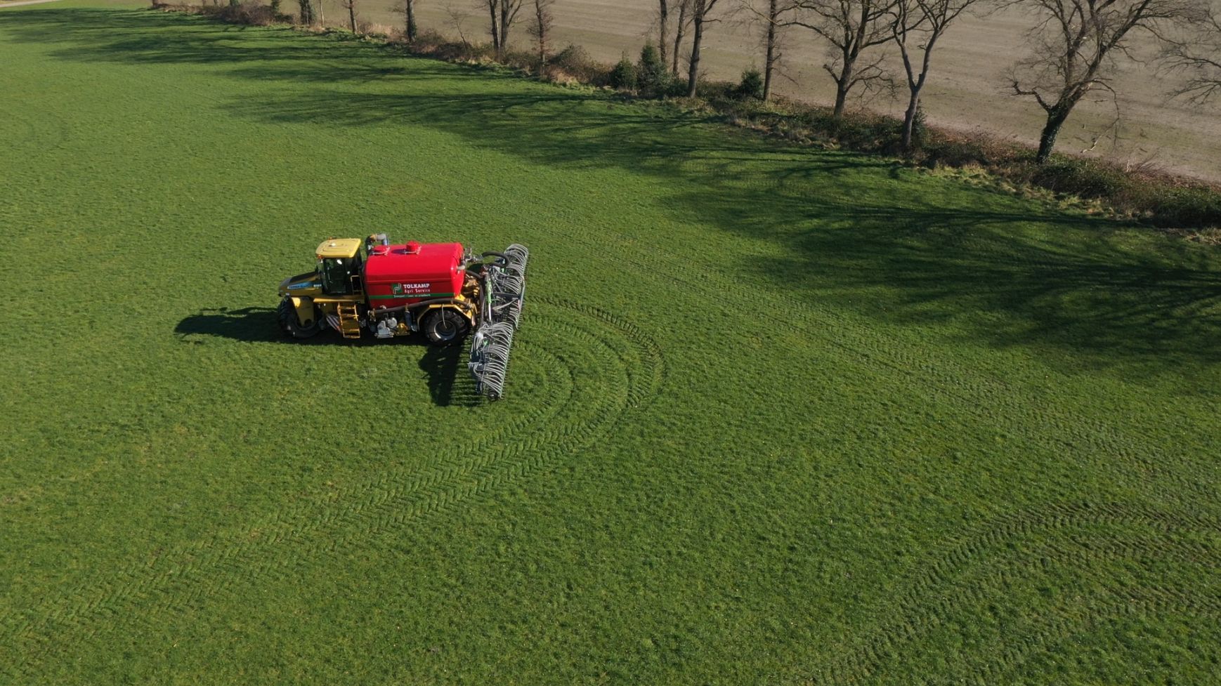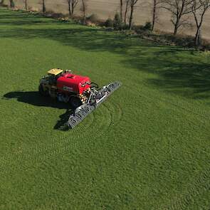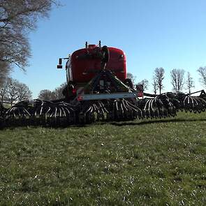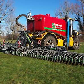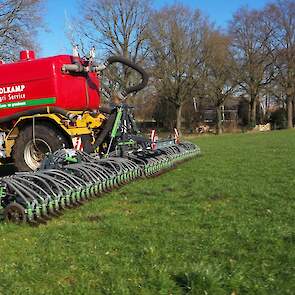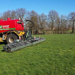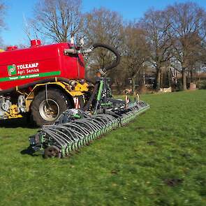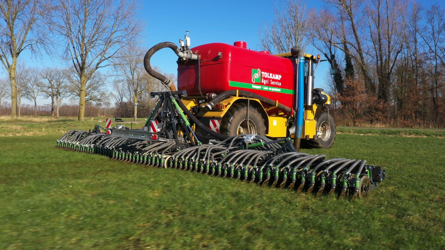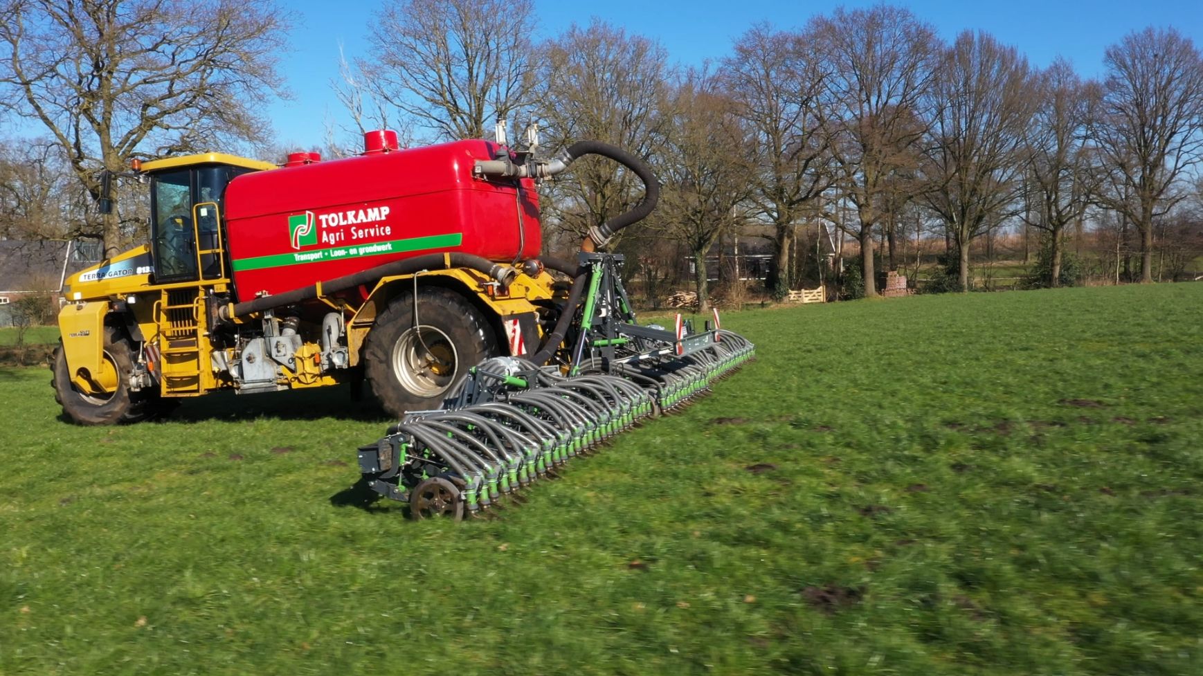 Tolkamp Agri Service injecteert dit jaar de mest met de 12,40 meter brede Eland- bemester. De machine heeft een lichte bouw en onderhoudsarme delen. De mest wordt verdeeld door middel van twee verdelers voor optimaal resultaat.