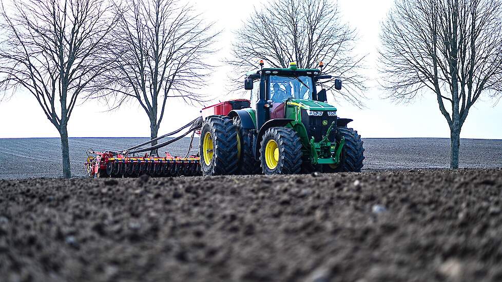 Johan Lennartsson uit het Zuid-Zweedse Tomelila zaaide deze week de eerste hectares brouwgerst bij akkerbouwer Cecilia Swartz. Hij deed dit met een nieuwe Väderstad Spirit 900 S, een 9 meter brede zaaimachine. Het zaaien valt vroeg dit jaar, zegt Swartz. „Ik ben al meer dan dertig jaar boer, en slechts één keer eerder waren we zo vroeg.”