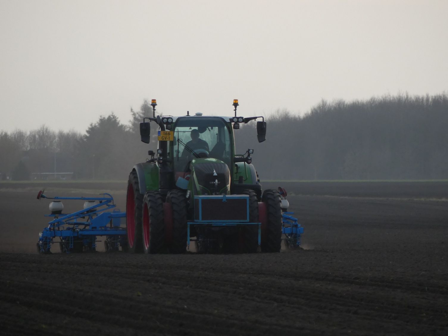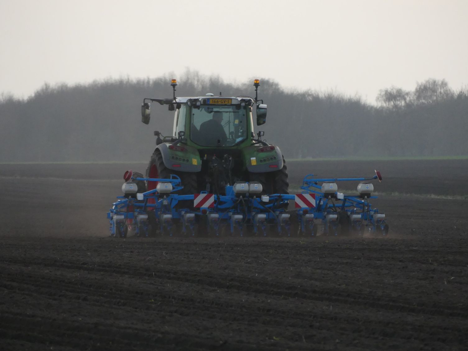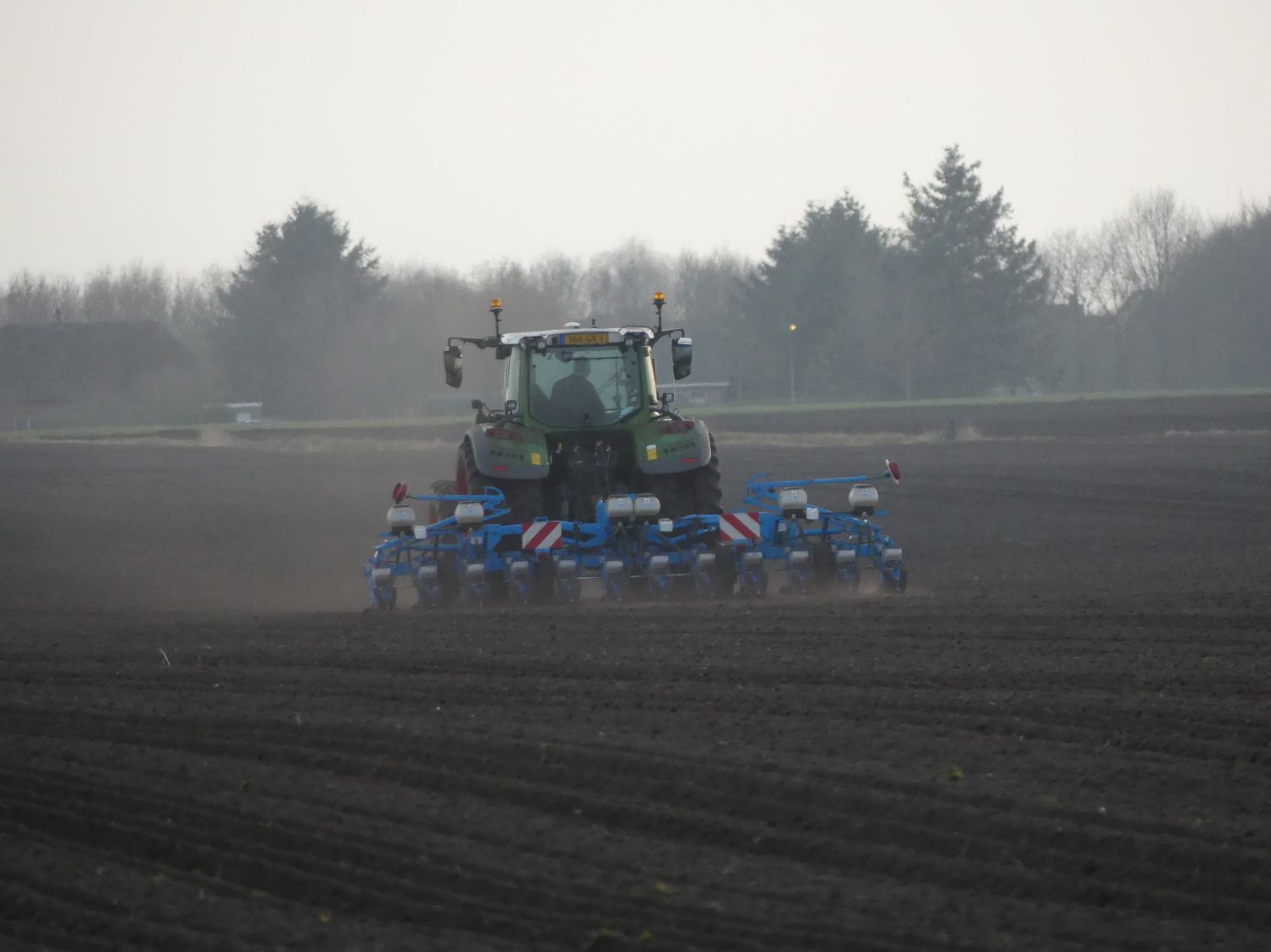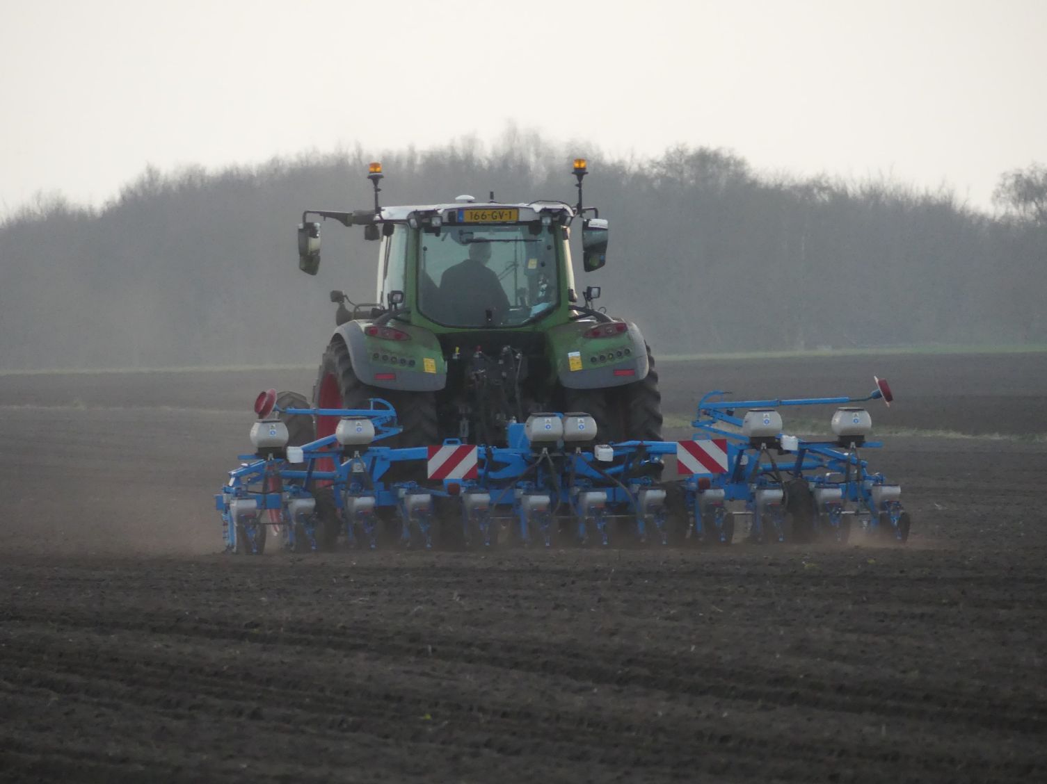 Suikerbieten zaaien met een Fendt 716 Vario door loonbedrijf Harms uit Erica (DR).