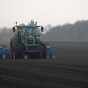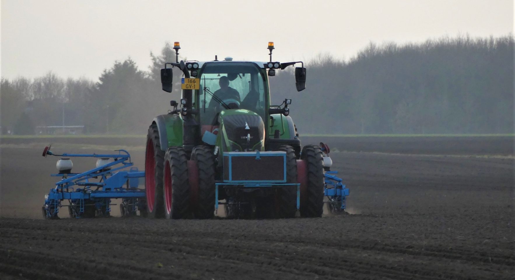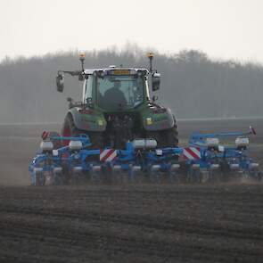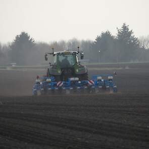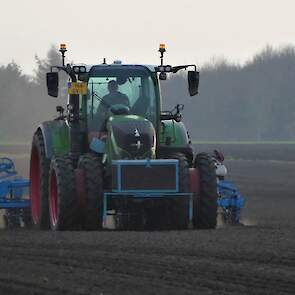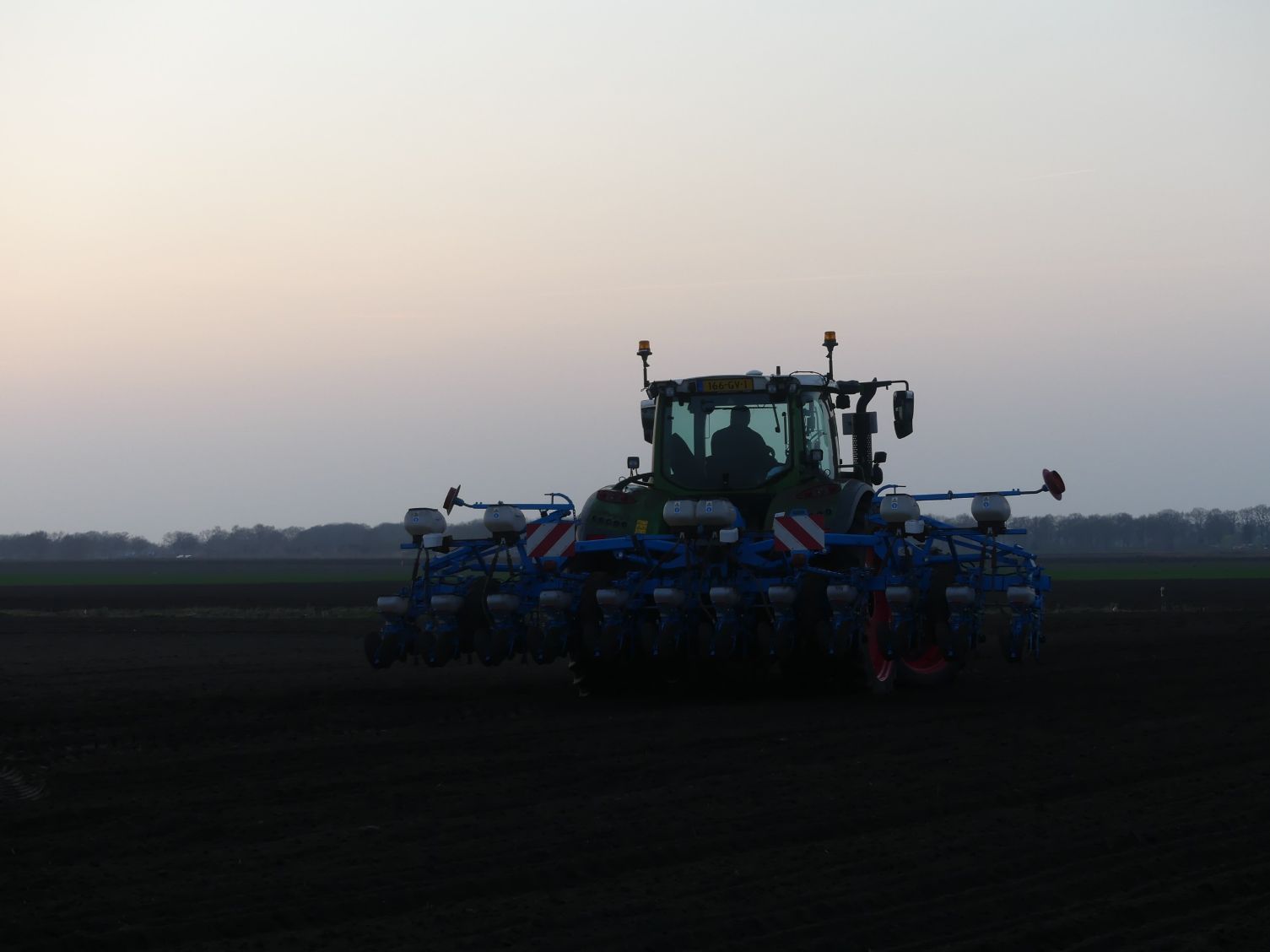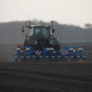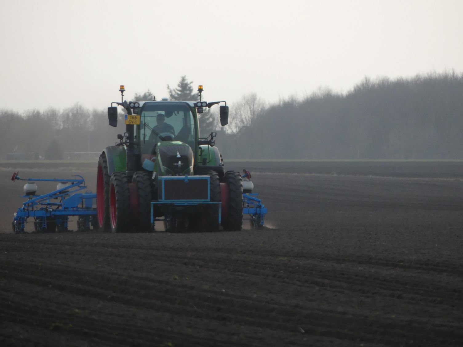 Suikerbieten zaaien met een Fendt 716 Vario door loonbedrijf Harms uit Erica (DR).