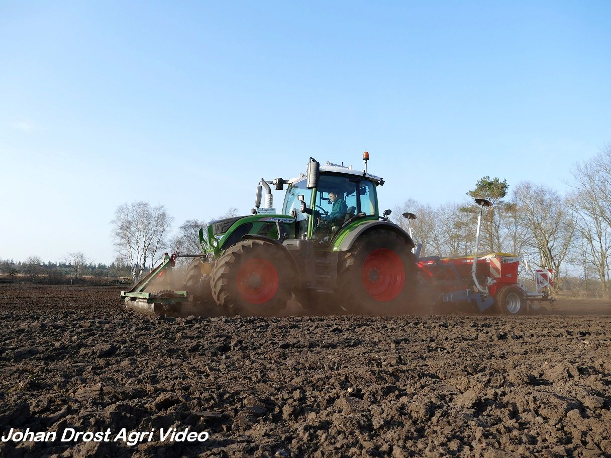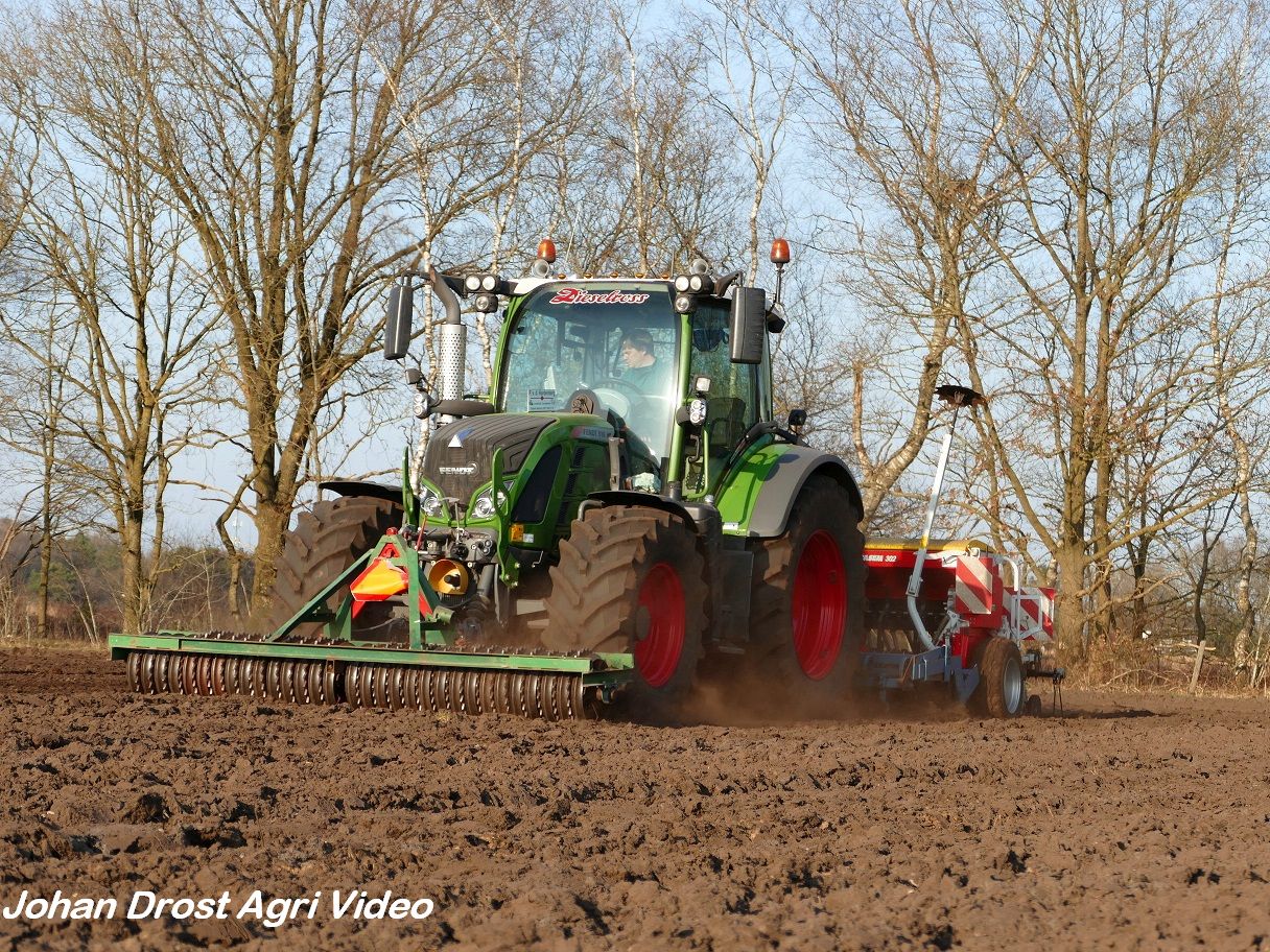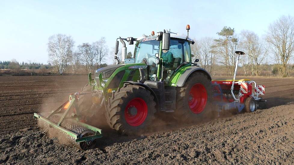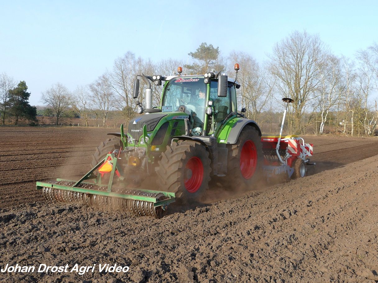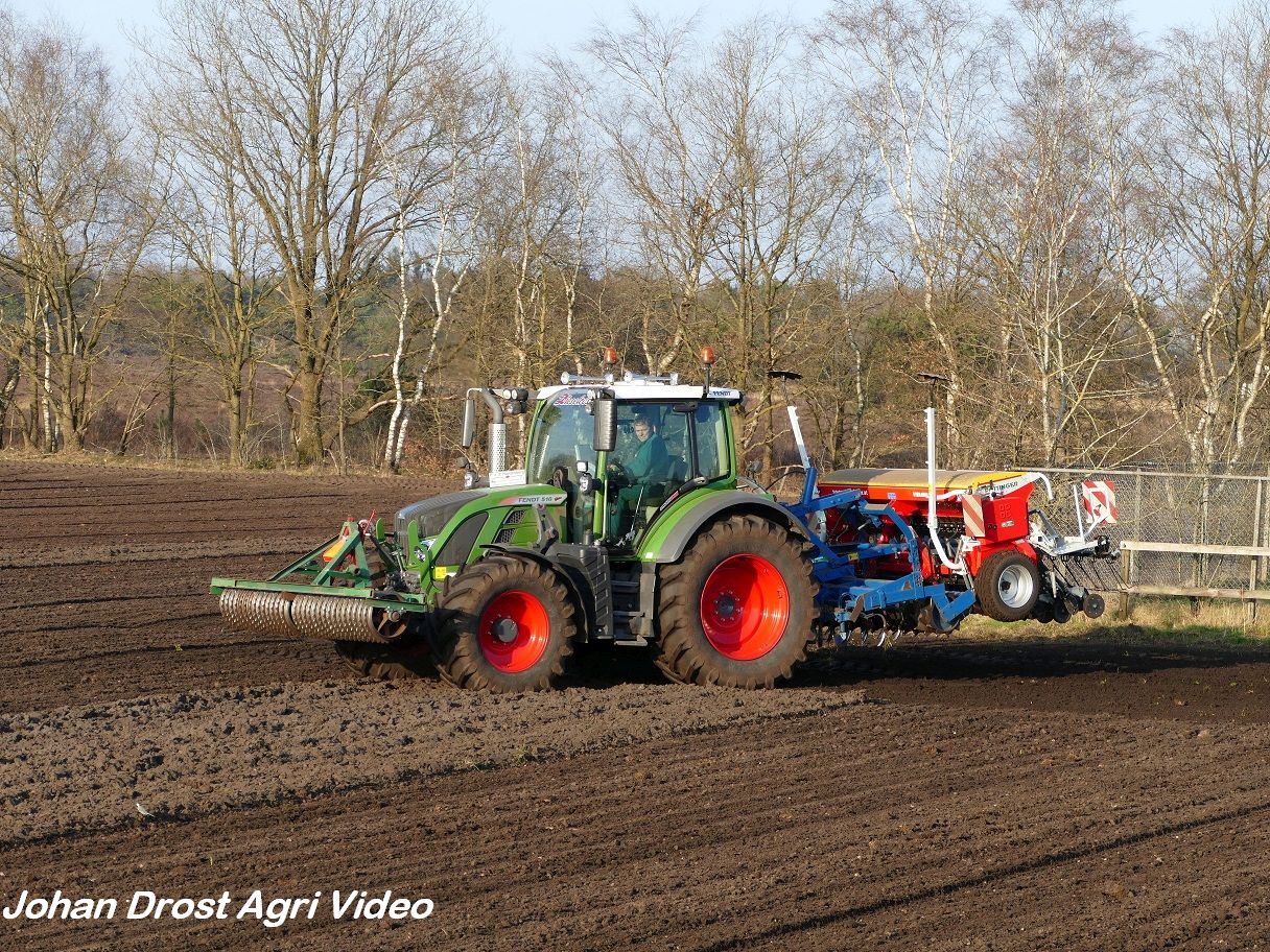 Loonbedrijf P. van den Hardenberg uit Elspeet (GD) aan het graan zaaien met een Fendt 516 Vario en Pöttinger Vitasem 302.