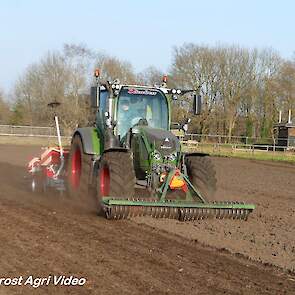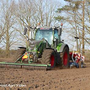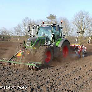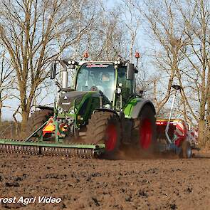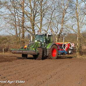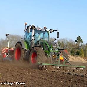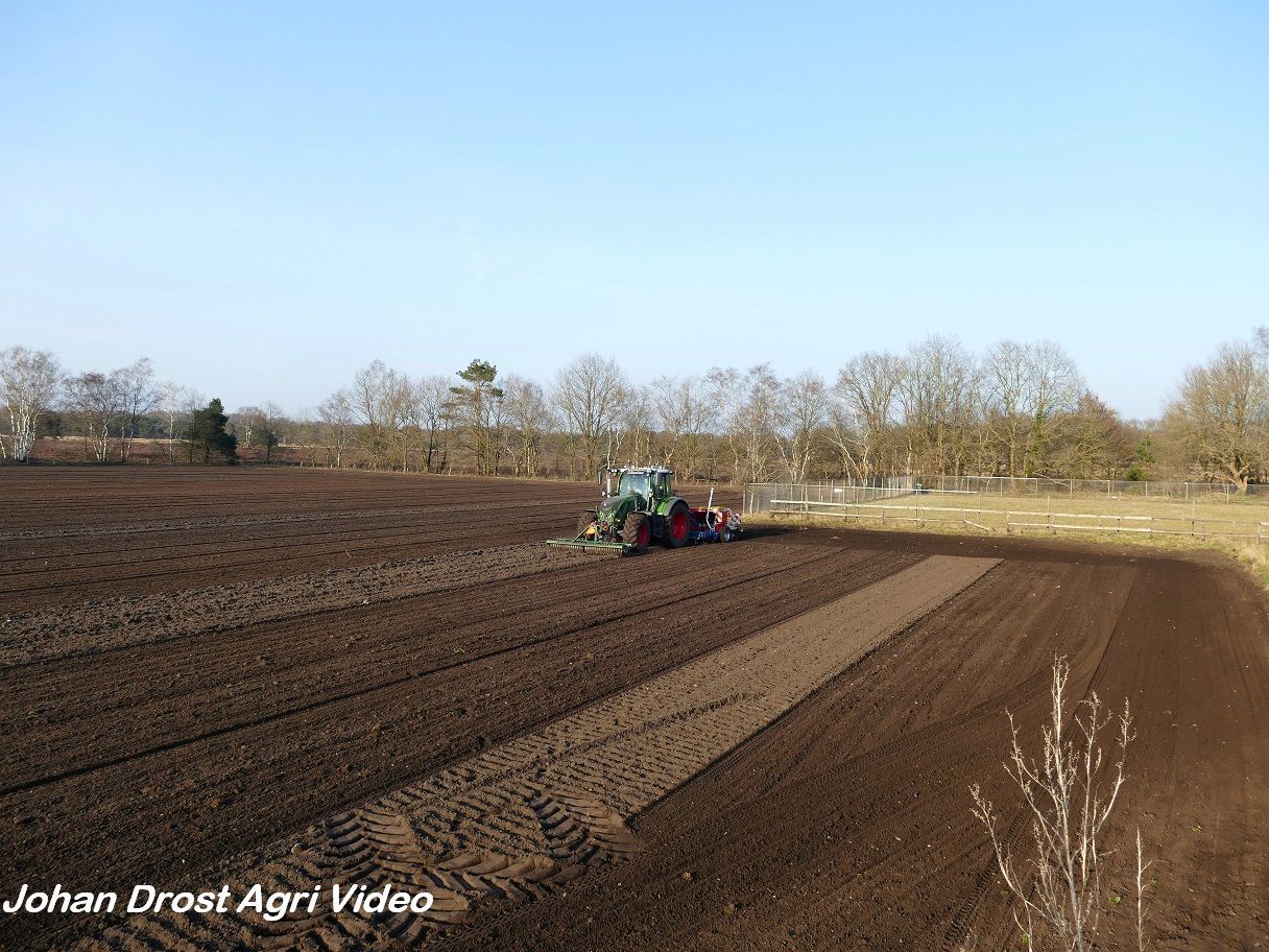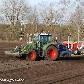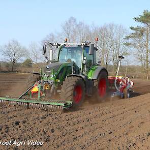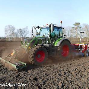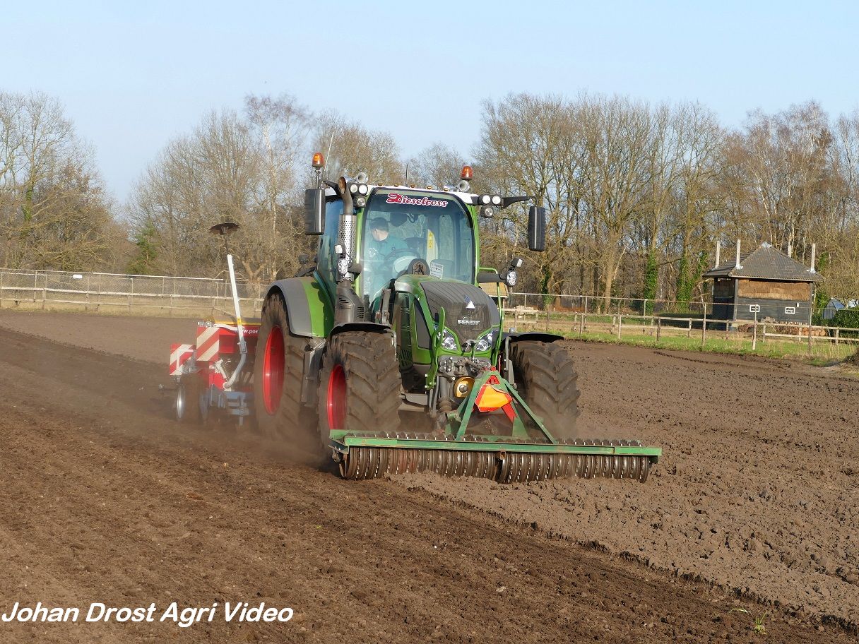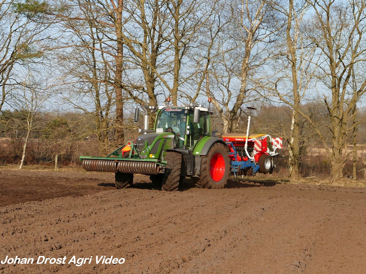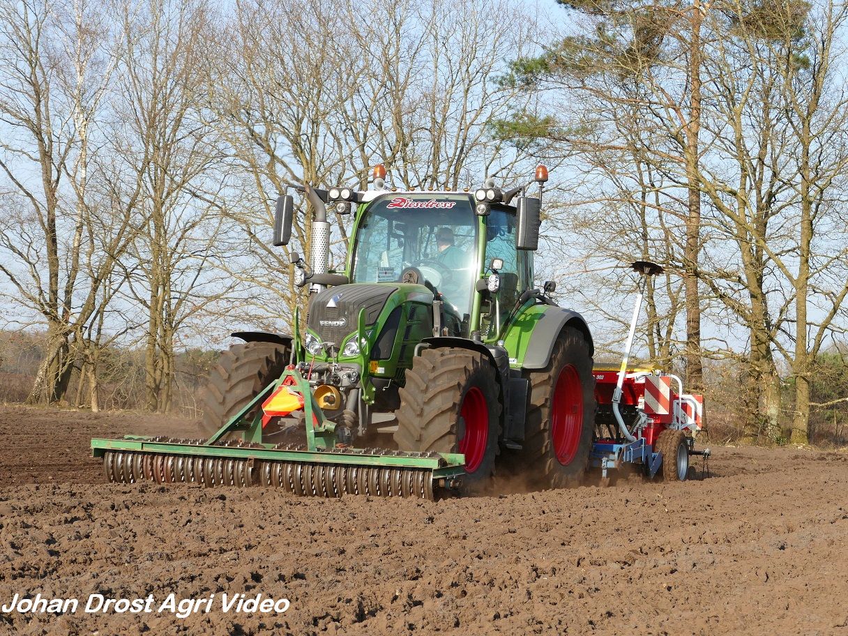 Loonbedrijf P. van den Hardenberg uit Elspeet (GD) aan het graan zaaien met een Fendt 516 Vario en Pöttinger Vitasem 302.