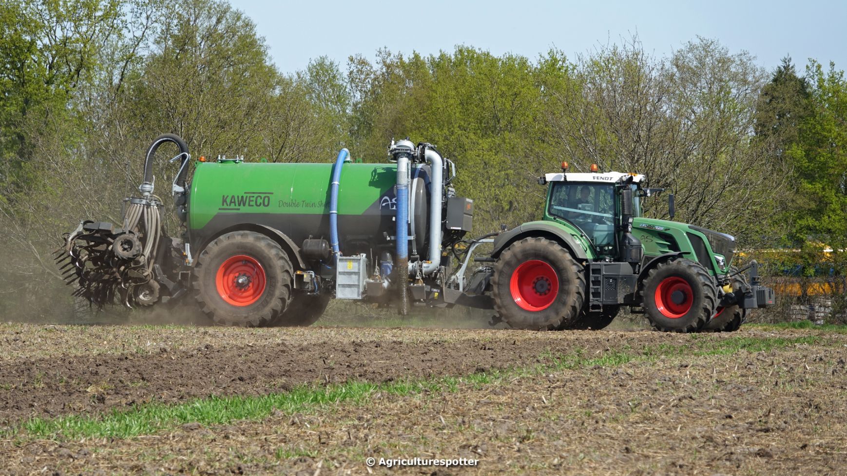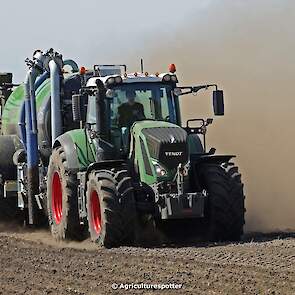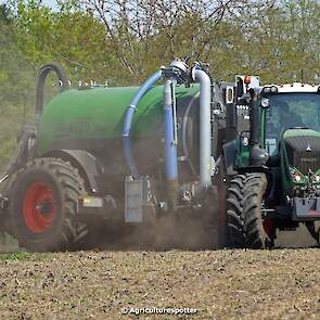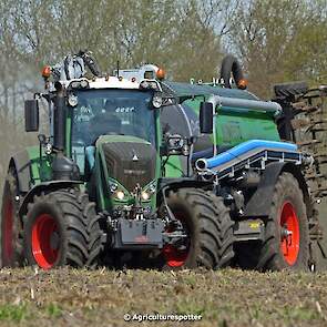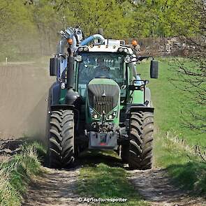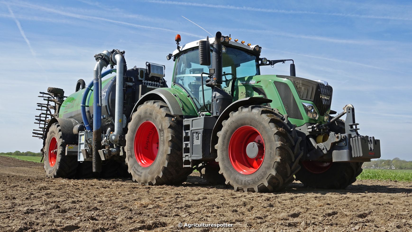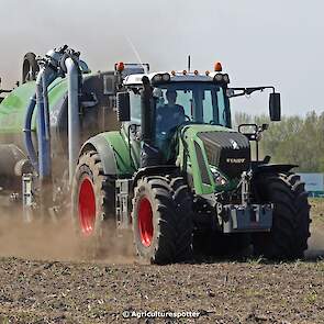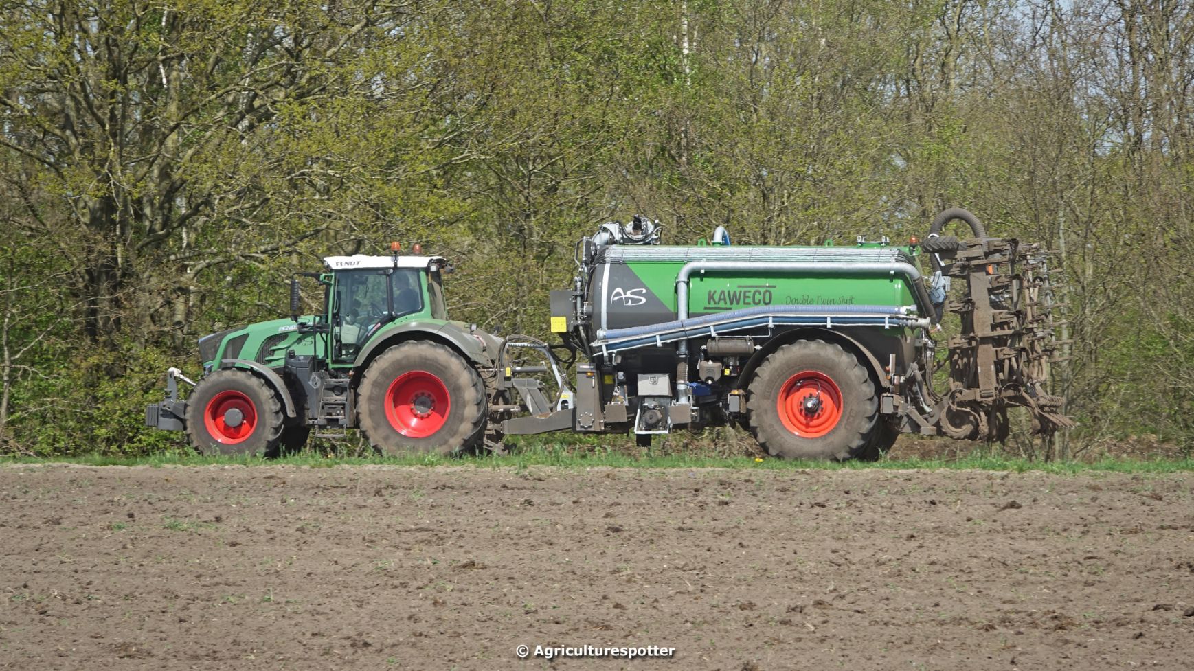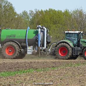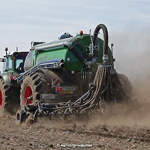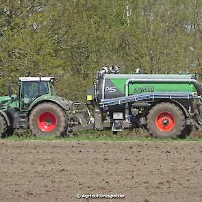 Bouwland bemesten in Renswoude (UT) met een Fendt 828 Vario en een nieuwe Kaweco Double Twin Shift van Loonbedrijf Schimmel Overberg BV.