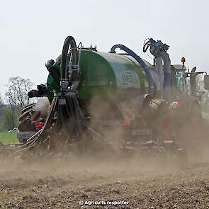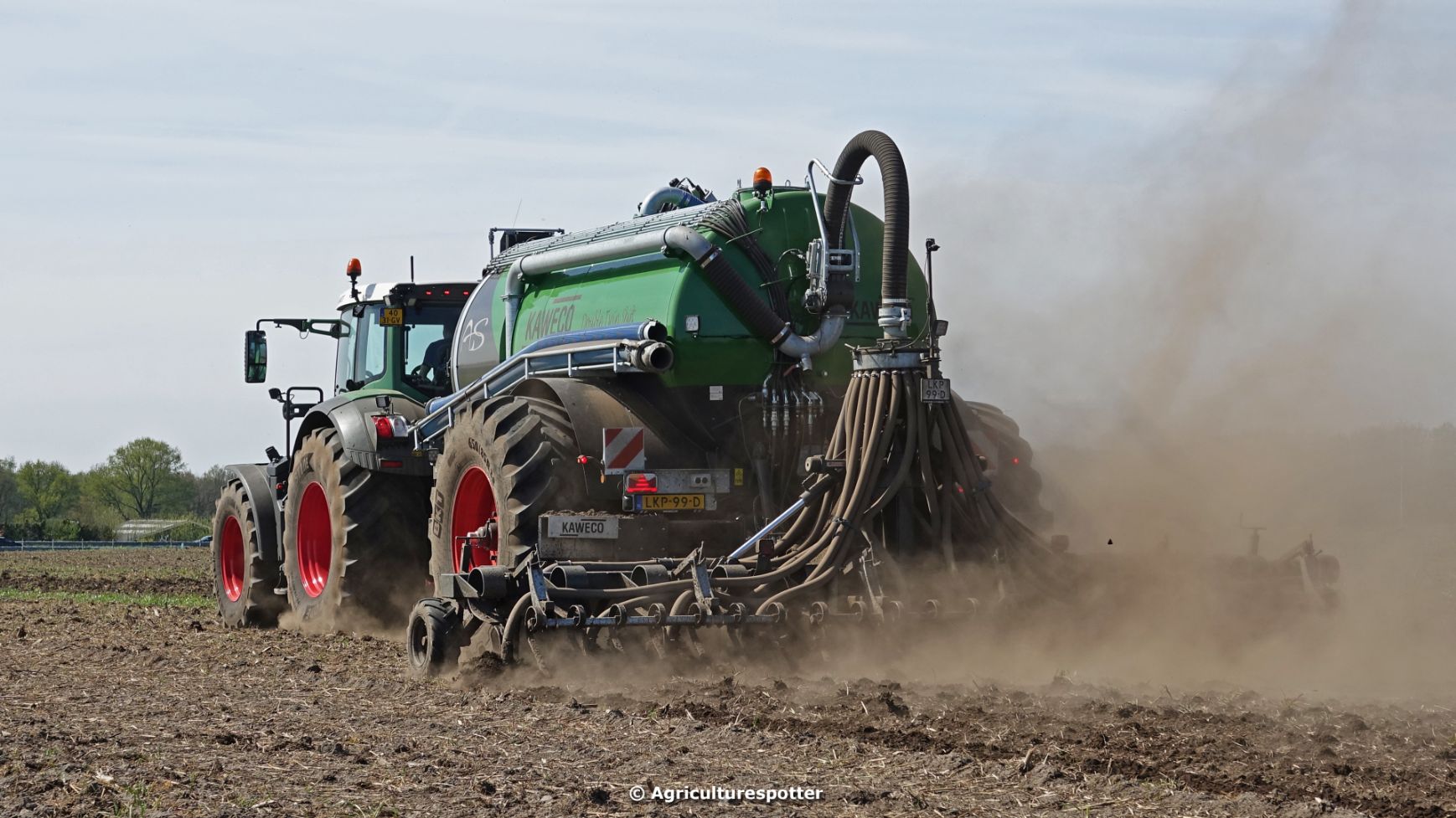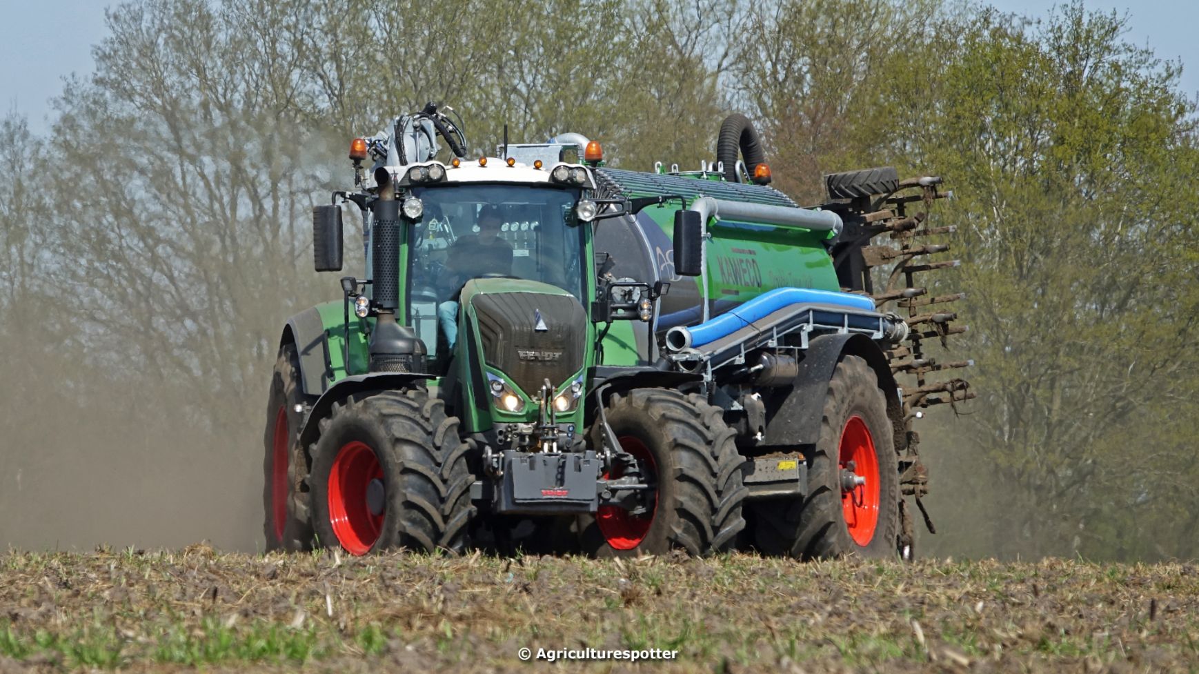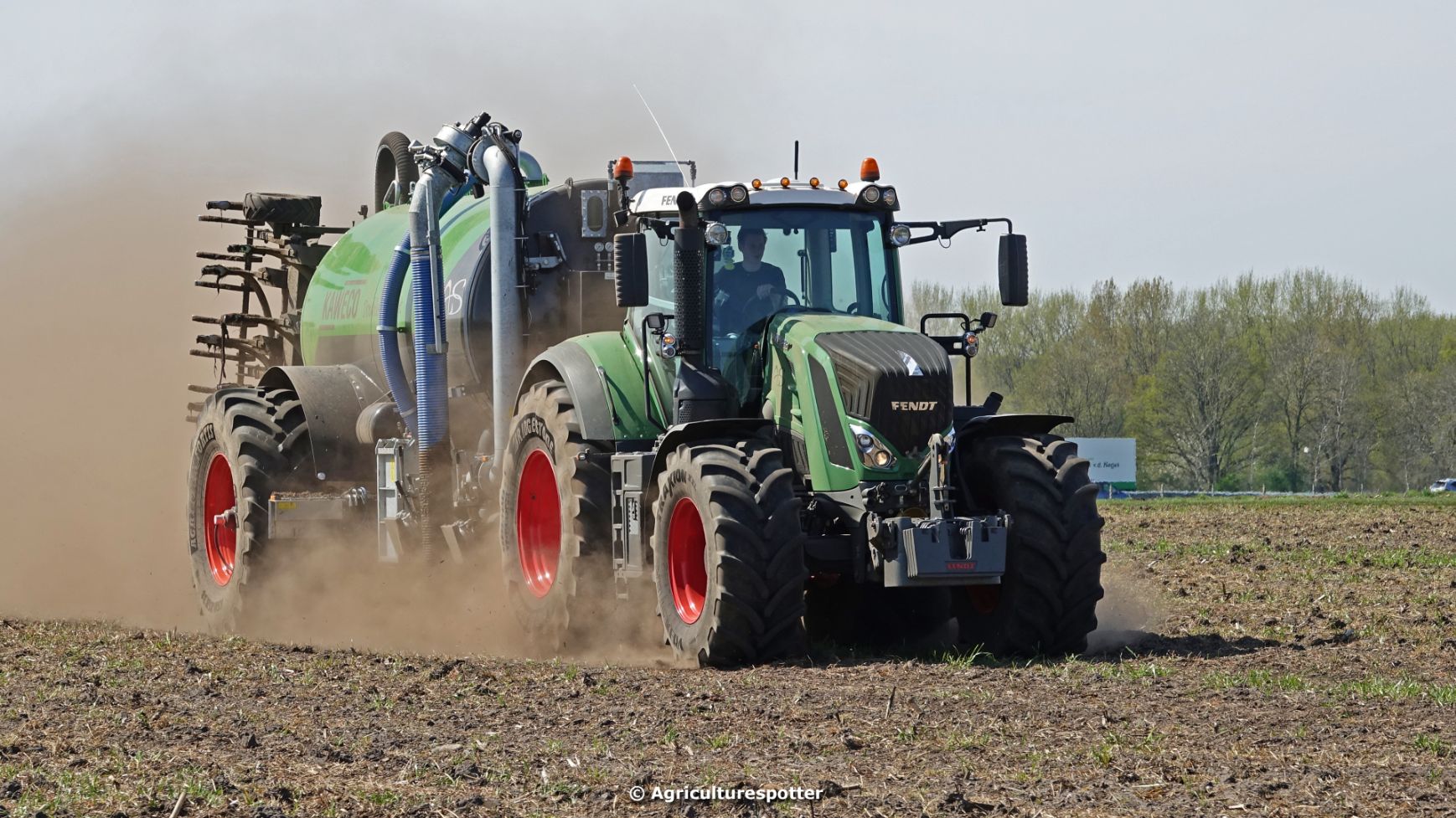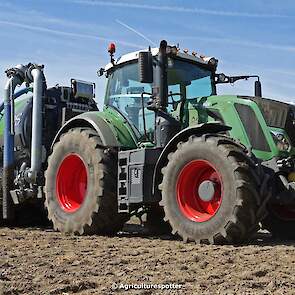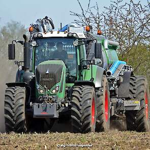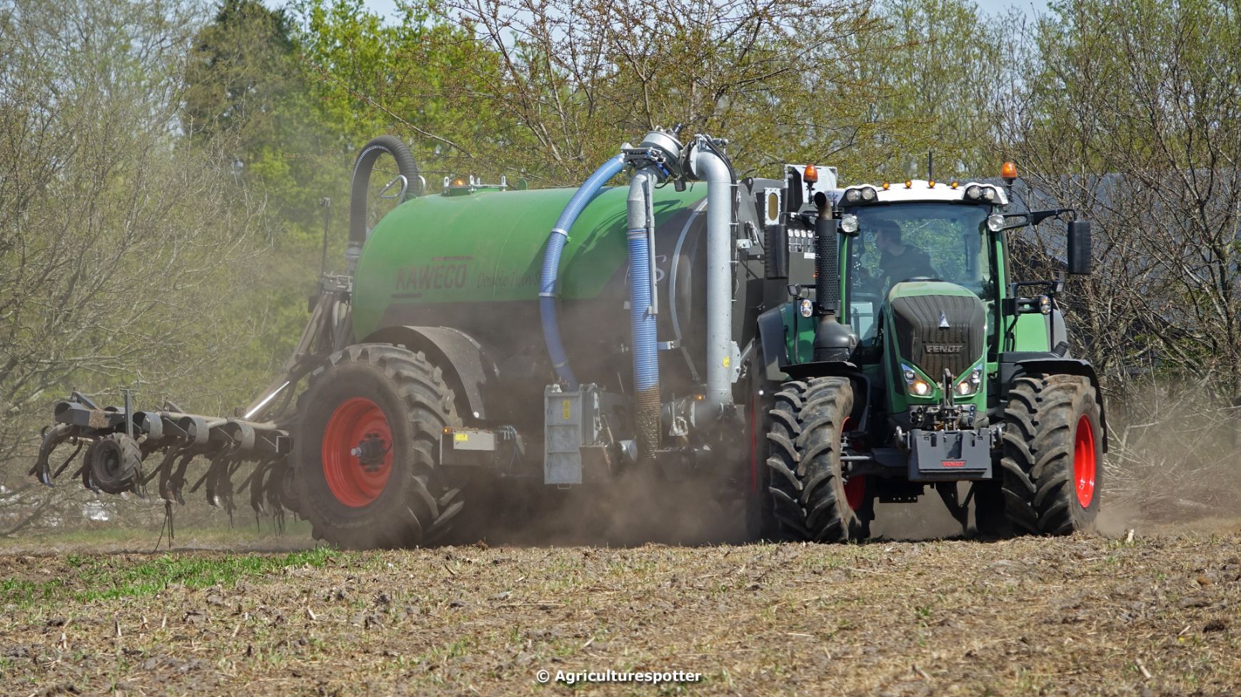 Bouwland bemesten in Renswoude (UT) met een Fendt 828 Vario en een nieuwe Kaweco Double Twin Shift van Loonbedrijf Schimmel Overberg BV.