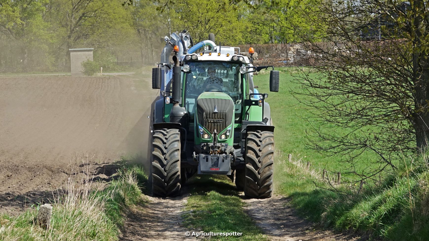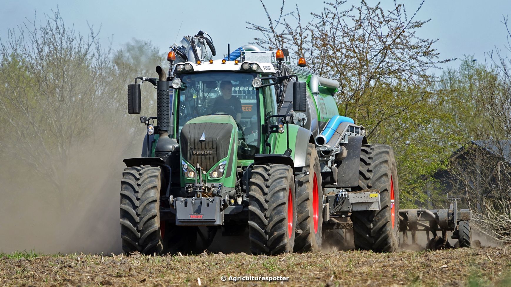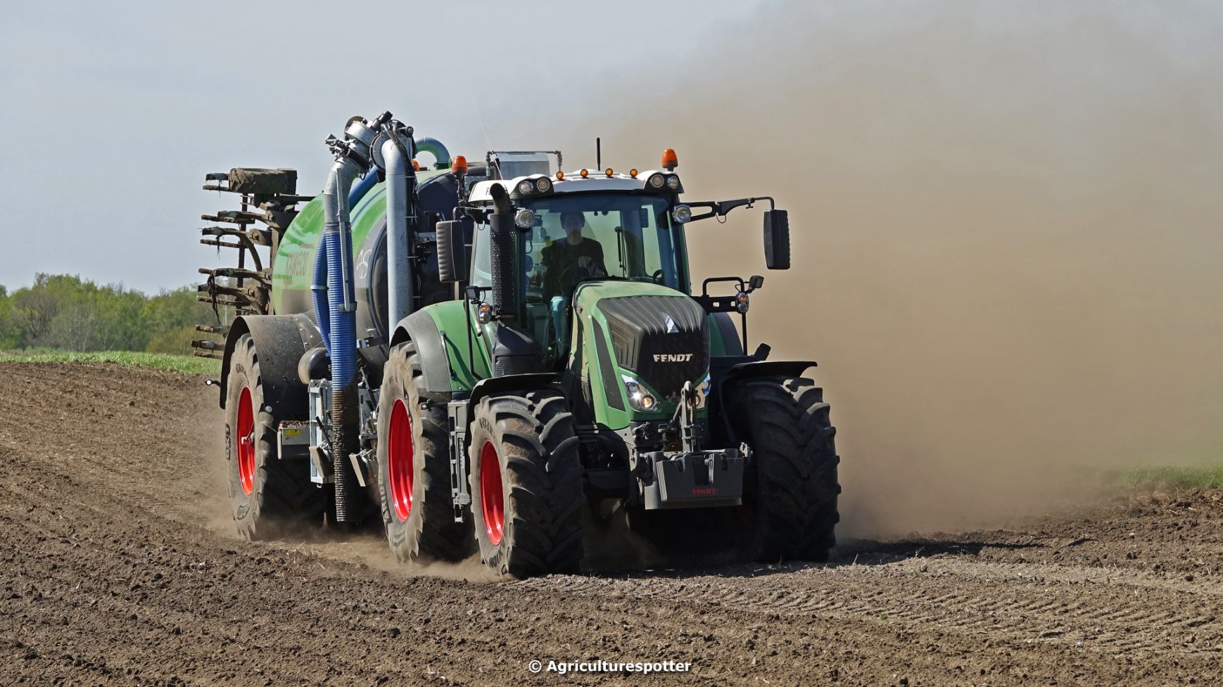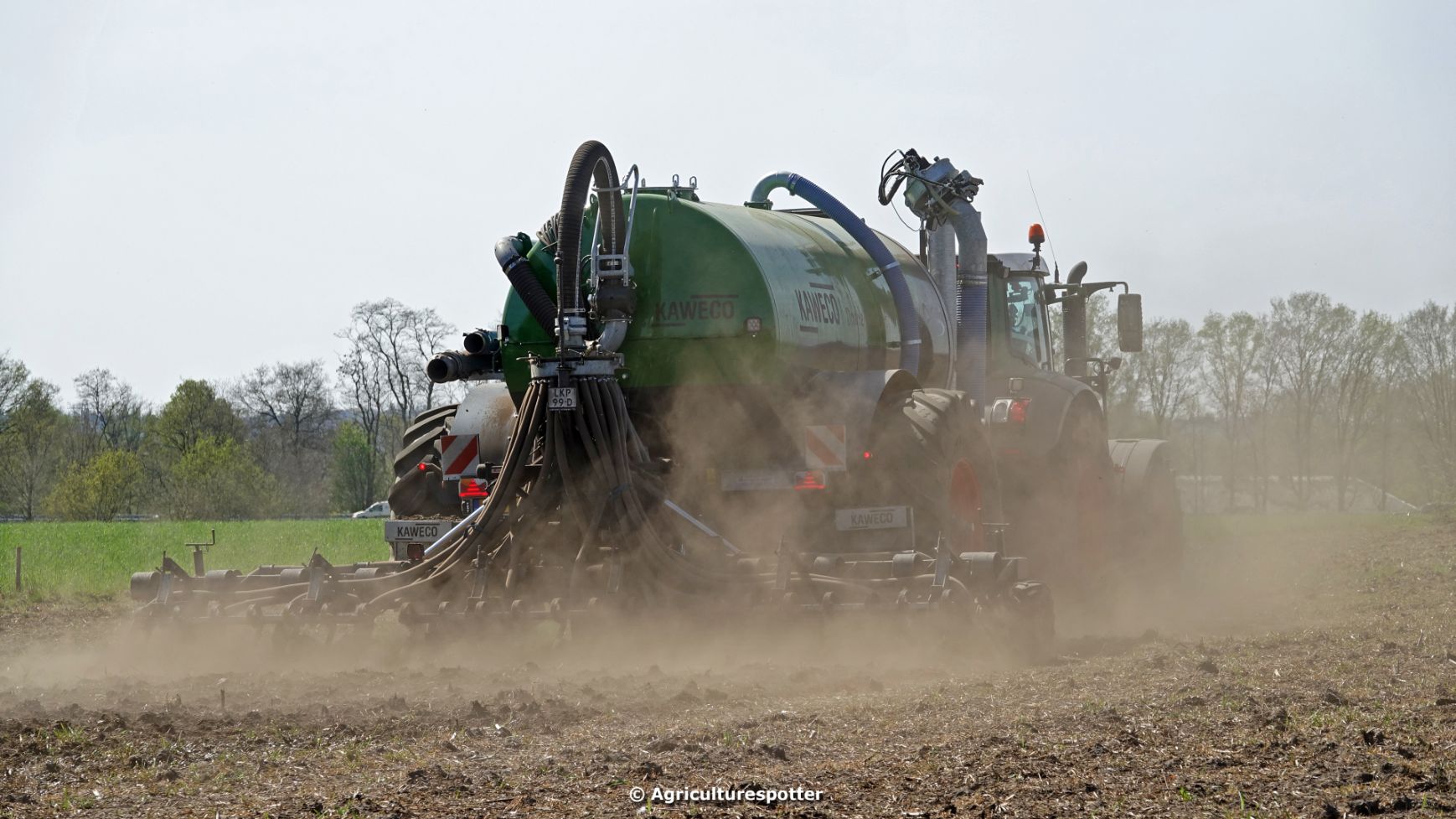 Bouwland bemesten in Renswoude (UT) met een Fendt 828 Vario en een nieuwe Kaweco Double Twin Shift van Loonbedrijf Schimmel Overberg BV.