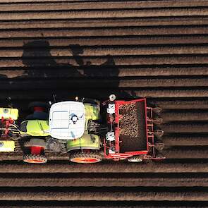 Een Grimme Compacta GL 860 met daarvoor een Case-IH Optum 270 en een Grimme GL 420 met daarvoor een Claas Arion 650 worden bij Weco De Hondsrug uit Borger (DR) ingezet voor het poten van de aardappelen.