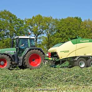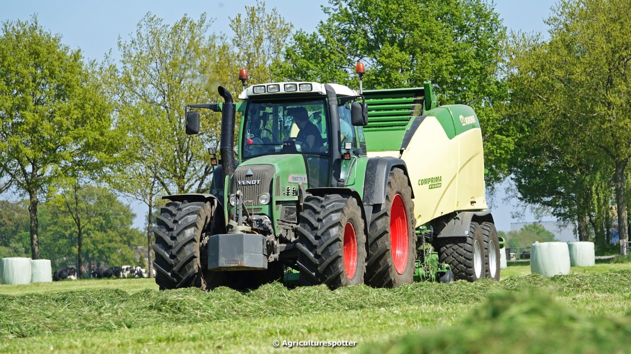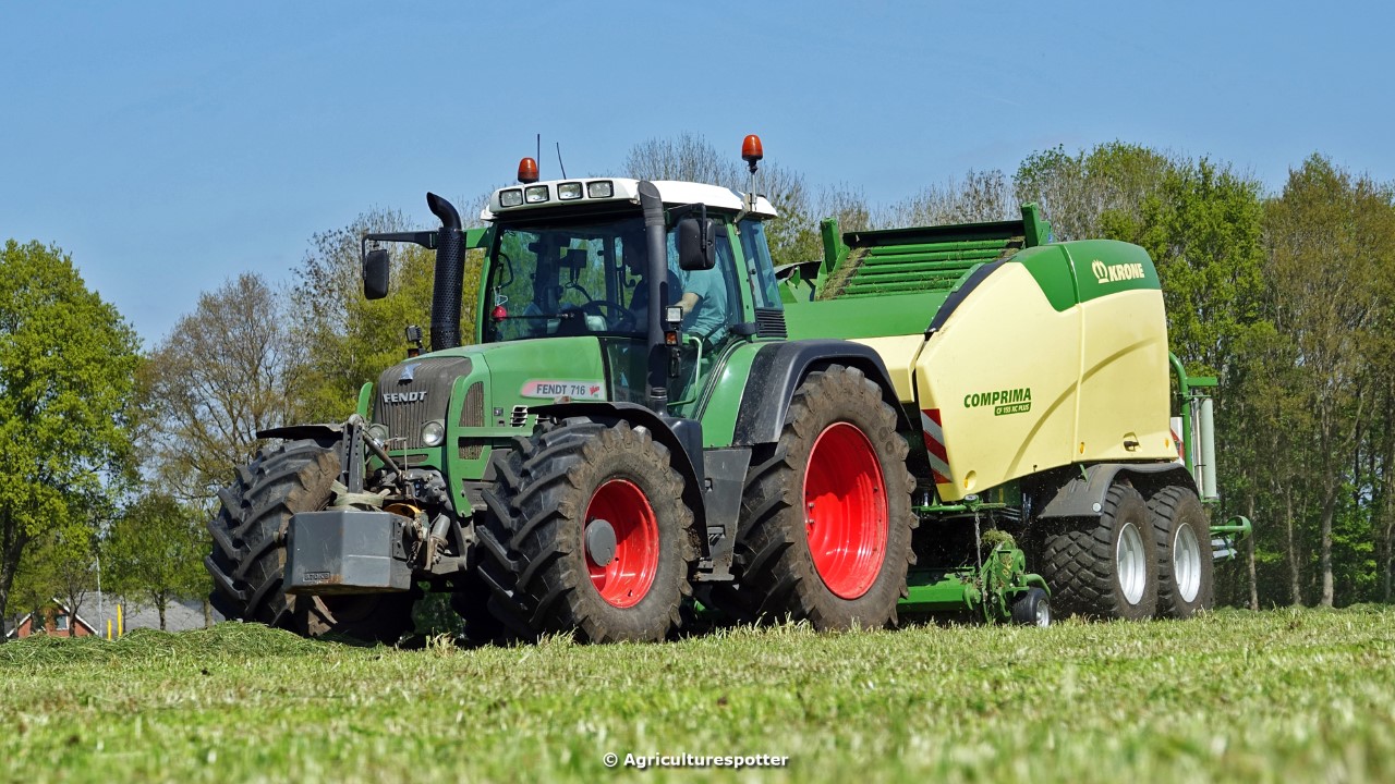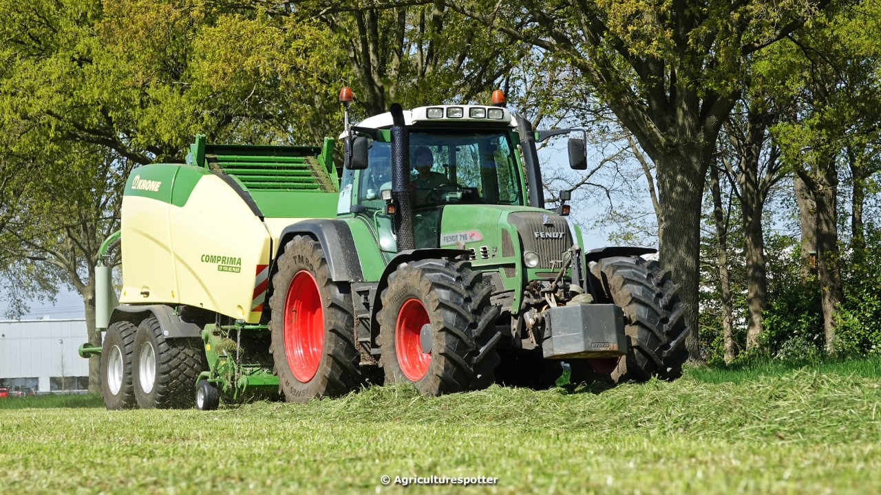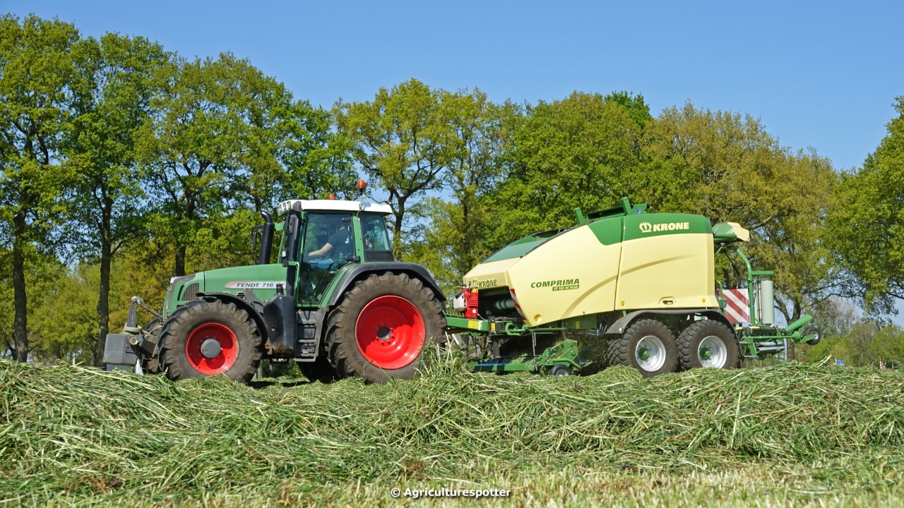 Fendt 716 Vario en Krone Comprima CF 155 XC Plus van Henk van den Berg Dienstverlening uit Terschuur (GD).