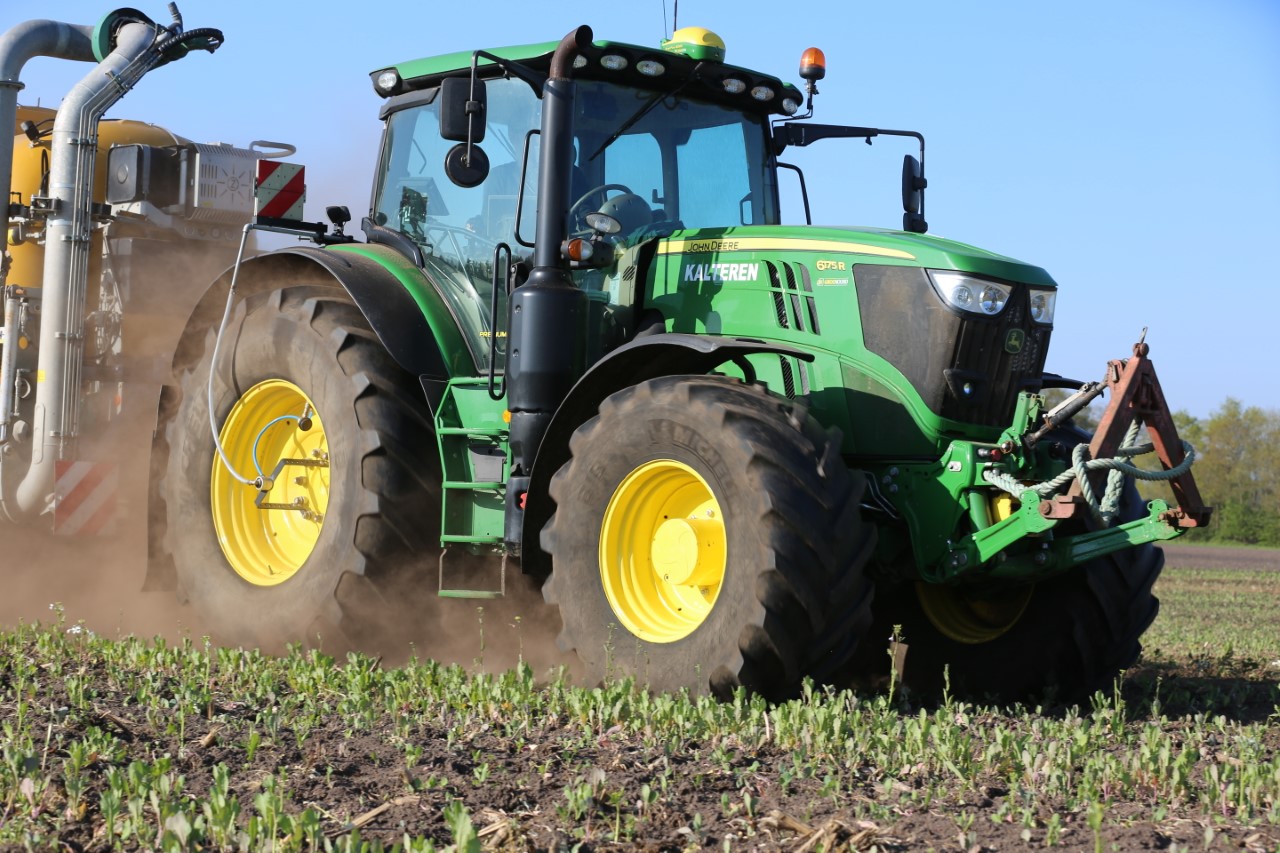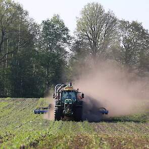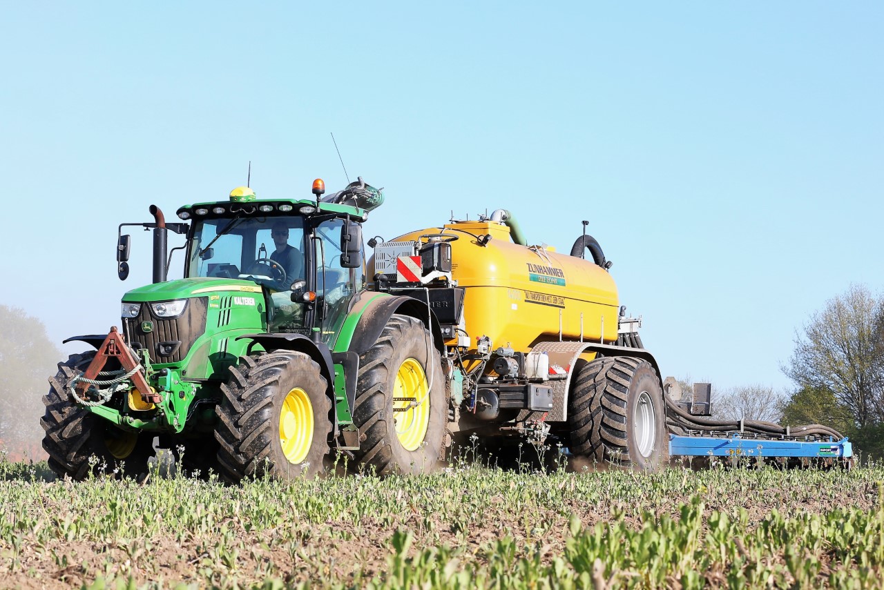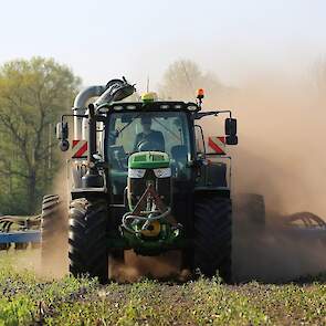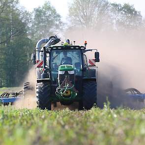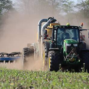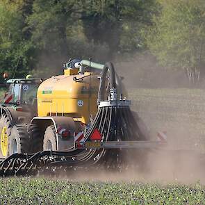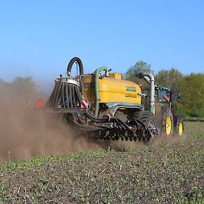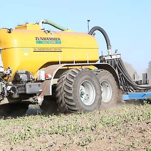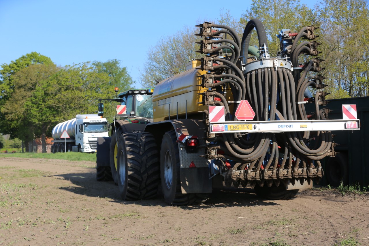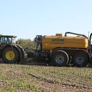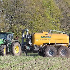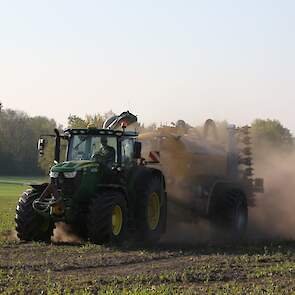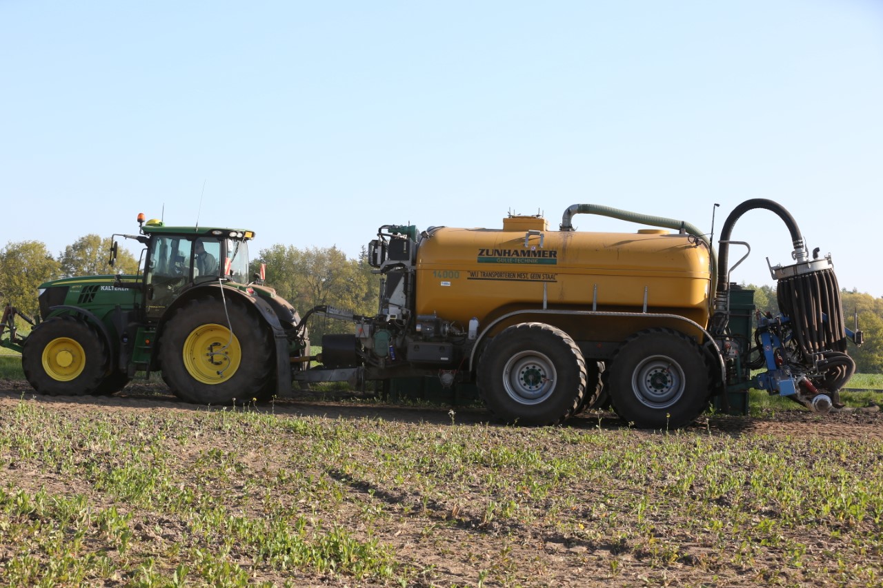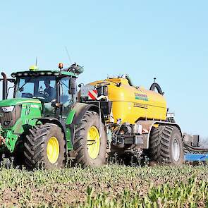 Vorige week was loonbedrijf Kalteren uit Blankenham (OV) een maïsperceel op de Havelterberg aan het bemesten. Achter de John Deere 6175R hing een Zunhammer 14000-tank met schuifas. De mest werd met een Duport-bemester in de grond gebracht.
