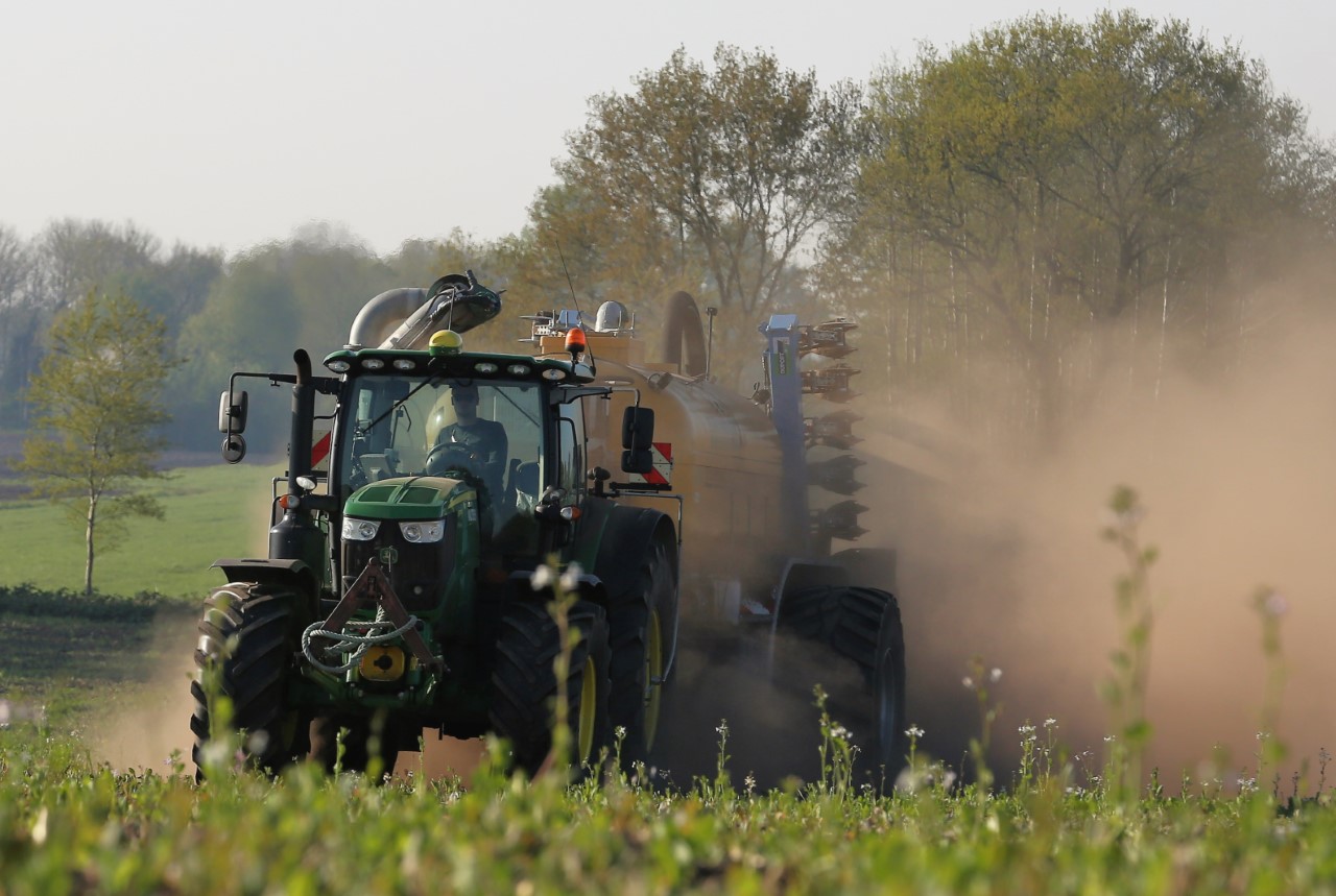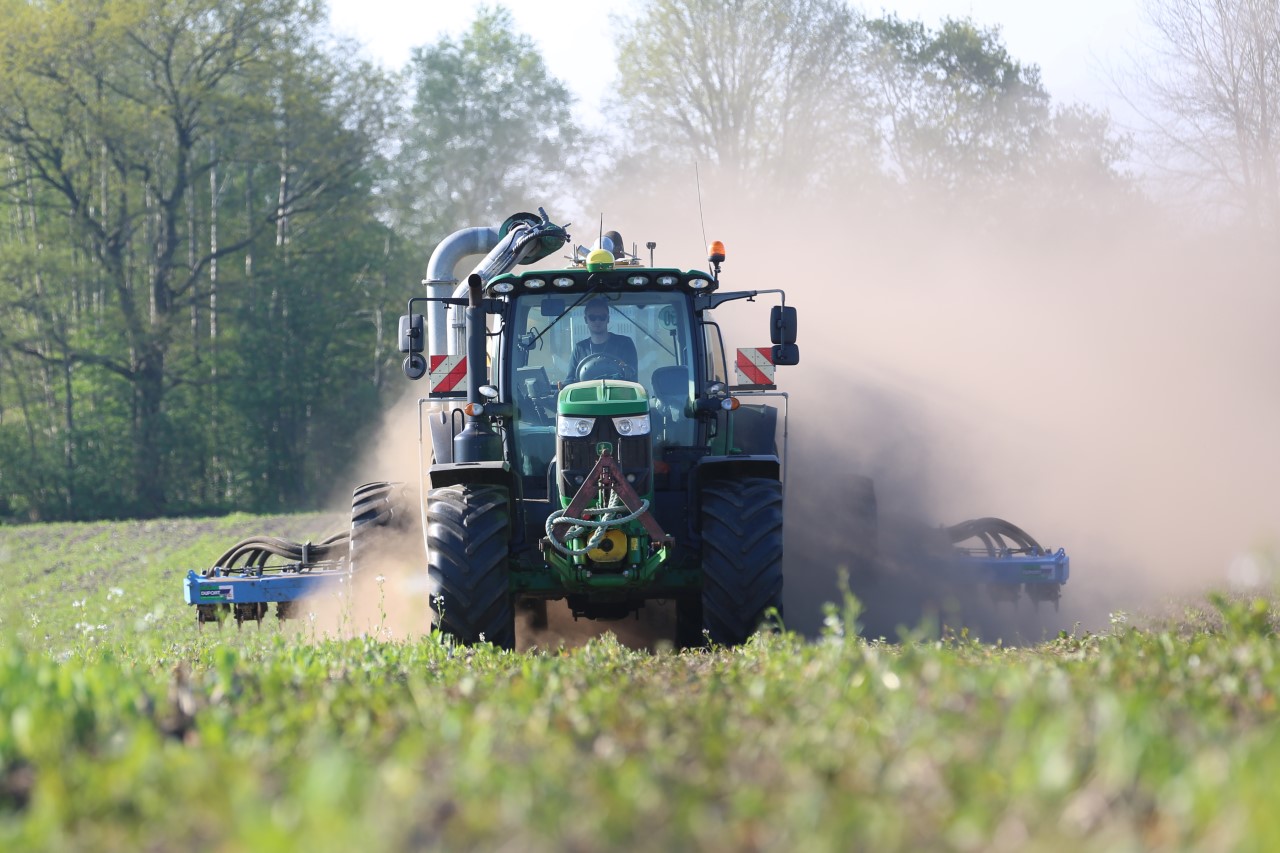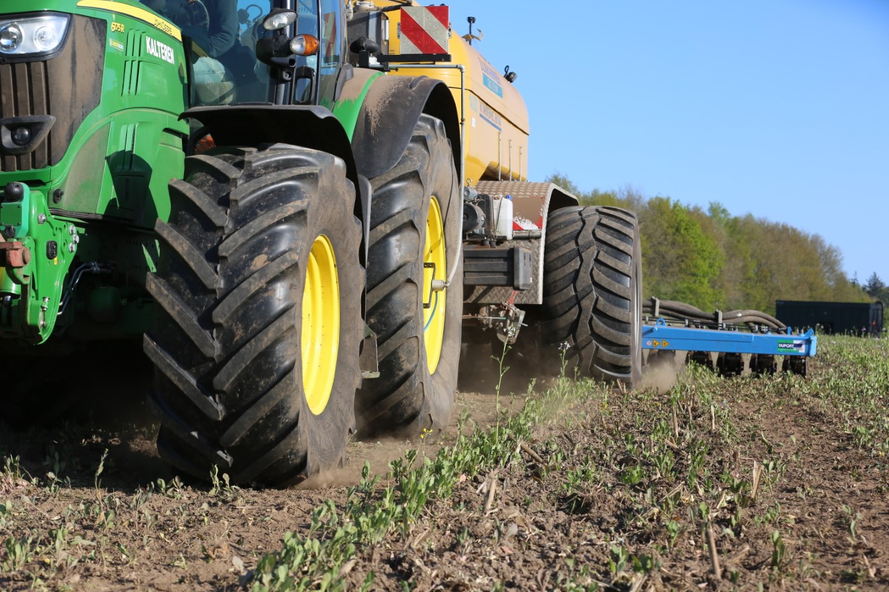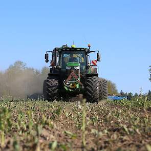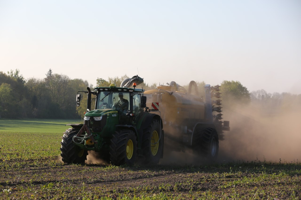Vorige week was loonbedrijf Kalteren uit Blankenham (OV) een maïsperceel op de Havelterberg aan het bemesten. Achter de John Deere 6175R hing een Zunhammer 14000-tank met schuifas. De mest werd met een Duport-bemester in de grond gebracht.