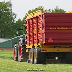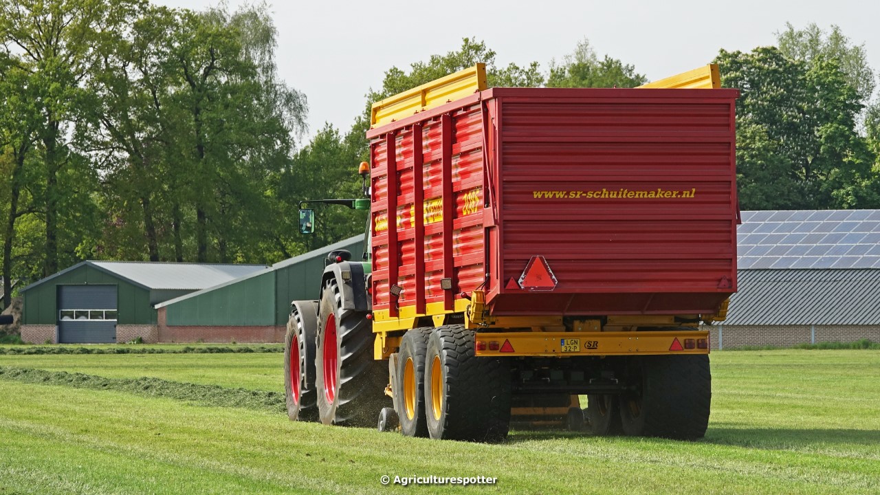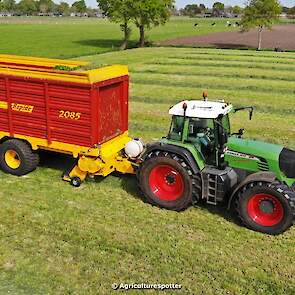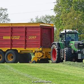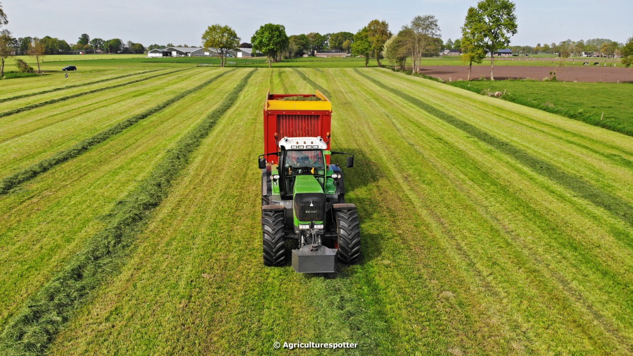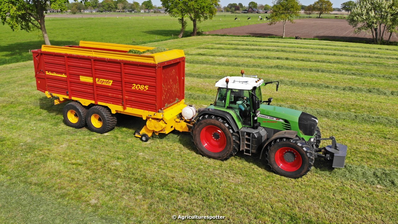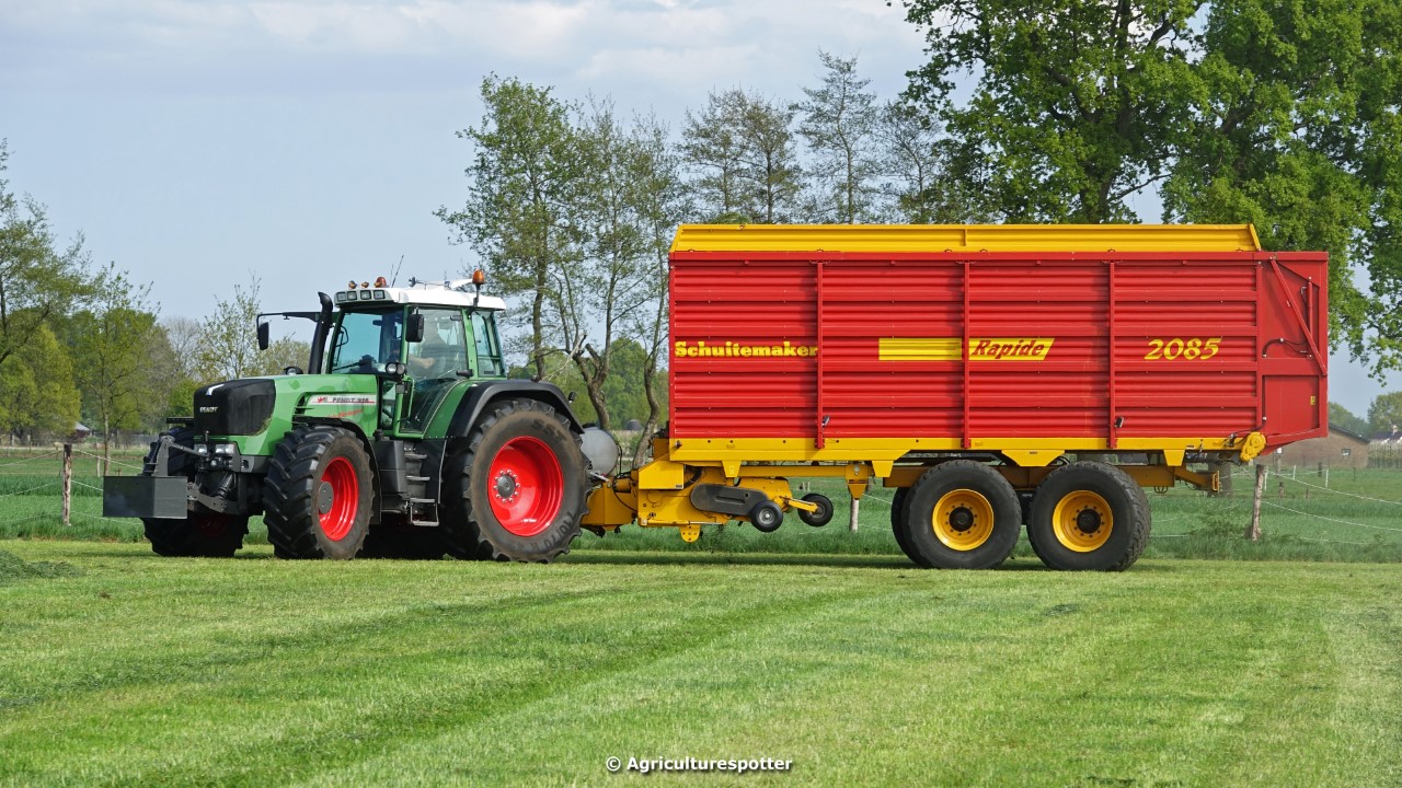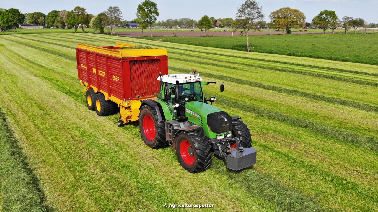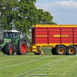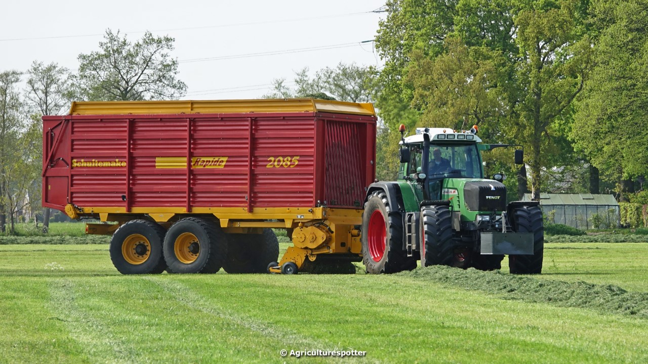 Gras oprapen in De Valk (Ede, GD) met een Fendt 916 Vario en een Schuitemaker Rapide 2085-opraapwagen van loonbedrijf Gebr. Blankespoor BV uit Harskamp (GD).