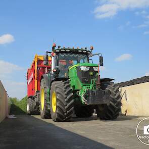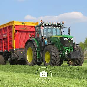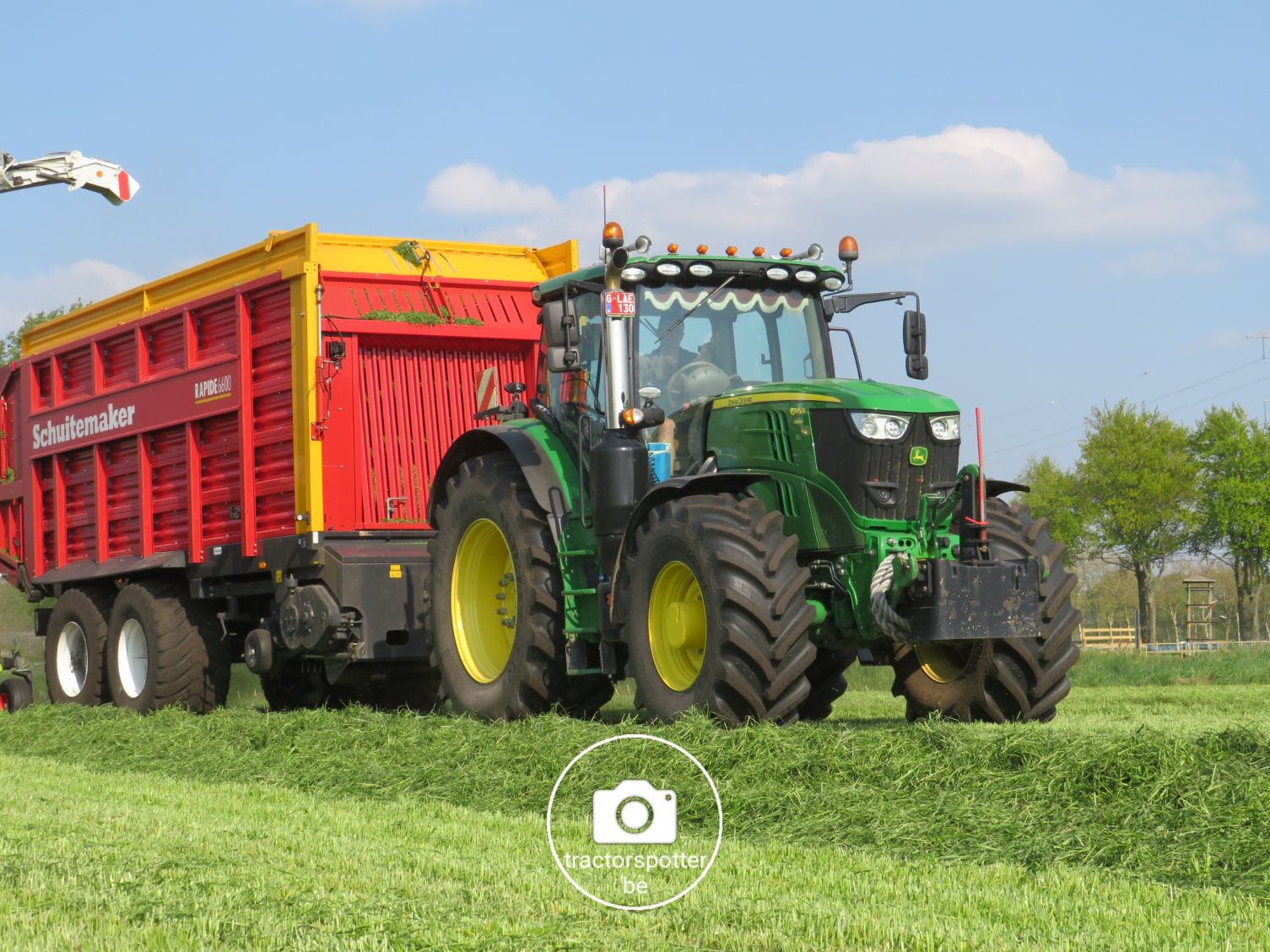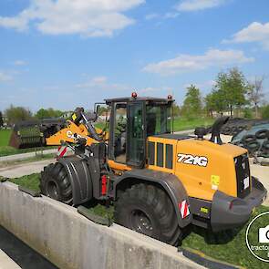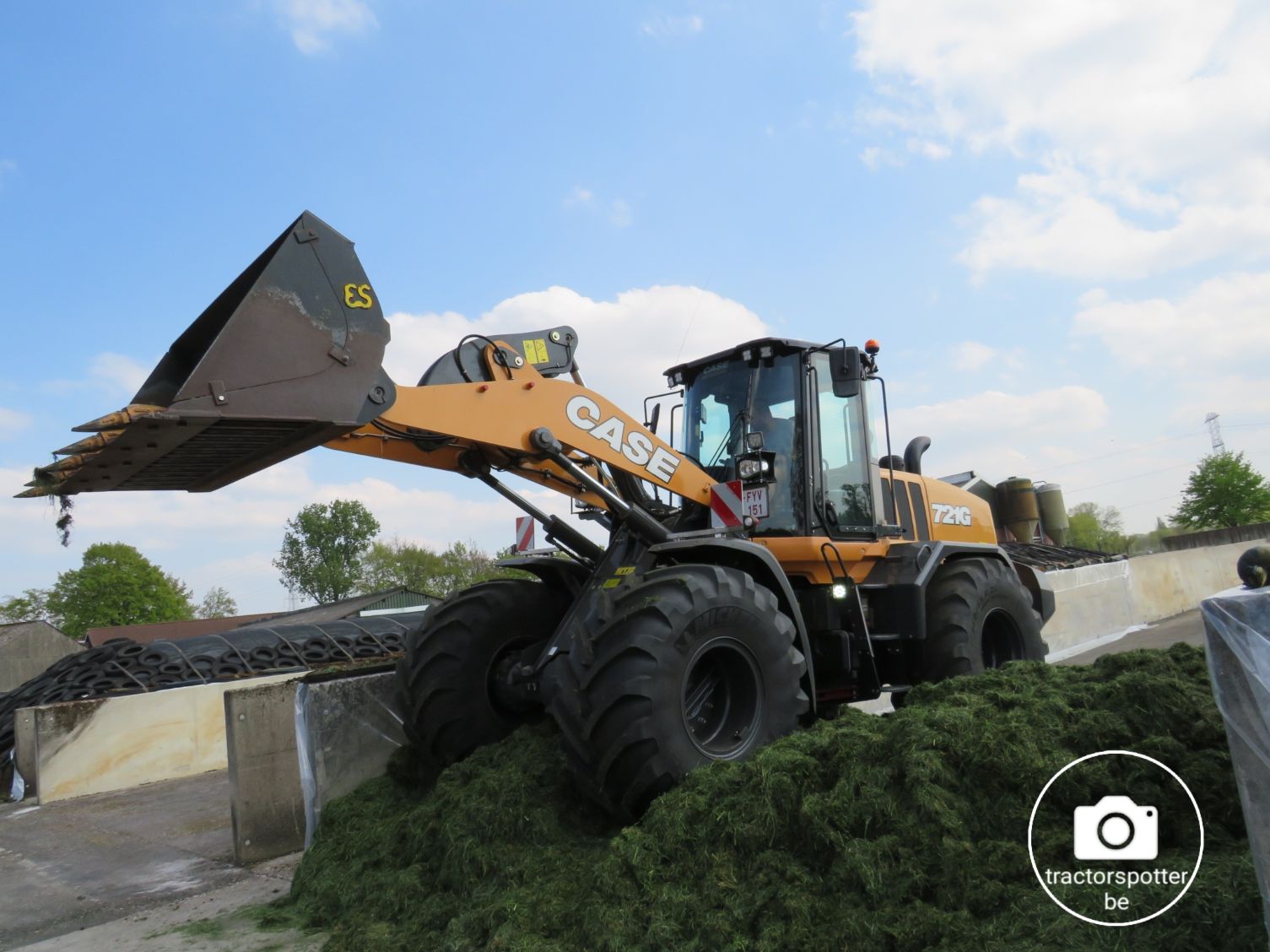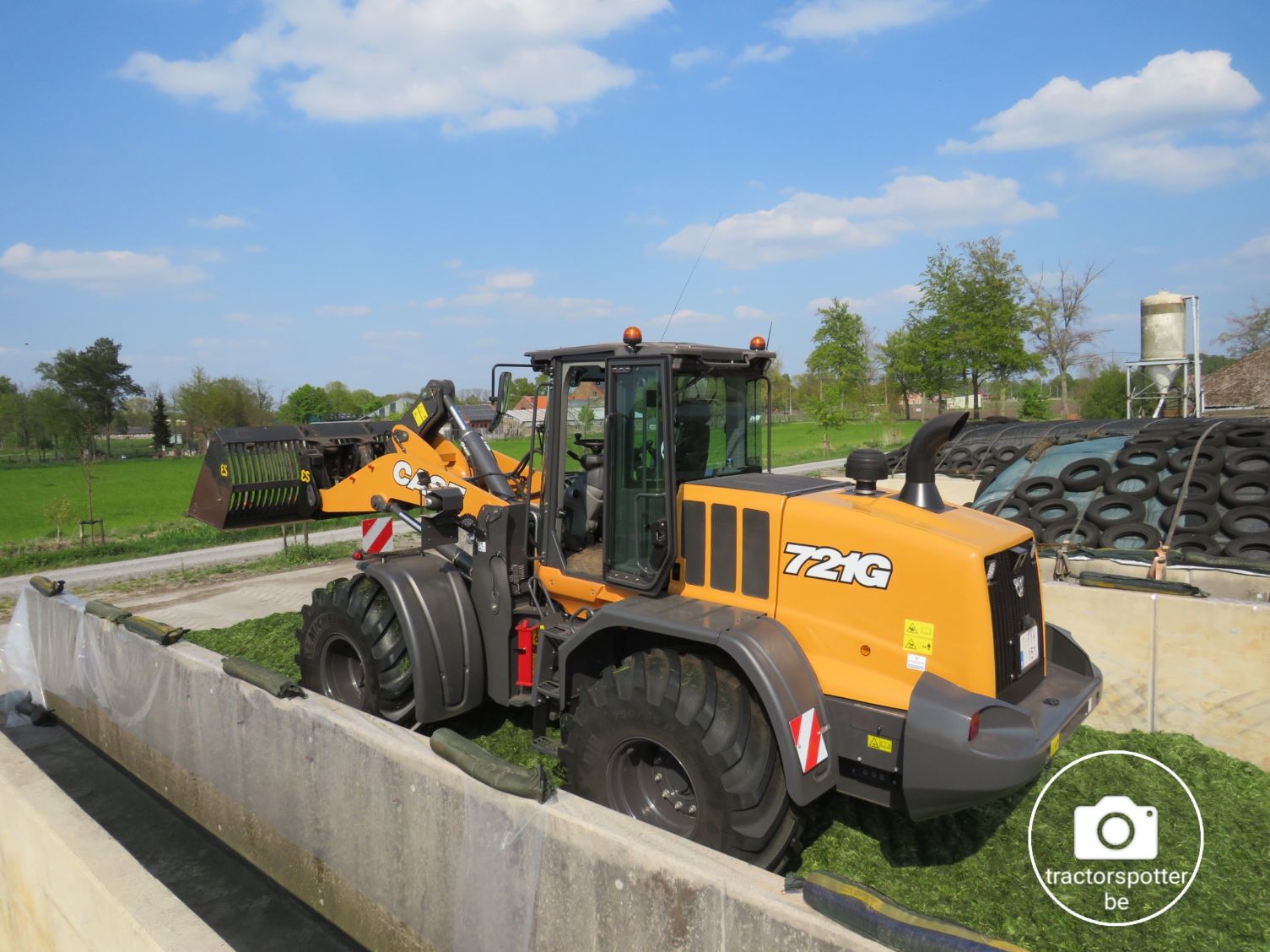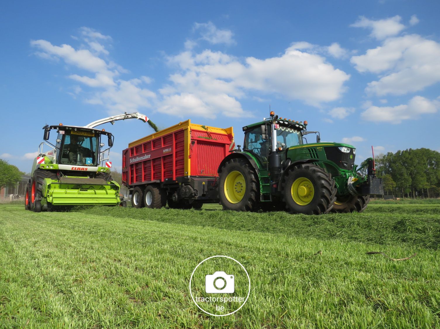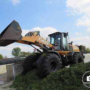Loonbedrijf Kemps aan het gras hakselen en inkuilen met hun Claas 960 Jaguar en Case 721G-bulldozer.