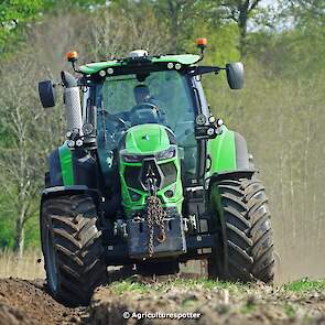 Ploegen in Renswoude (UT) met een Deutz-Fahr Agrotron 6215 TTV en een Kverneland 4-schaar wentelploeg van melkveehouder V.O.F. Van Heerikhuize in Lunteren (GD).