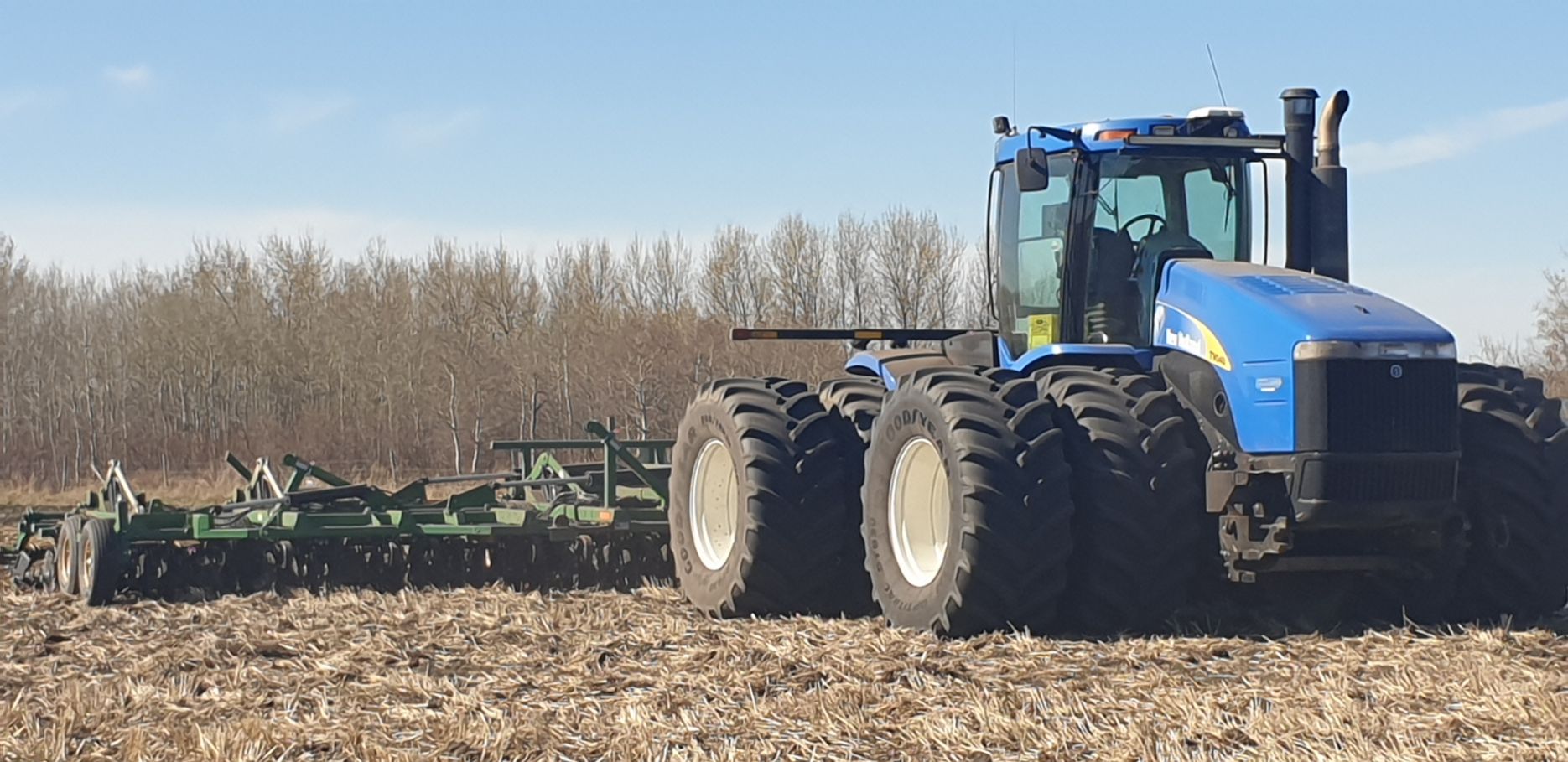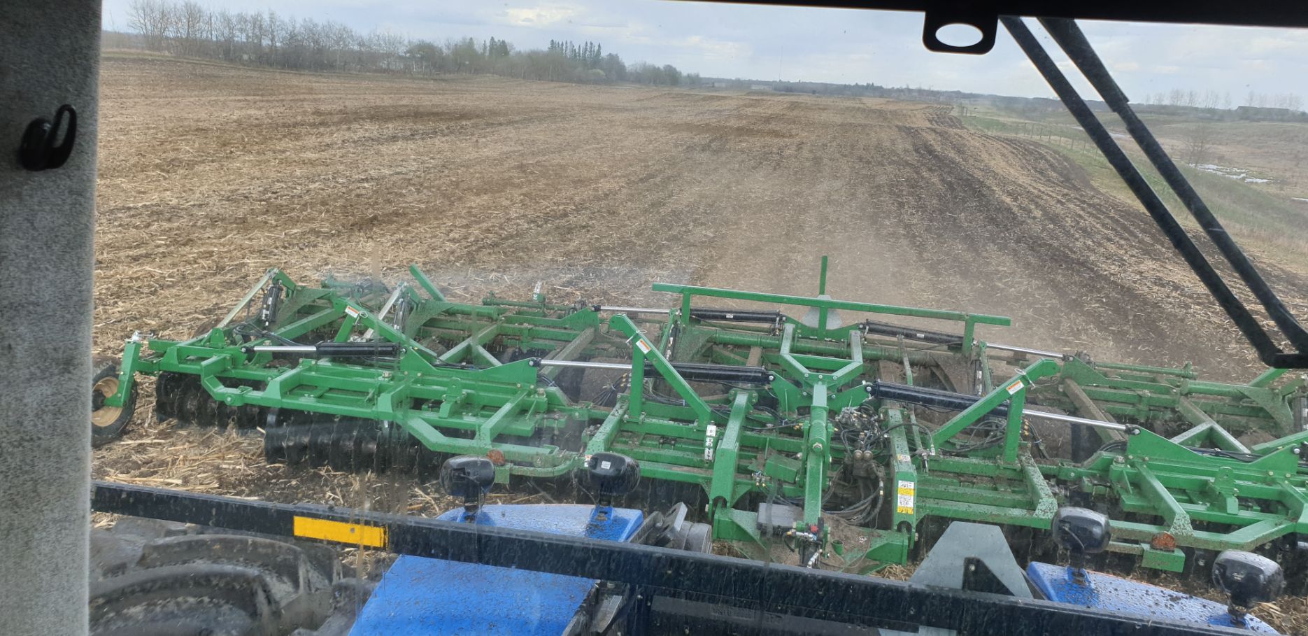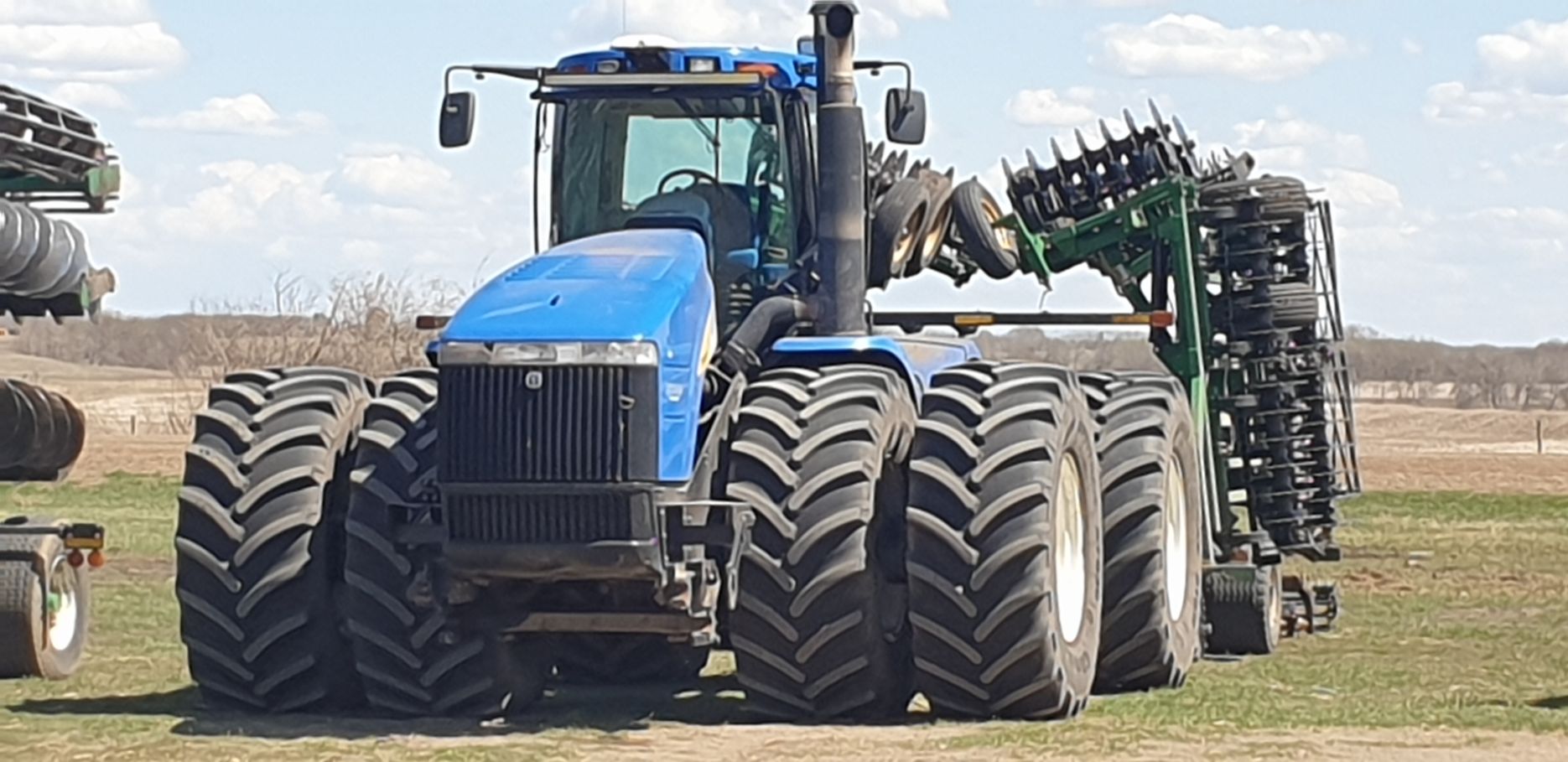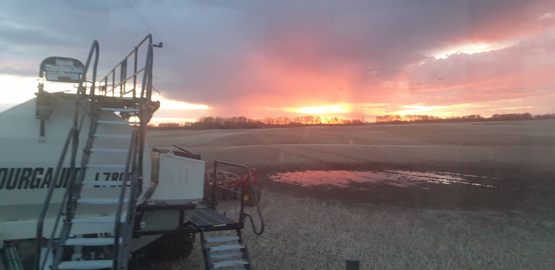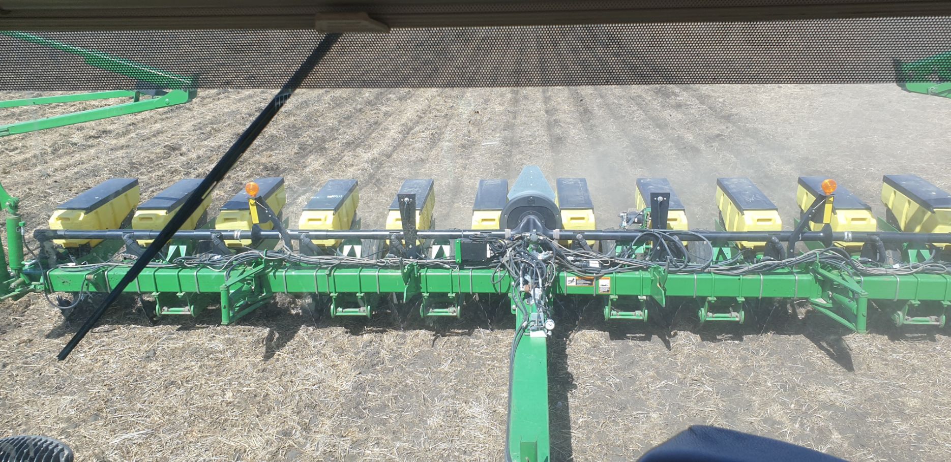 Maïs zaaien met een John Deere 7R290 en een 12-rijer maïspoter, New Holland 9040 met 40 voets Great Plains schijveneg. Aan het eind van de week twee dagen op pad geweest met een John Deere 9R620 met 60 voets Bourgault-zaaimachine met 20-tons zaaigoed-/ kunstmestwagen.