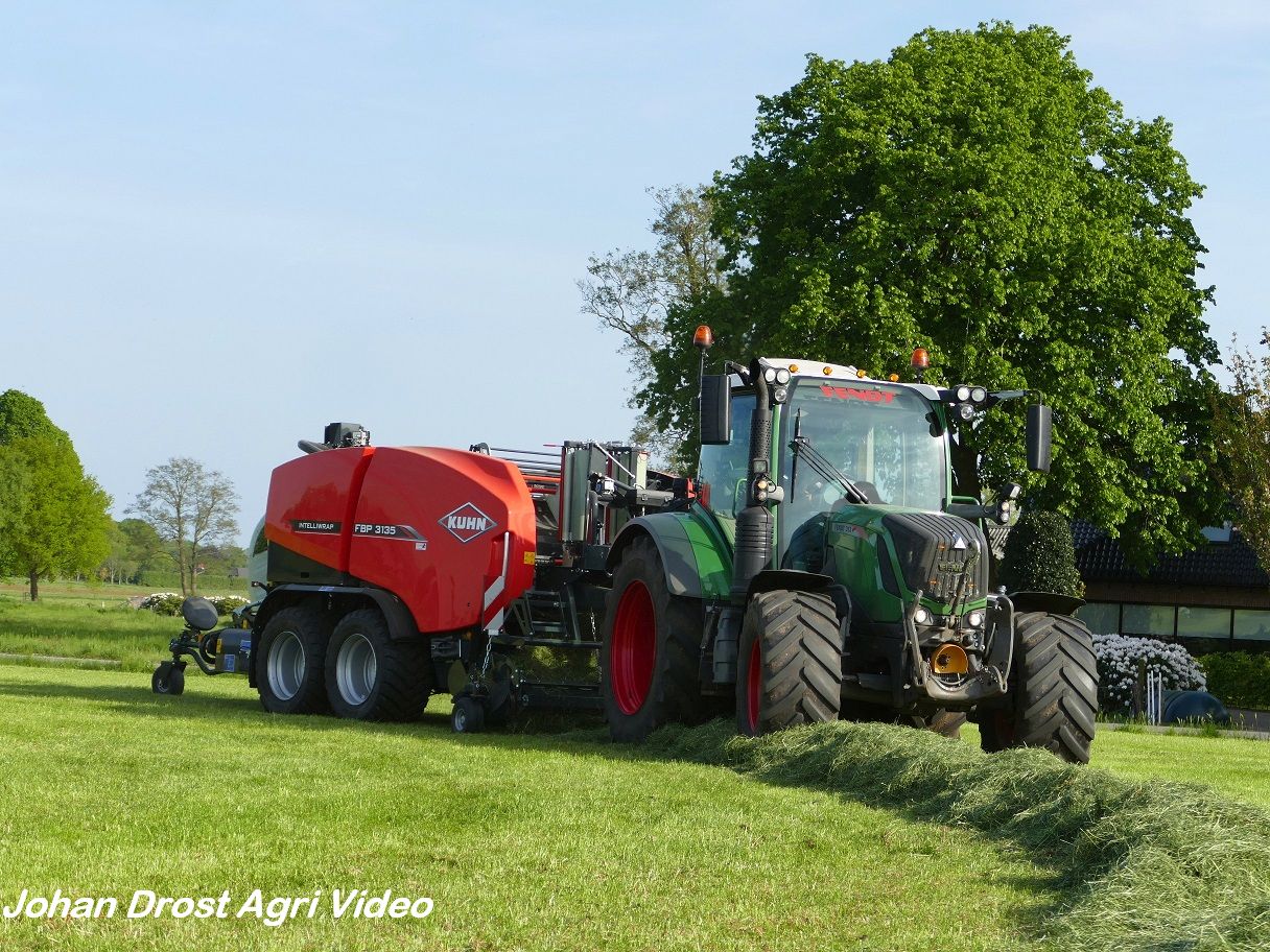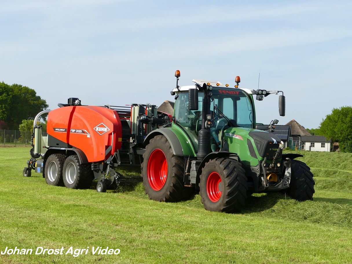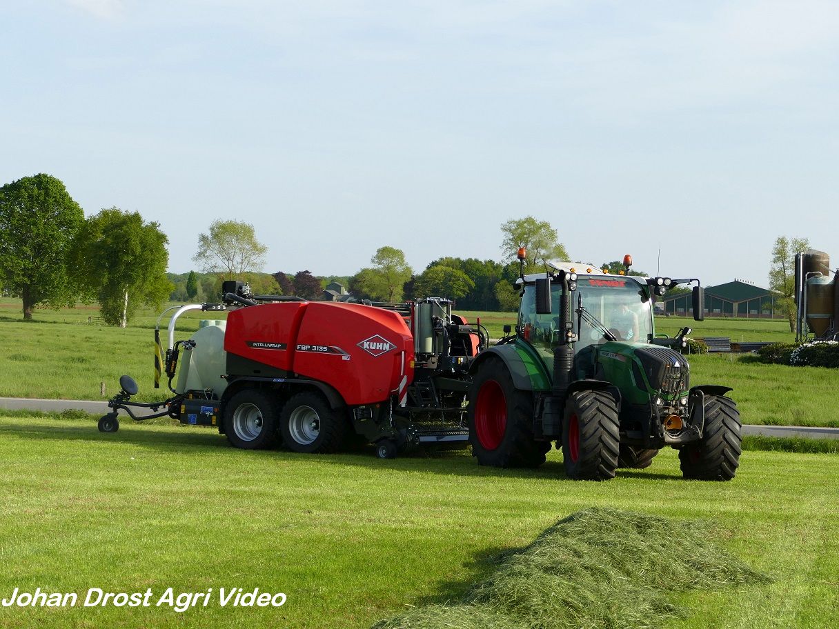 Fendt 313 Vario en nieuwe Kuhn FBP 3135 Intelliwrap pers-wikkelcombinatie