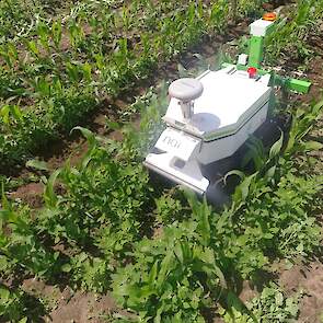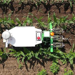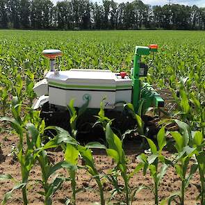 Loonbedrijf Boschloo uit Gorssel (GD) test op een perceel eigen maïs mechanische onkruidbestrijding met de Naïo Oz-schoffelrobot. Met de proef wil het loonbedrijf ervaring opdoen met chemieloze maïsteelt.