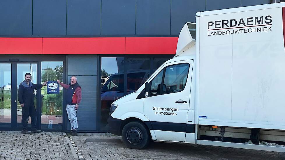 Paul Yntema, accountmanager bij Eurol, overhandigde symbolisch het entreebordje van de formule aan Mathieu Perdaems, eigenaar van Perdaems Landbouwtechniek. Mathieu Perdaems legt uit waarom hij zich bij de formule heeft aangesloten: ”We willen onze klanten zo goed mogelijk helpen bij alle denkbare smeertechnische vraagstukken. Eurol biedt binnen de formule alles wat ik nodig heb: kennis, ervaring, uitstraling en de juiste producten.”