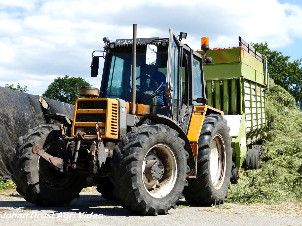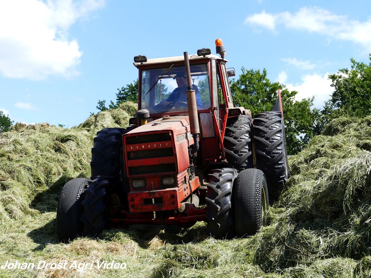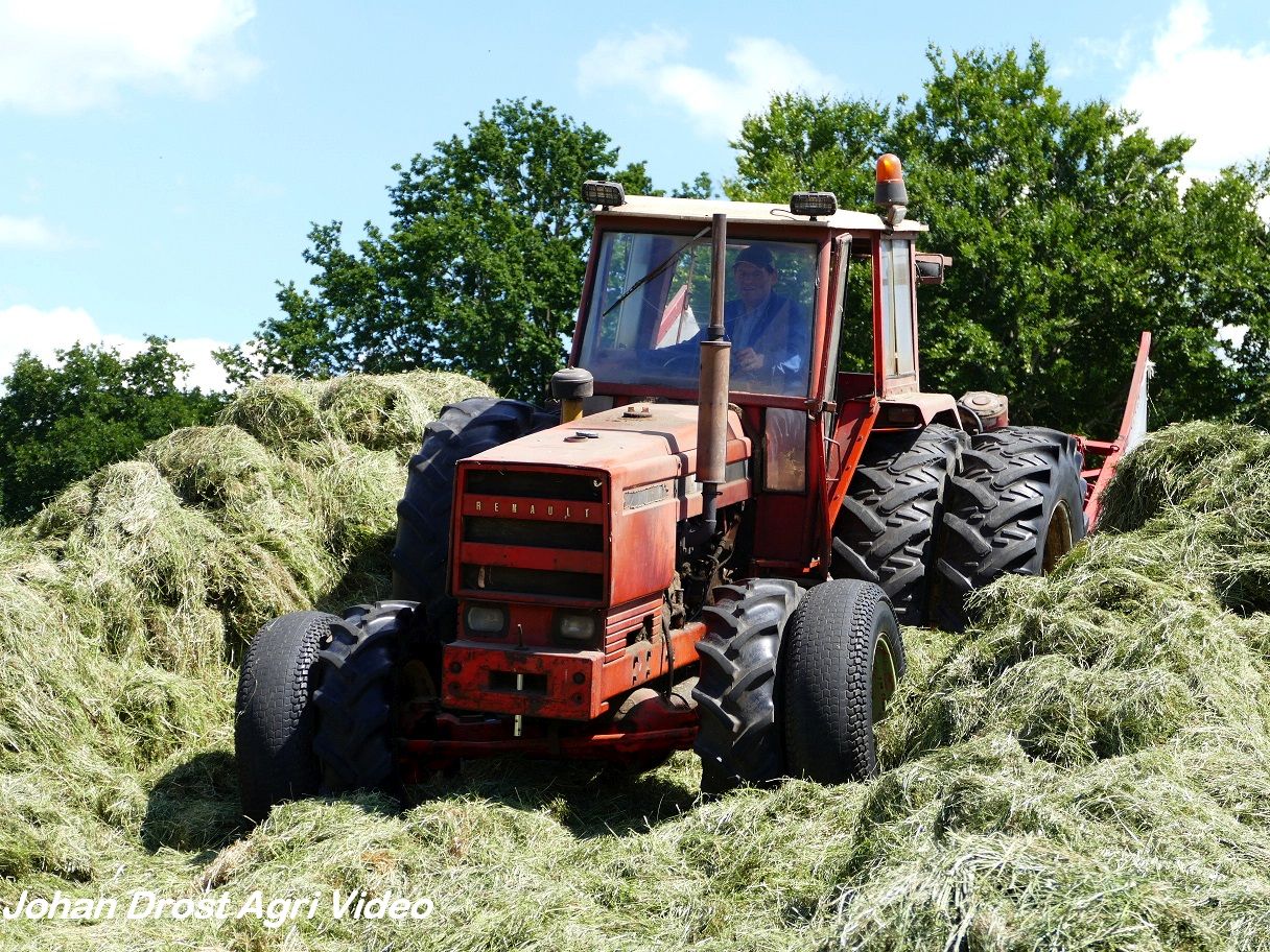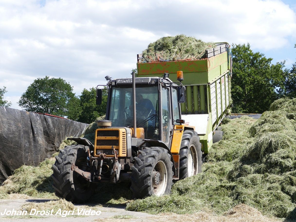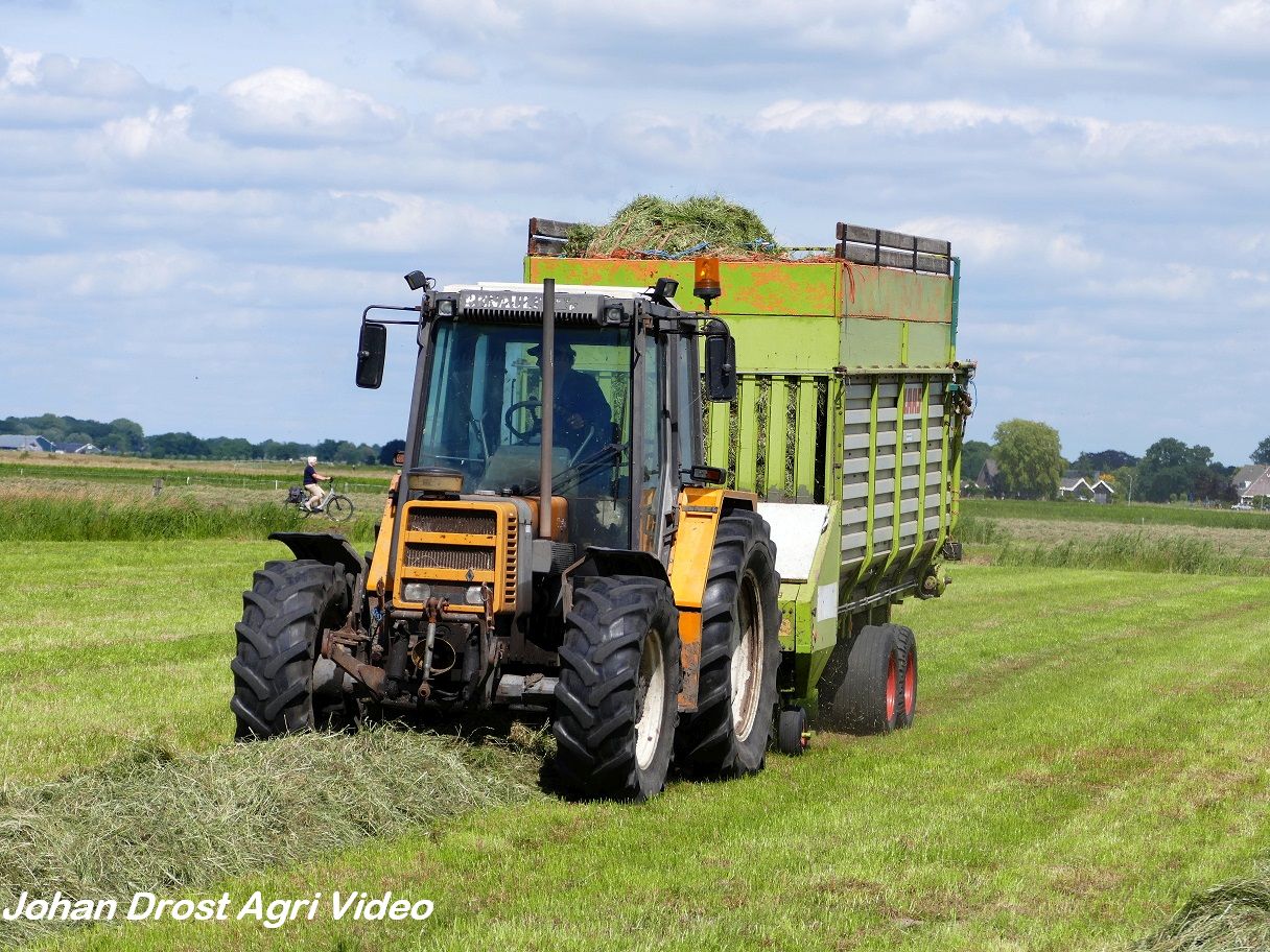 Melkveebedrijf Karzijn uit Doornspijk (GD) aan het gras inkuilen met een Renault 498 en een Renault 103.14 met een Claas Sprint 445 P.