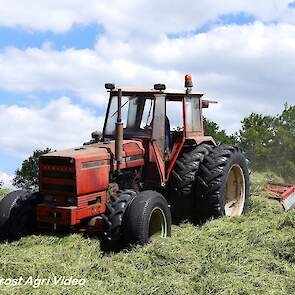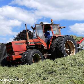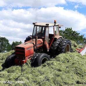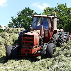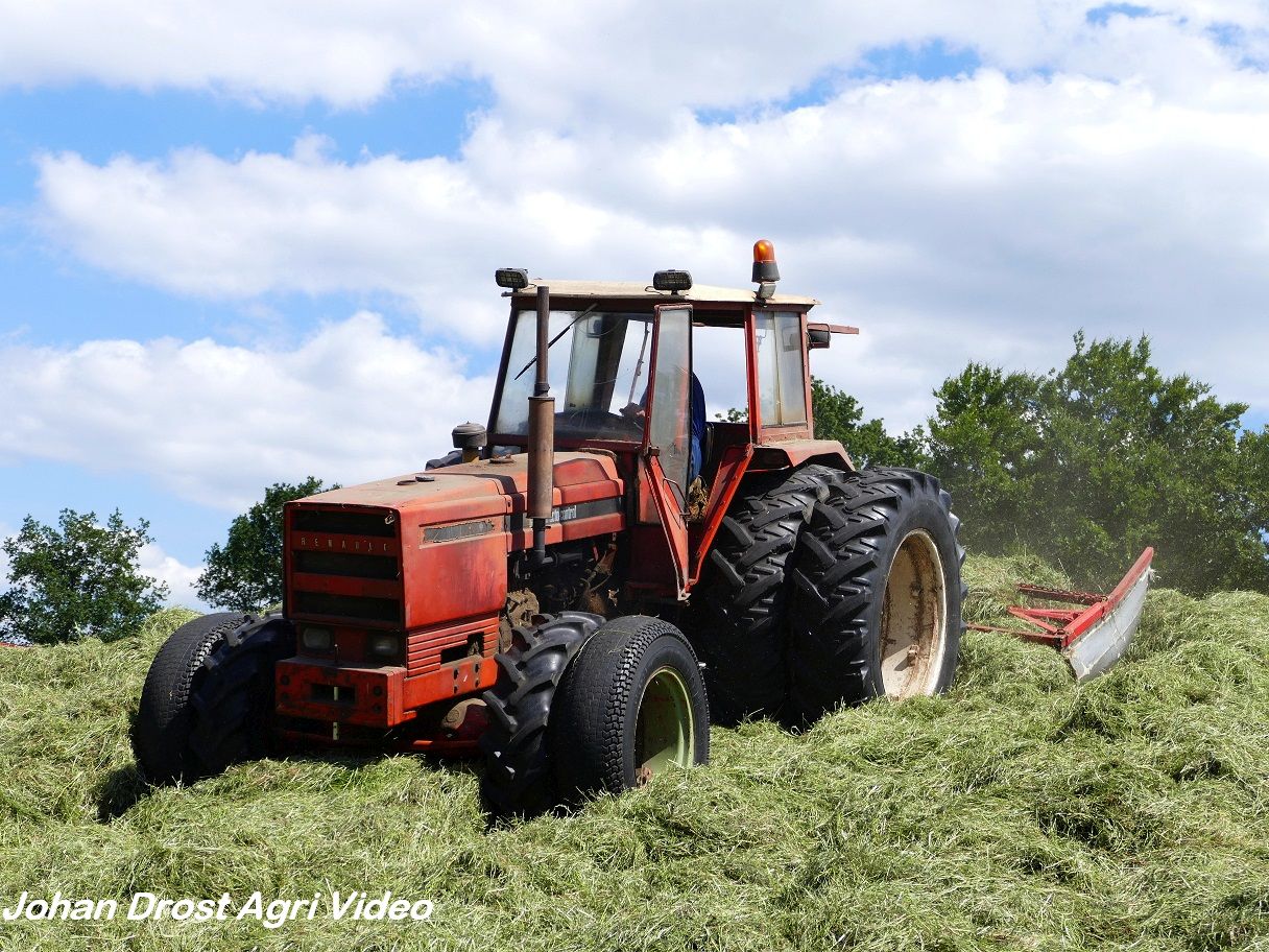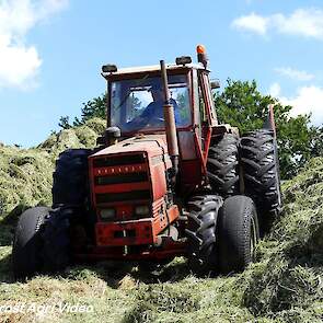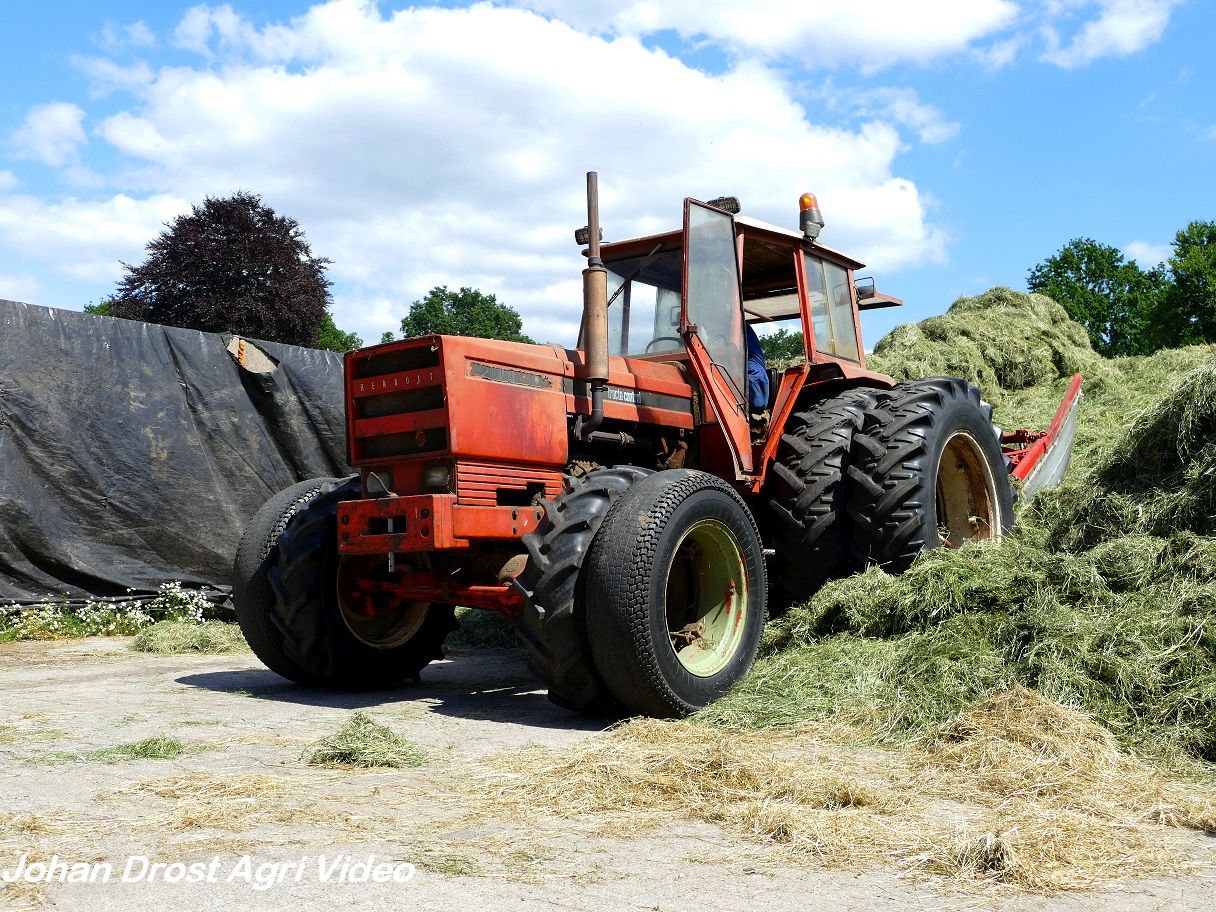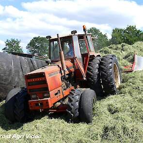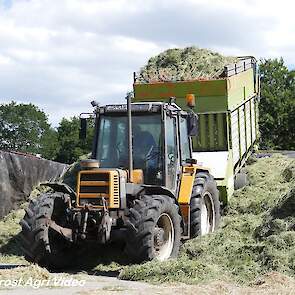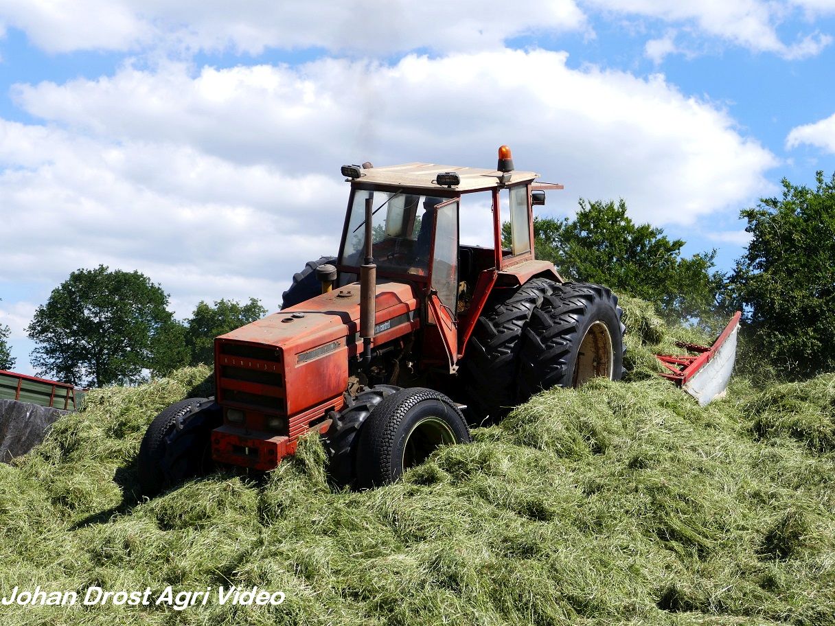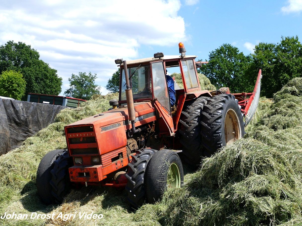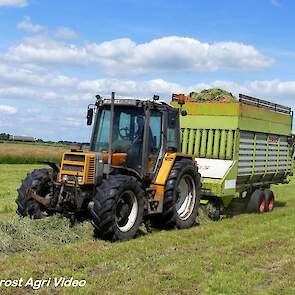 Melkveebedrijf Karzijn uit Doornspijk (GD) aan het gras inkuilen met een Renault 498 en een Renault 103.14 met een Claas Sprint 445 P.