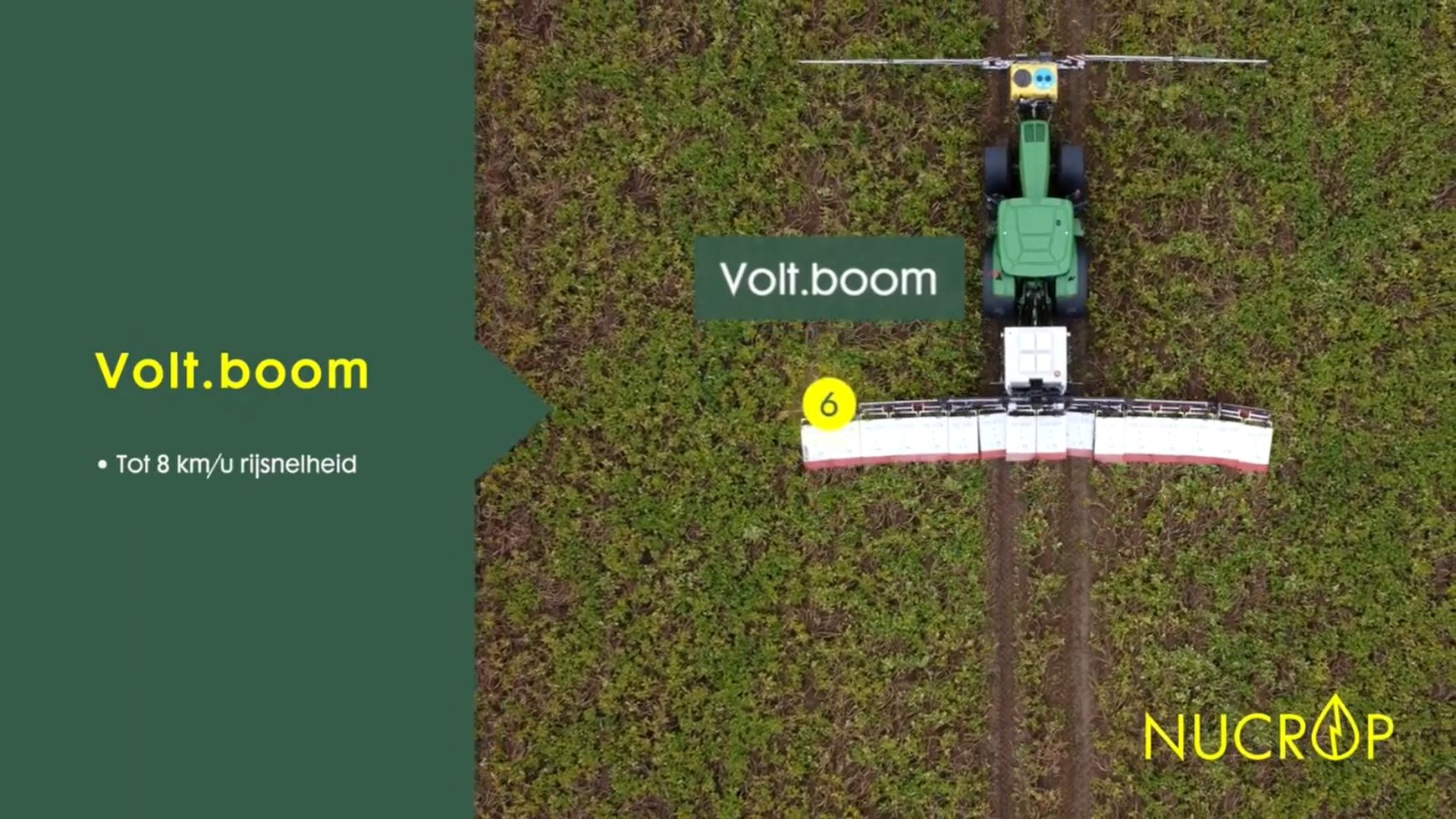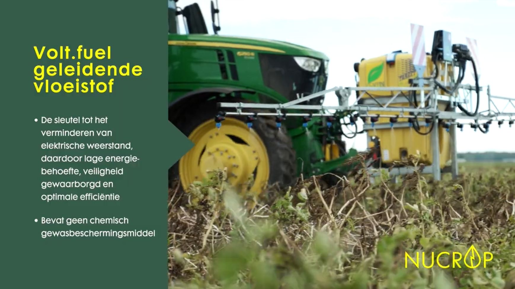 De NUCROP-machine werkt met een spuitboom voor op de trekker. Hiermee wordt een speciale geleidingsvloeistof (VOLT.FUEL) over het gewas gespoten. De trekker zorgt voor het vermogen om elektrische energie op wekken. Achter de trekker hangt het technische hart van de machine: de Volt.cube die de elektrische energie verdeelt over de applicators die over het loof worden gesleept. Blad en stengel worden op deze wijze in een werkgang gedood.
