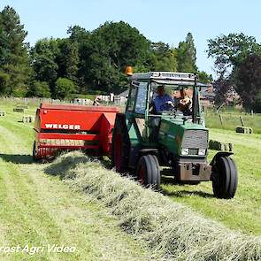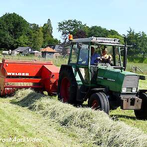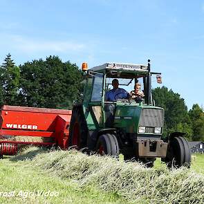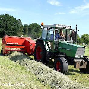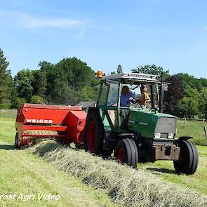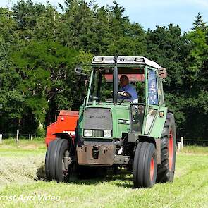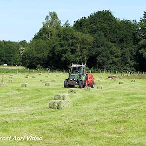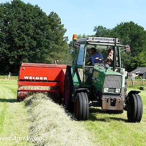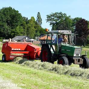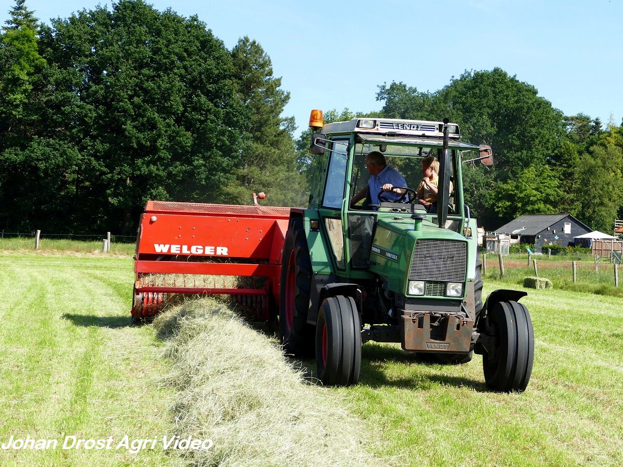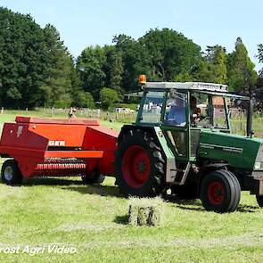 Bloemendal Dienstverlening uit Elspeet (GD) aan het hooibaaltjes persen met een Fendt Farmer 306 LS en een Welger-pers.