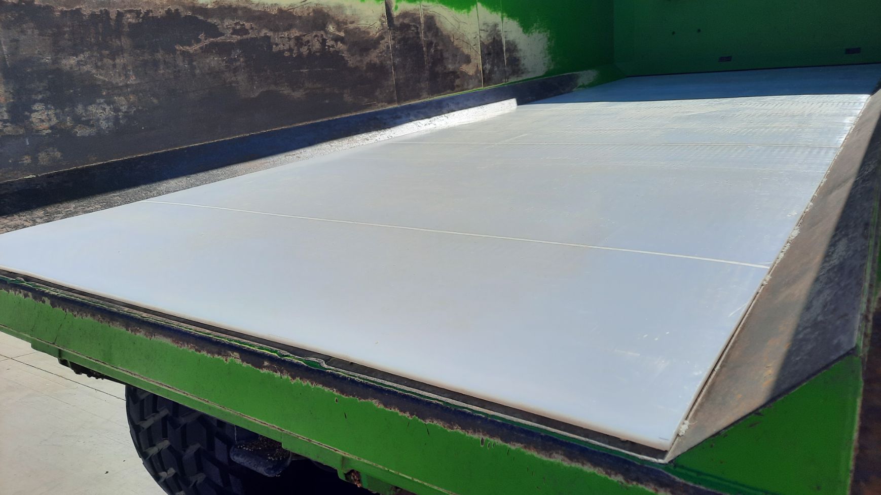 Deze speciaal voor Pommeq gefabriceerde kunststof plaat zorgt er voor dat er nooit meer grond blijft plakken op de kipperbodem en garandeert een snelle en gelijkmatige lossing van uw product. Voor alle kippers met een maximale (vlakke) vloerbreedte van 220 cm. Wij komen dit graag in uw kipper monteren. De Kipper Slide wordt per kipper op maat gesneden.