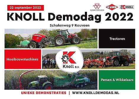 Op donderdag 22 september 2022 organiseert Knoll BV een velddemonstratie in Rouveen (OV). Er is een inspirerend demonstratieprogramma samengesteld met aandacht voor de nieuwste Massey Ferguson-tractoren en (unieke) MF- en Kuhn-hooibouwmachines voor zowel veehouders als loonwerkers.