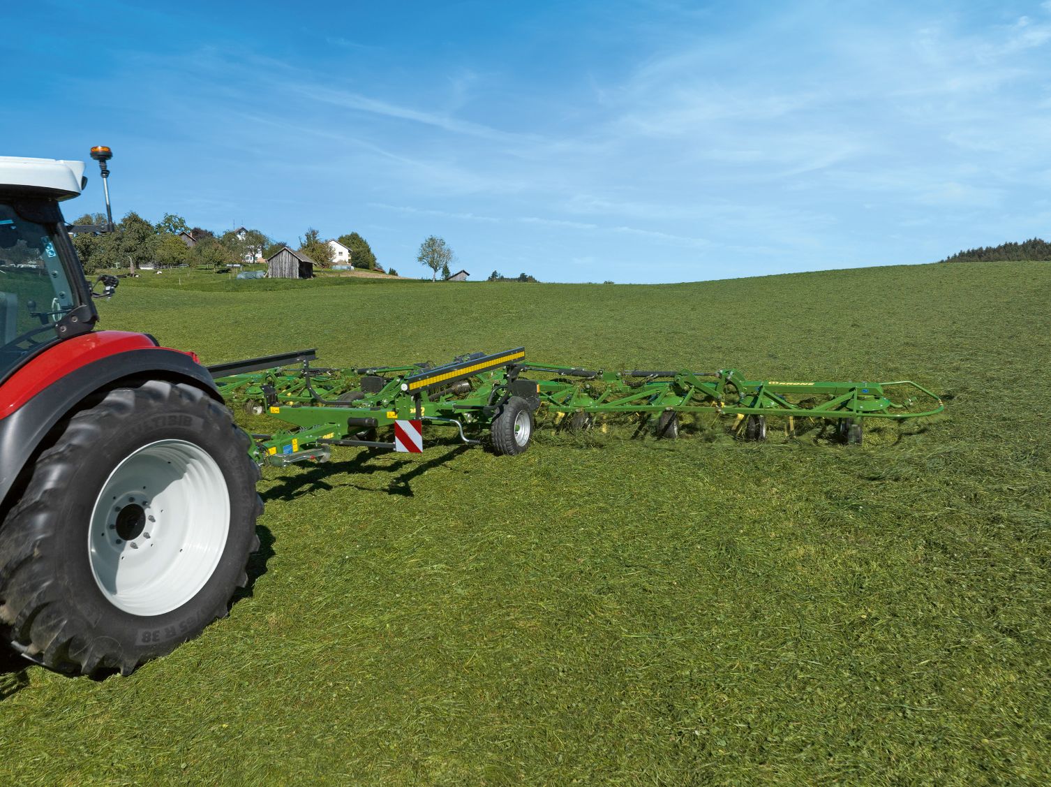 Dankzij de tweepuntsbevestiging (of trekhaak/ driepuntsbevestiging bij Vendro C 1120) zijn de nieuwe schudders ook geschikt voor trekkers vanaf ca. 50 pk. Een ander pluspunt: alle nieuwe Vendro-modellen zijn standaard met de Krone OptiTurn-schuddertanden en -tandarmen uitgerust. Door een dicht bij de schuddertand lopend wiel in combinatie met de gepatenteerd gebogen Krone OptiTurn-schuddertand werken de machines met een optimale bodemaanpassing. Tegelijkertijd staat de driedimensionaal gevormde Krone OptiTurn-schuddertand voor een zeer schone gewasopname en maximale schudbeeld van het gewas.