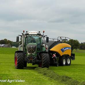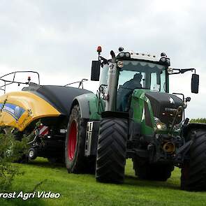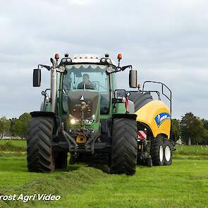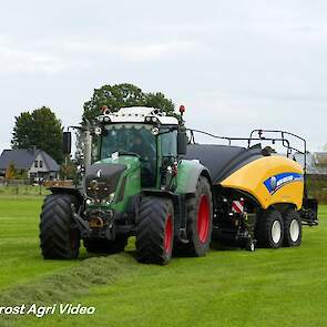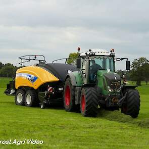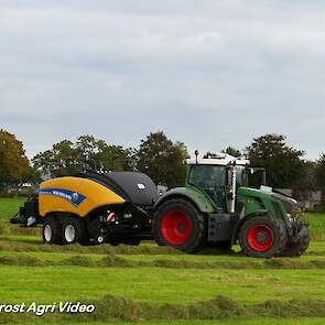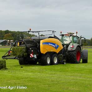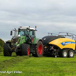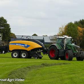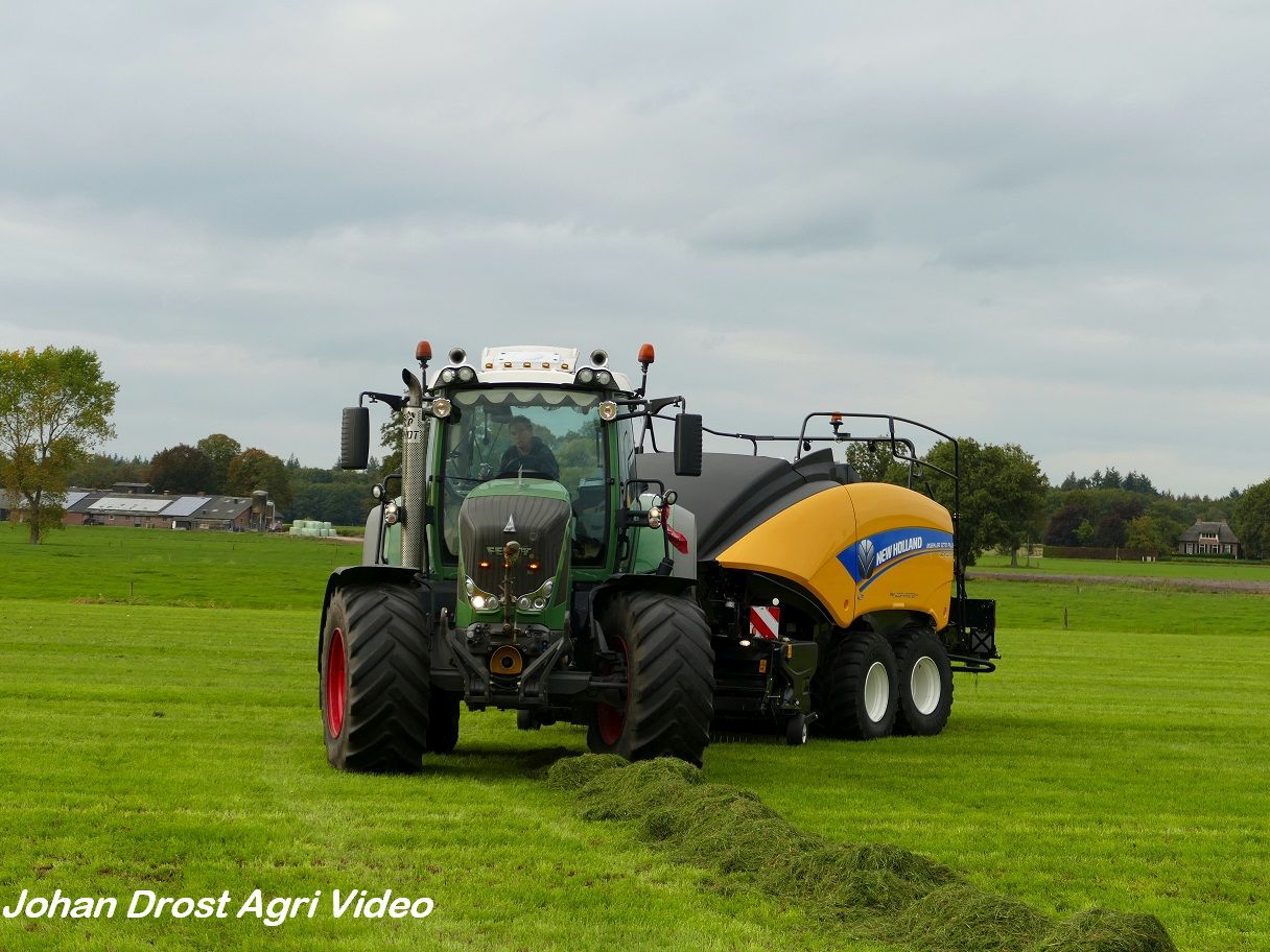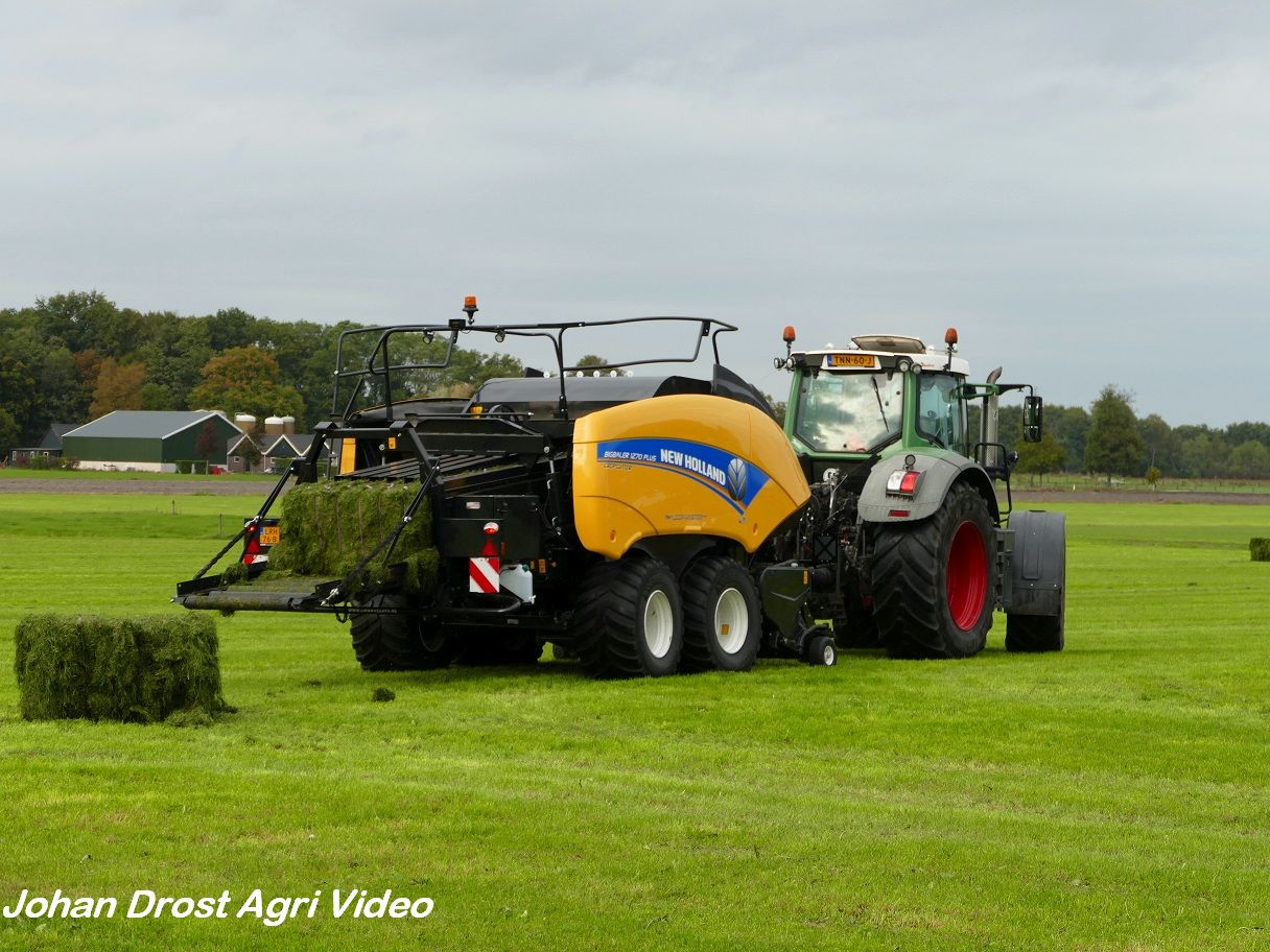 Loonbedrijf P. van den Hardenberg uit Elspeet (GD) aan het balen persen met een Fendt 828 Vario en een demo New Holland BigBaler 1270 Plus CropCutter-grootpakpers.