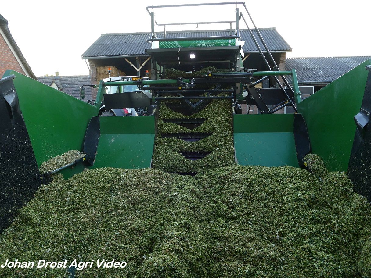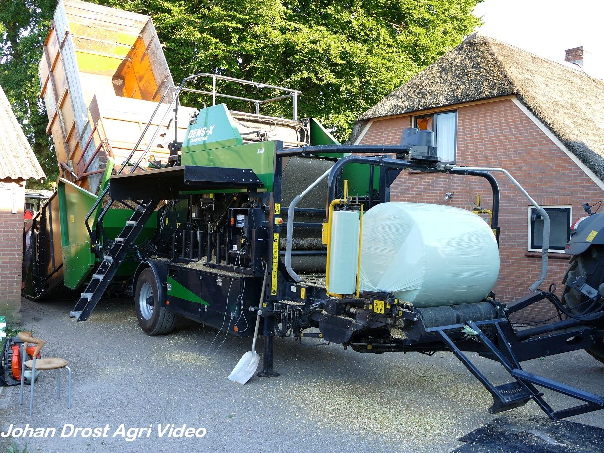 Agrar Services Termaat Terpac C.V. uit Putten (GD) aan het maïsbalen persen en wikkelen met een Fendt 828 Vario en een Orkel Dens-X-compactor. De aanvoer gebeurt met een Fendt 312 Vario TMS en een Fendt 313 Vario door Bloemendal Dienstverlening uit Elspeet (GD). De afvoer met een Weidemann 2070 CX80.