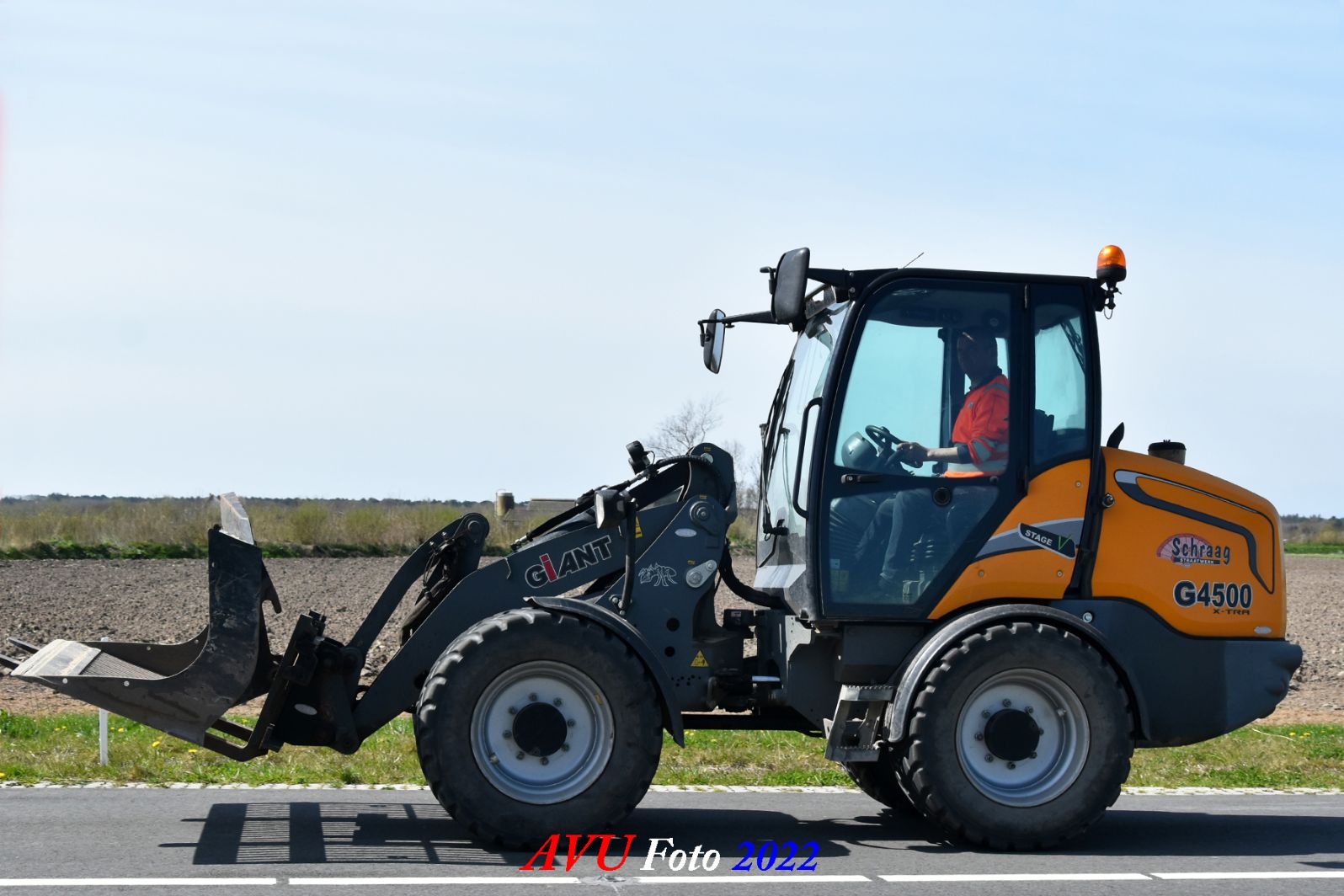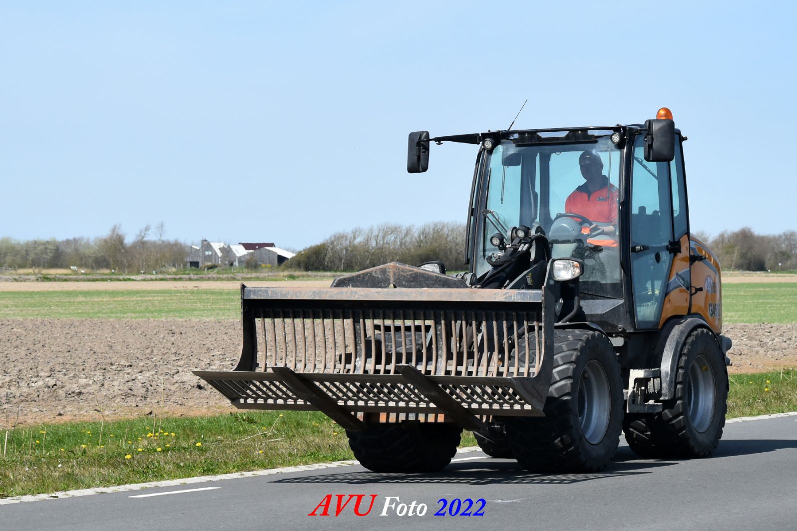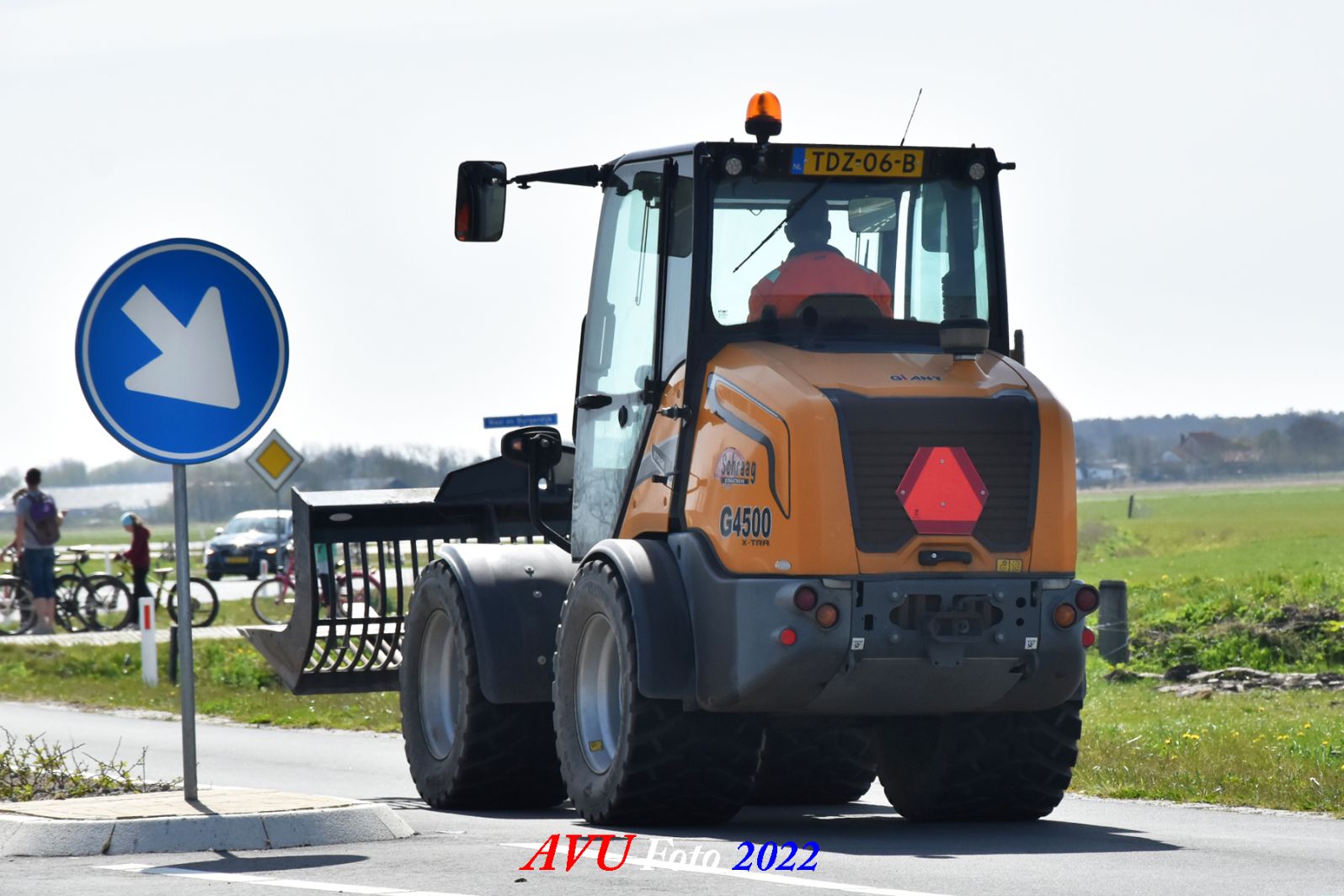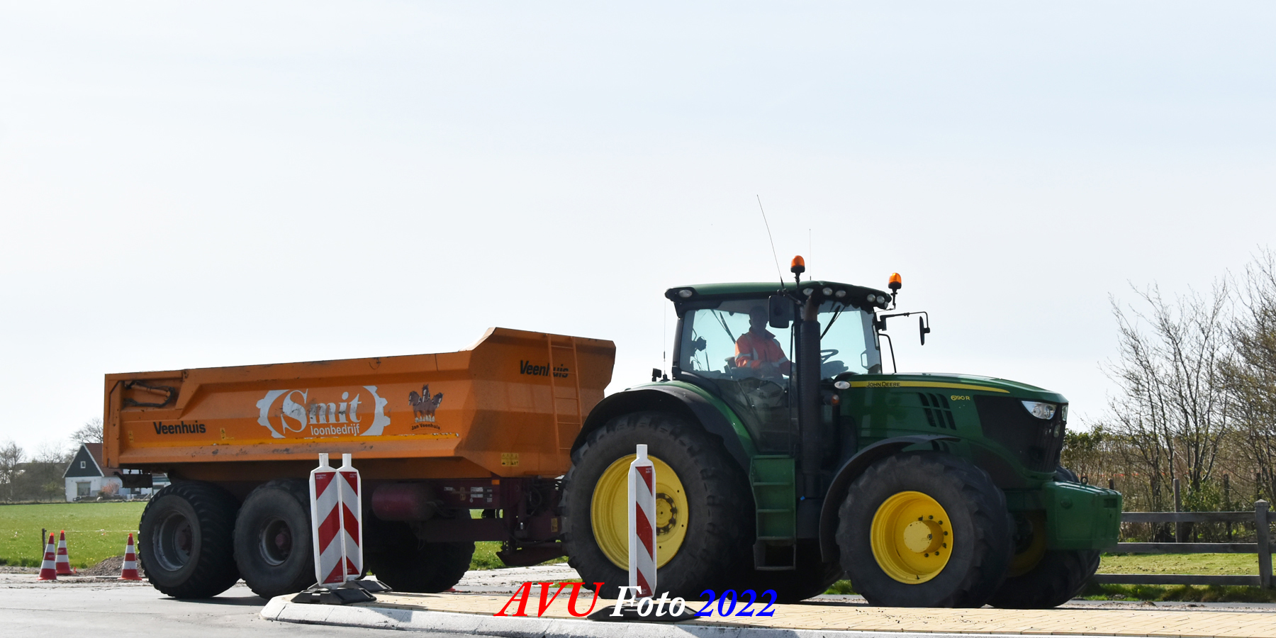 De John Deere 6190 R met Jan Veenhuis-tandemkipper en de mooie zware Giant by Tobroco G 4500 X-TRR Stage V-loader werkten beiden aan de doorlopende vernieuwde weg over Texel (NH).