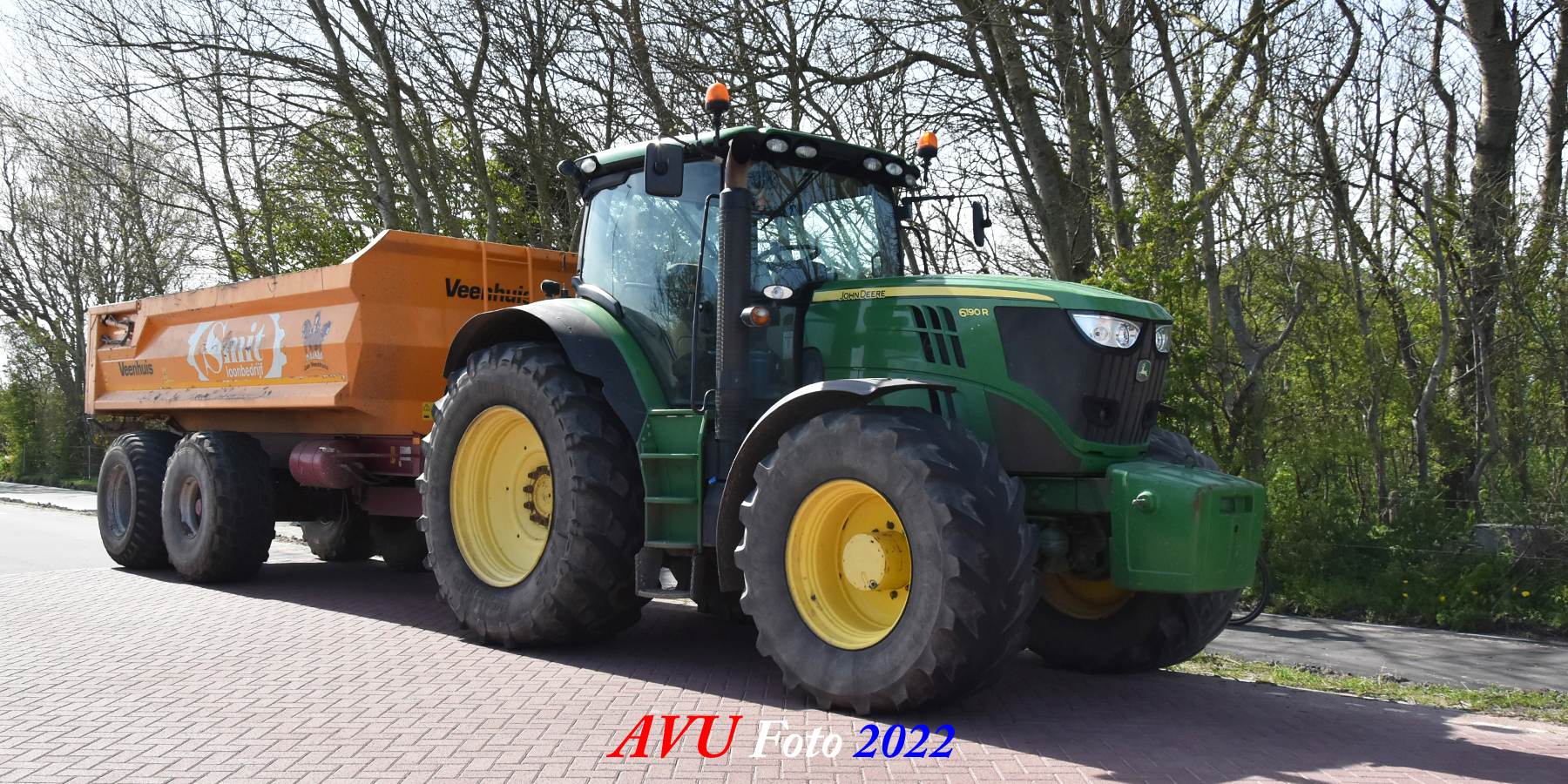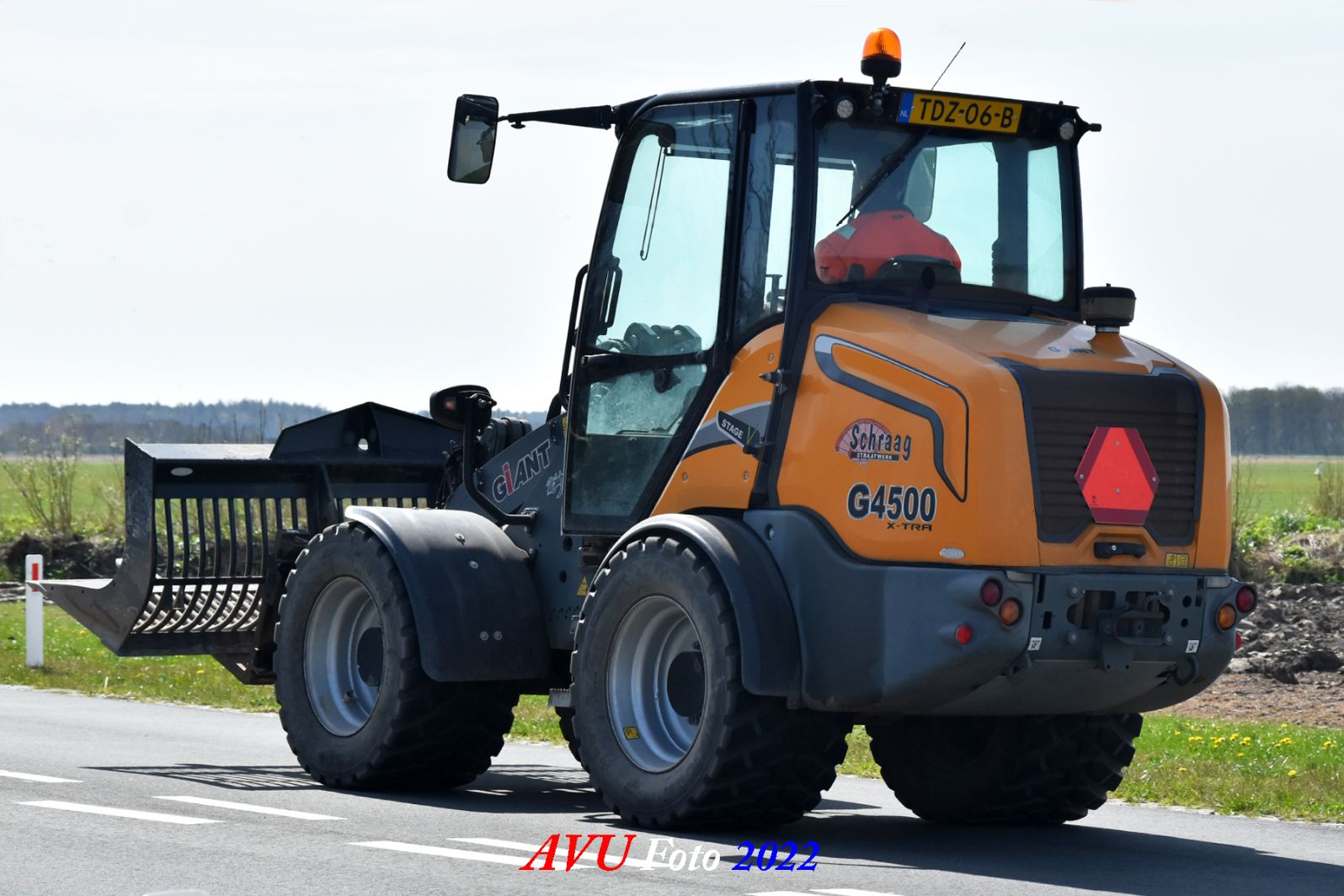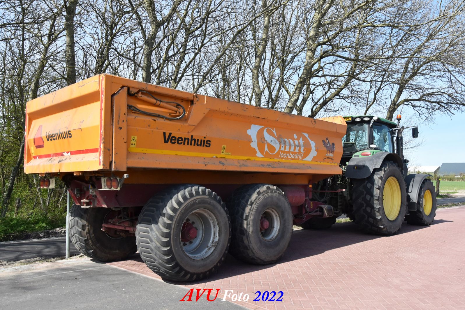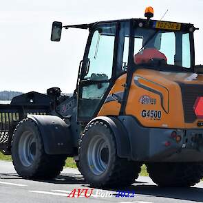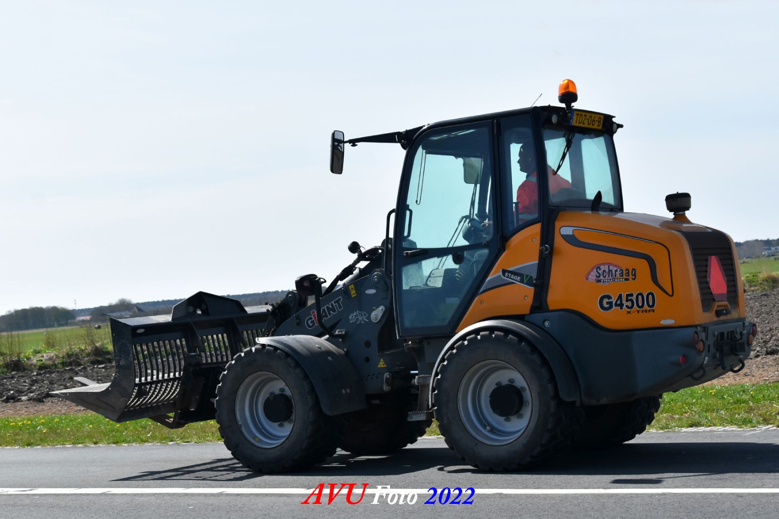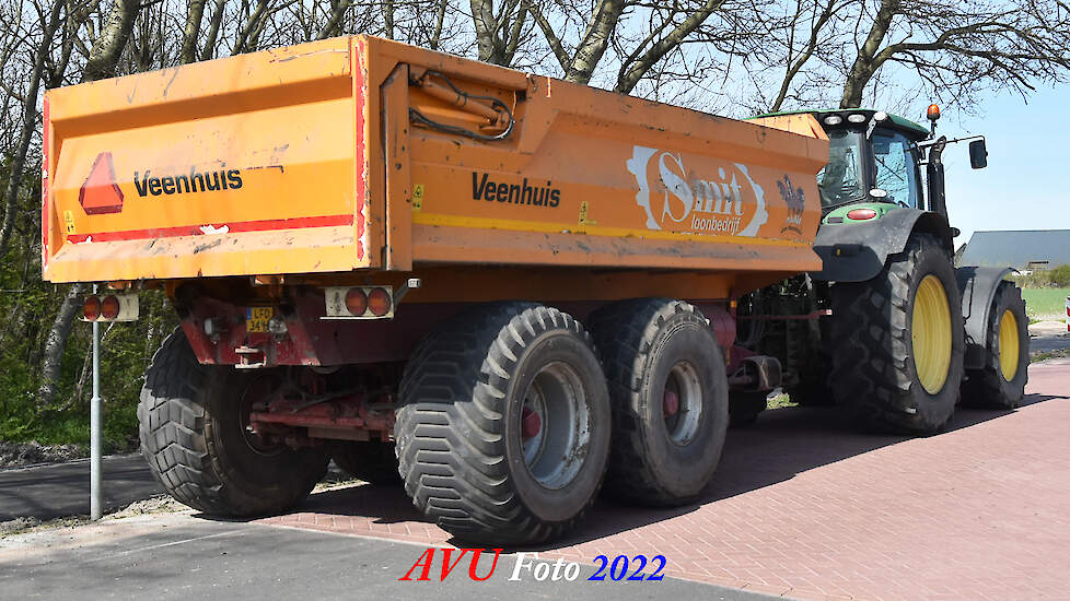De John Deere 6190 R met Jan Veenhuis-tandemkipper en de mooie zware Giant by Tobroco G 4500 X-TRR Stage V-loader werkten beiden aan de doorlopende vernieuwde weg over Texel (NH).