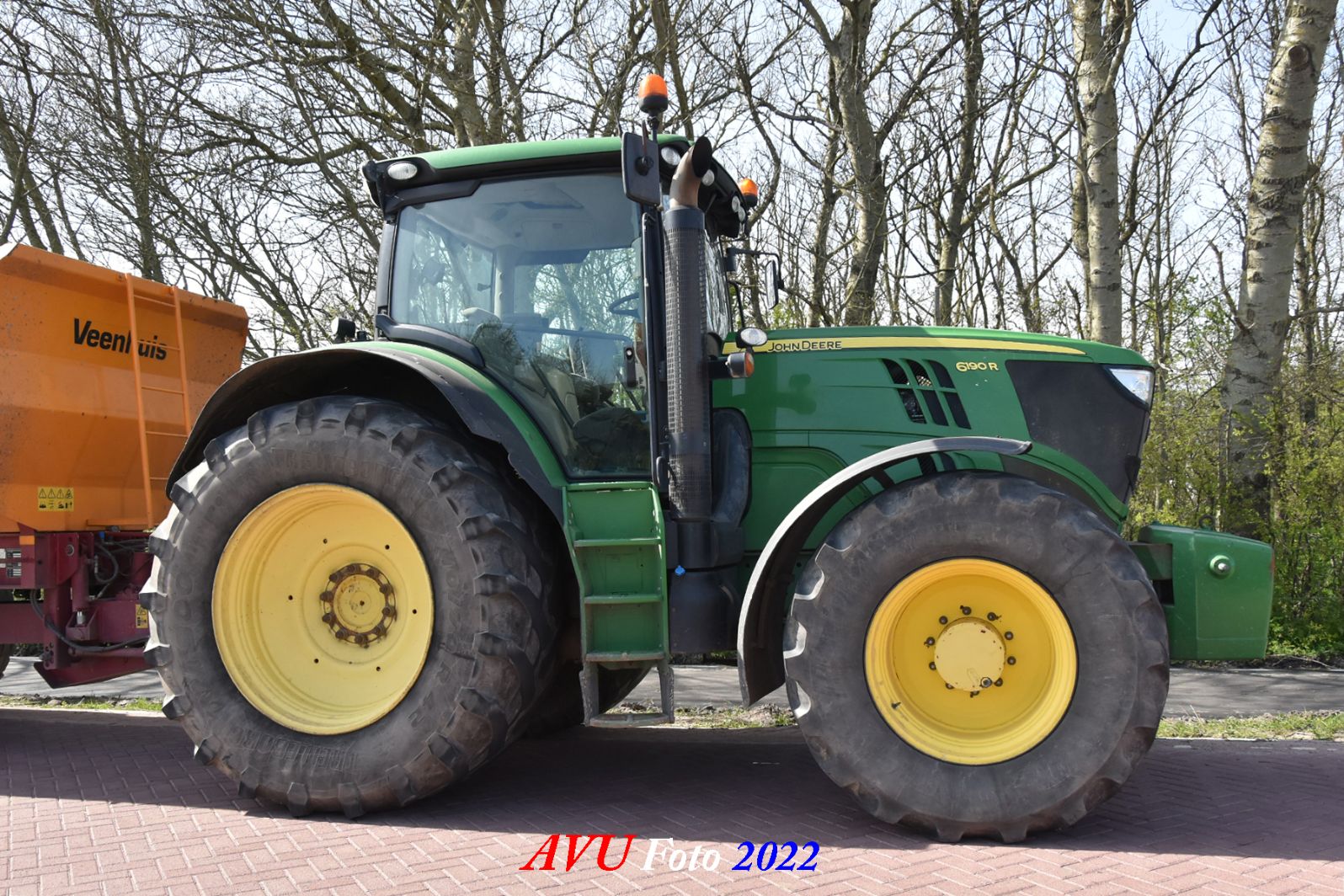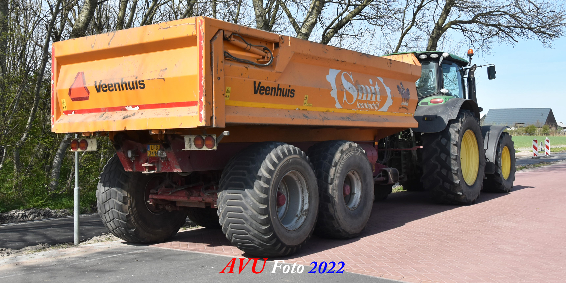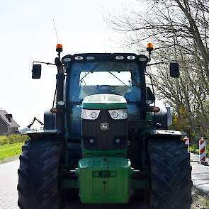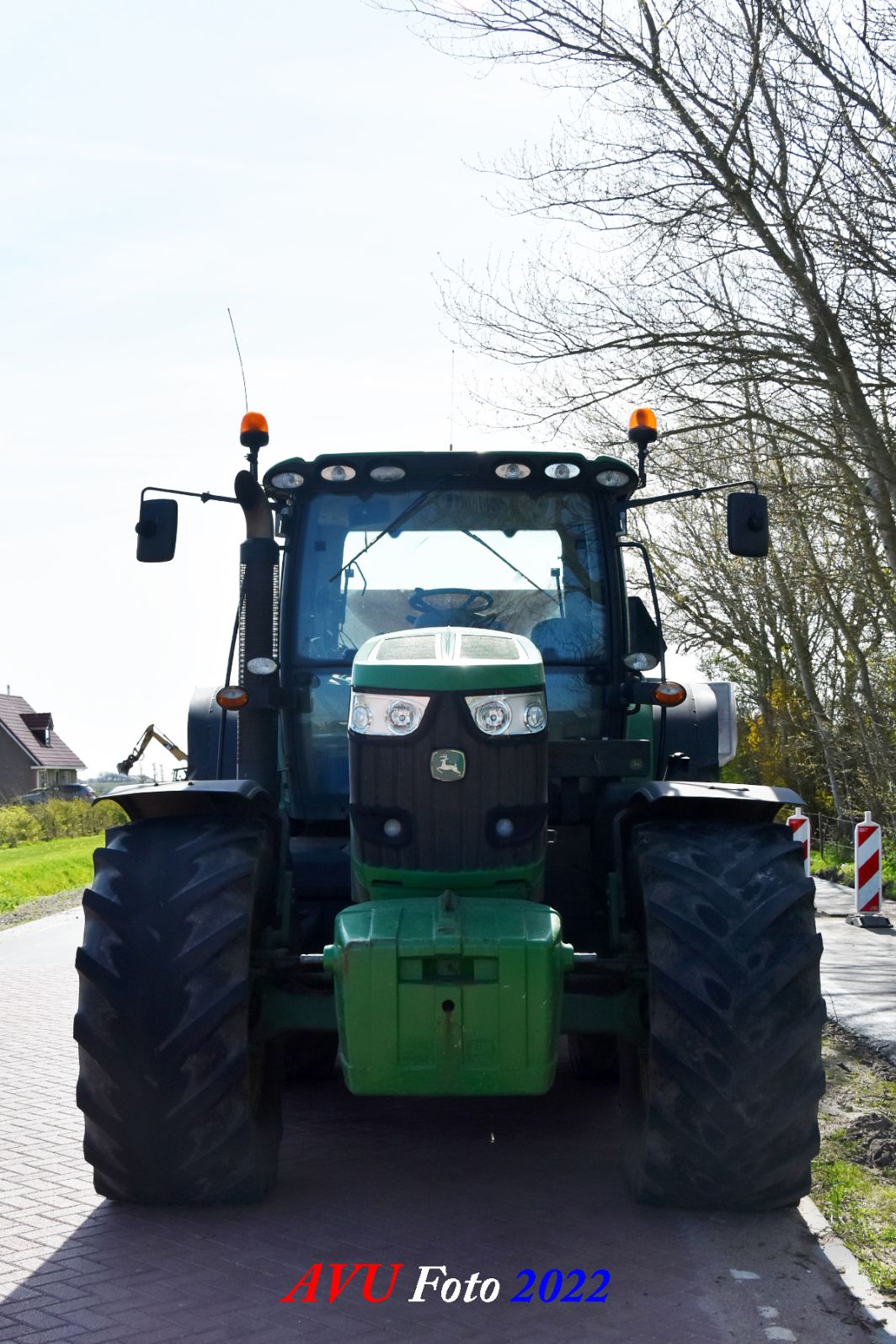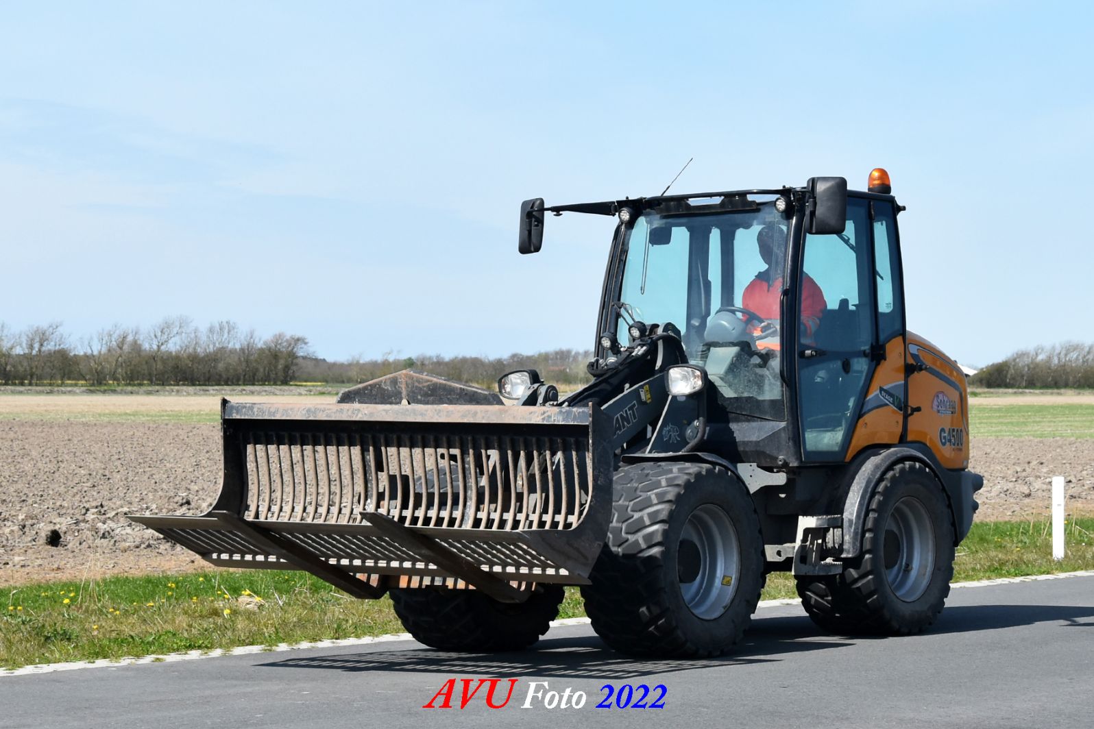 De John Deere 6190 R met Jan Veenhuis-tandemkipper en de mooie zware Giant by Tobroco G 4500 X-TRR Stage V-loader werkten beiden aan de doorlopende vernieuwde weg over Texel (NH).