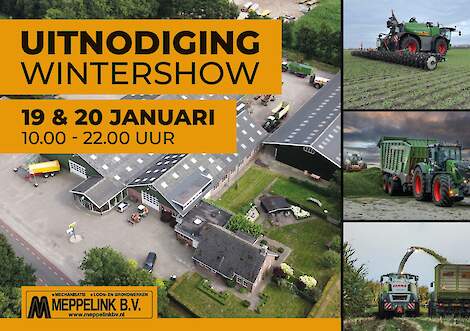 Op donderdag 19 en vrijdag 20 januari 2023 van 10:00 tot 22:00 houdt Meppelink BV een wintershow. Op de show is een ruim aanbod van zowel gebruikte als nieuwe trekkers en machines te zien. En daarnaast kunt u een kijkje komen nemen op ons bedrijf. Graag tot dan.