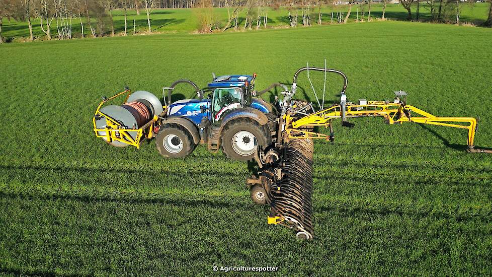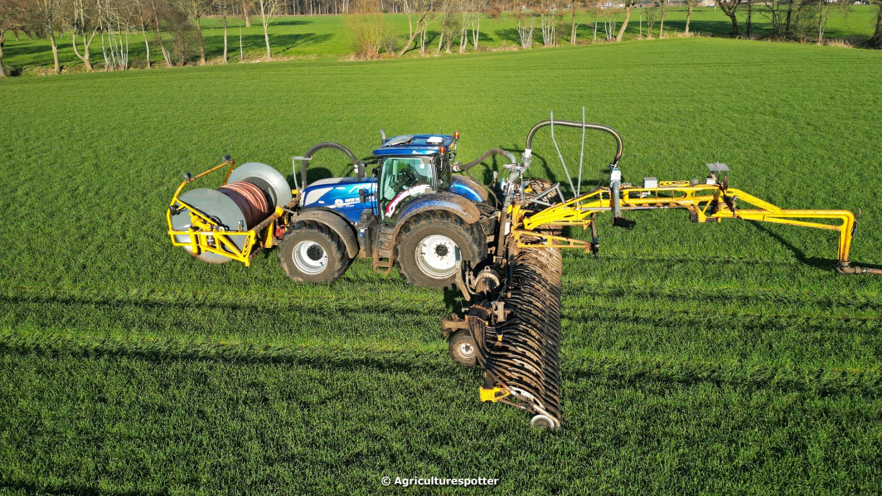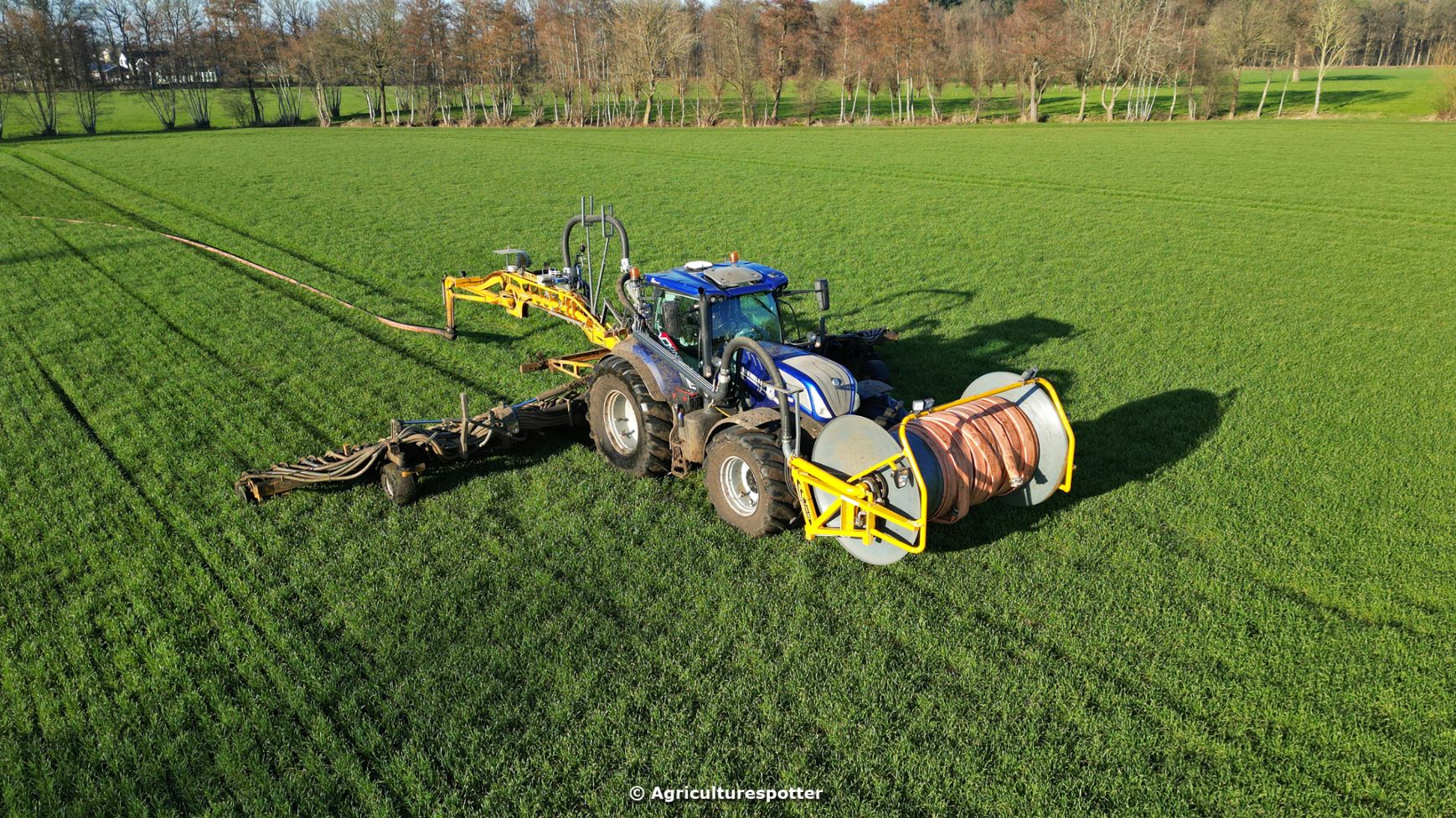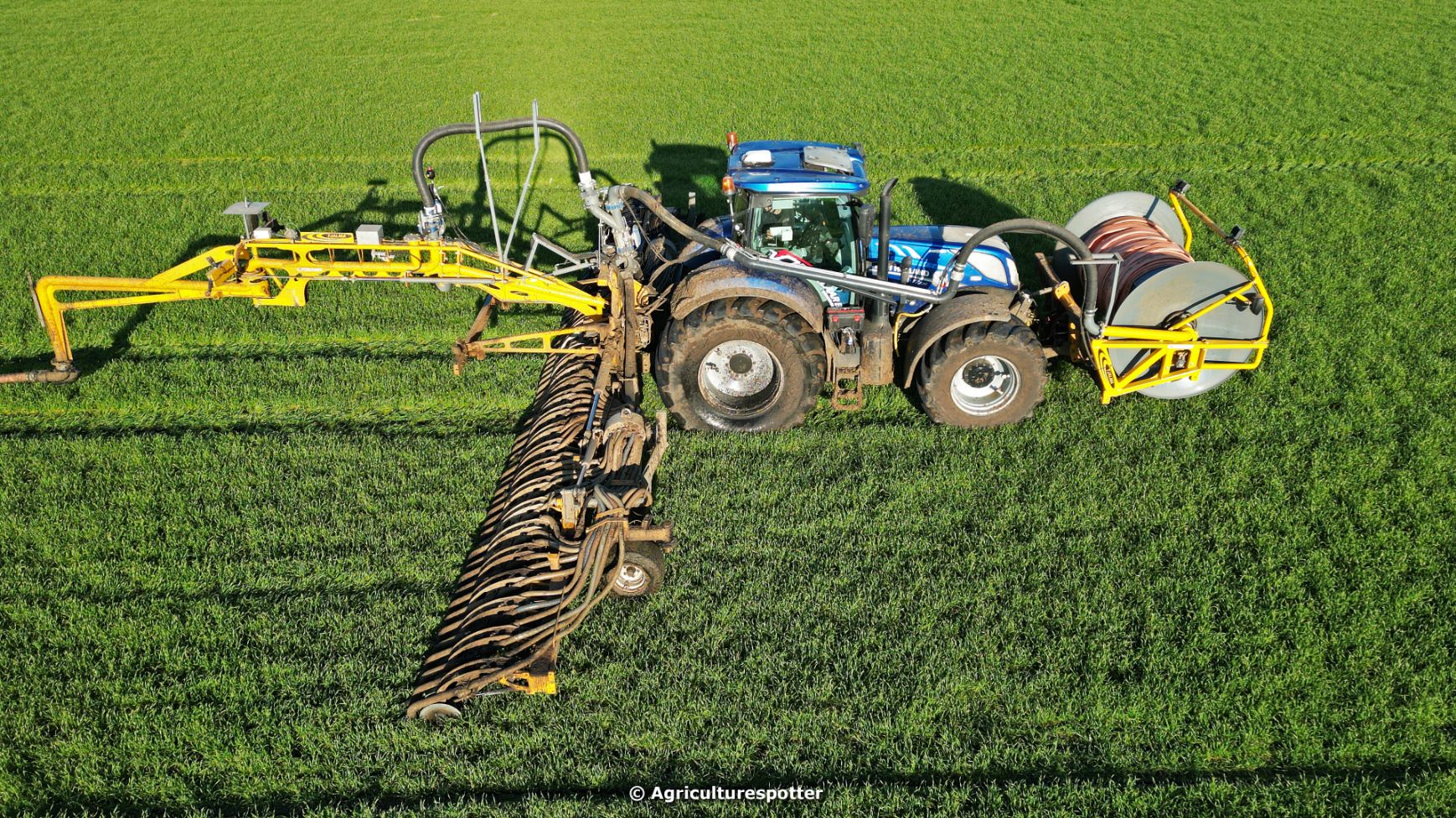 New Holland T7.230 Blue Power en een Tjalma-sleepslanginstallatie