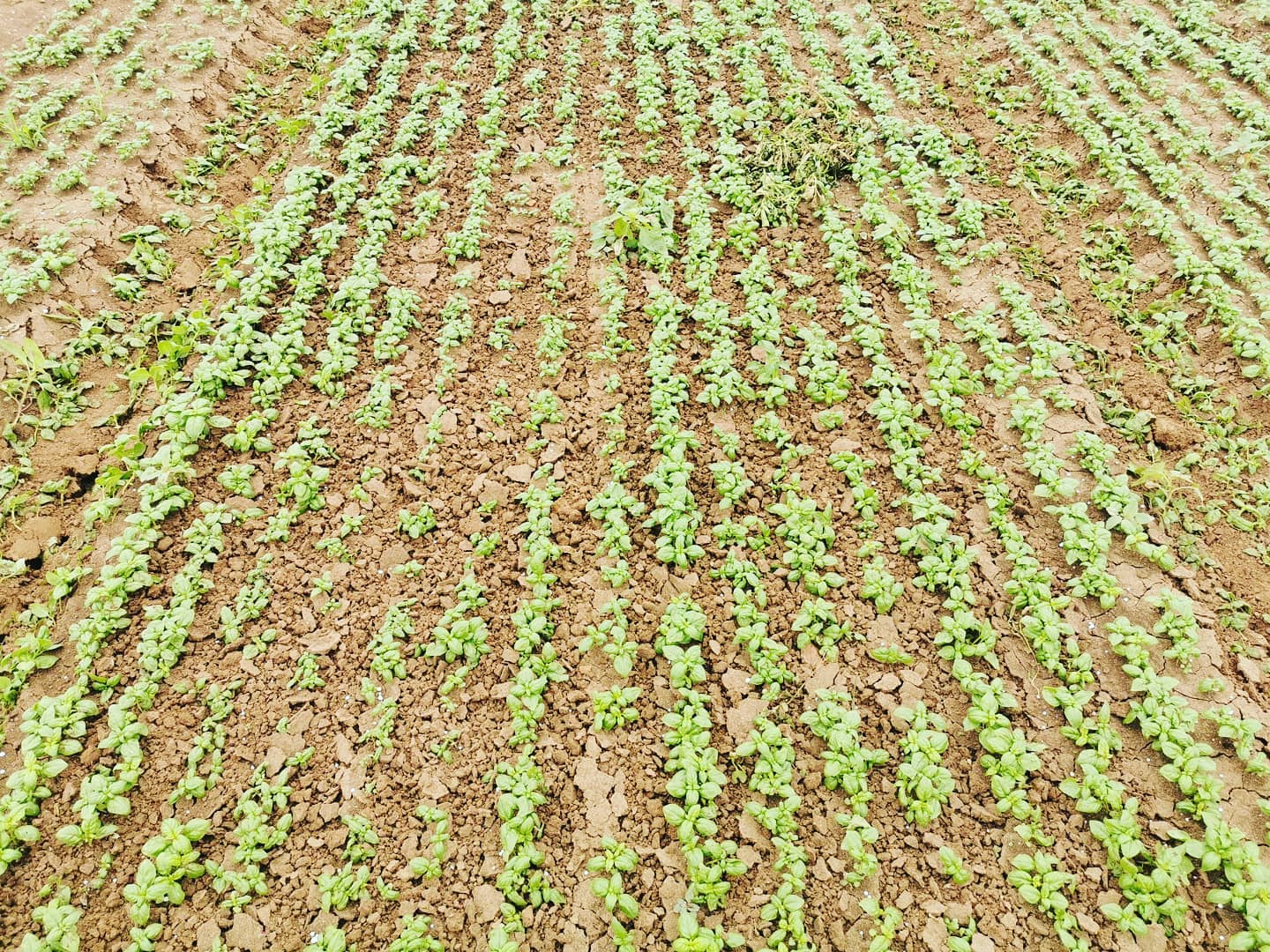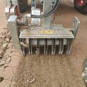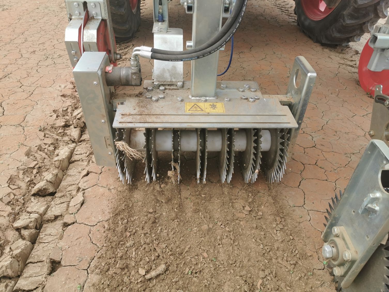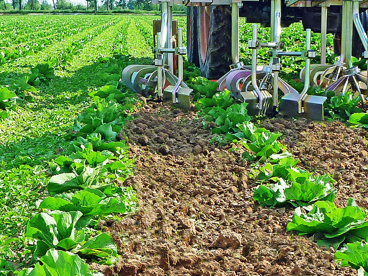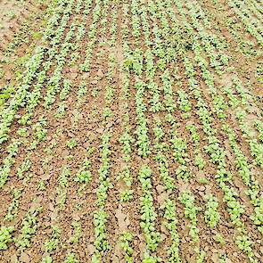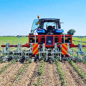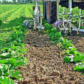 - Mechanisch schoffelen in de rij tot 1 cm van de plant met speciale rotorschoffels om korst te breken en onkruid weg te halen