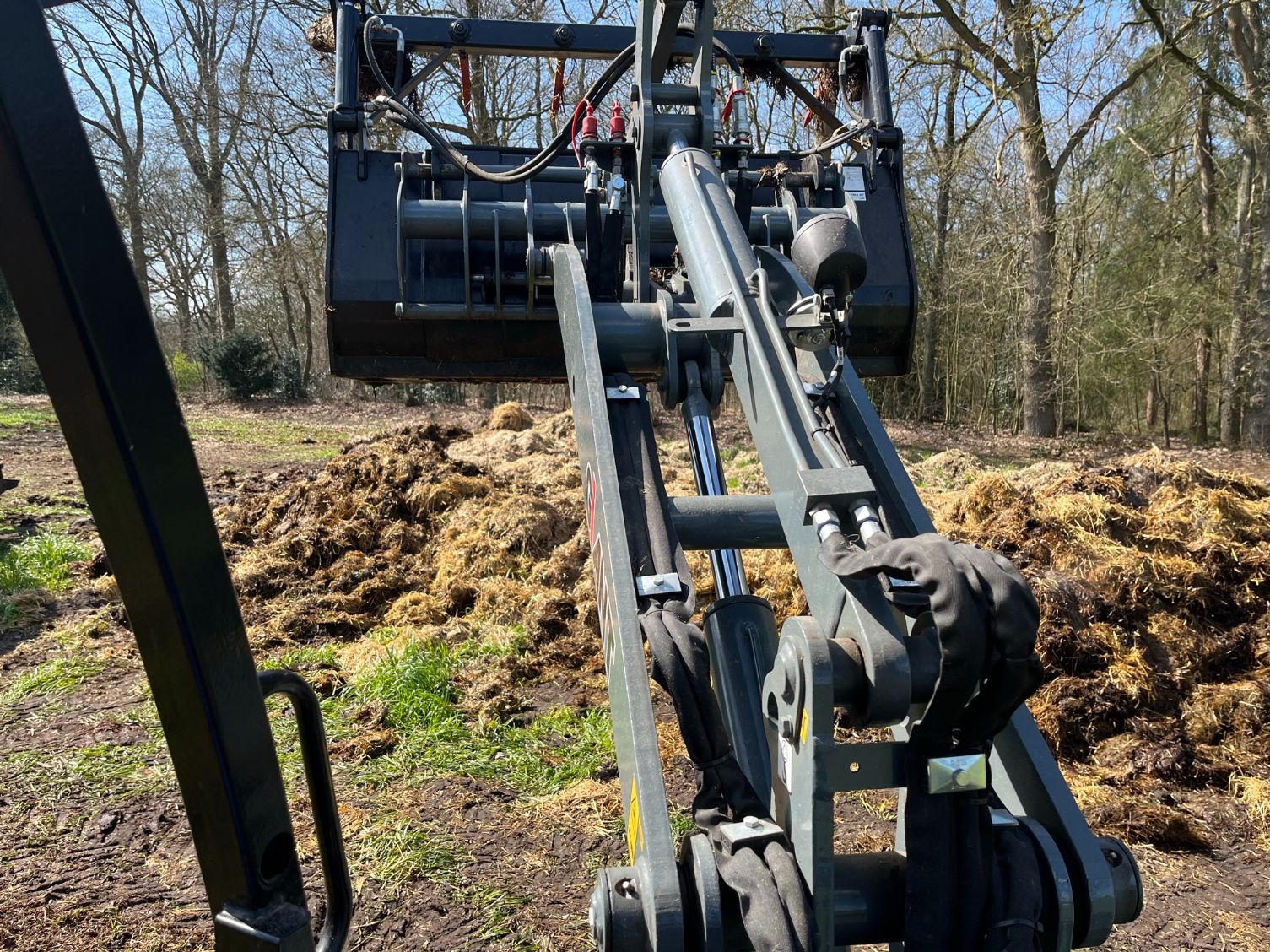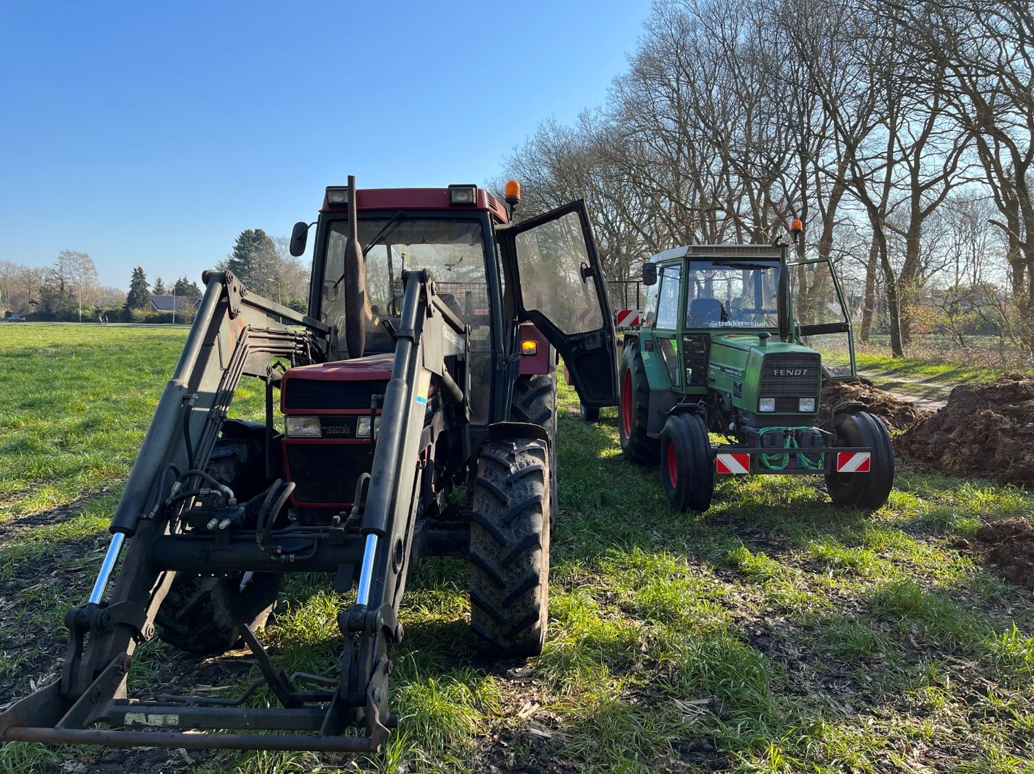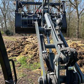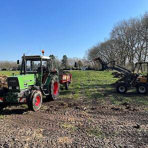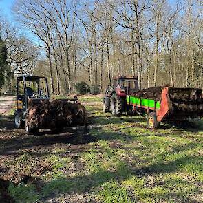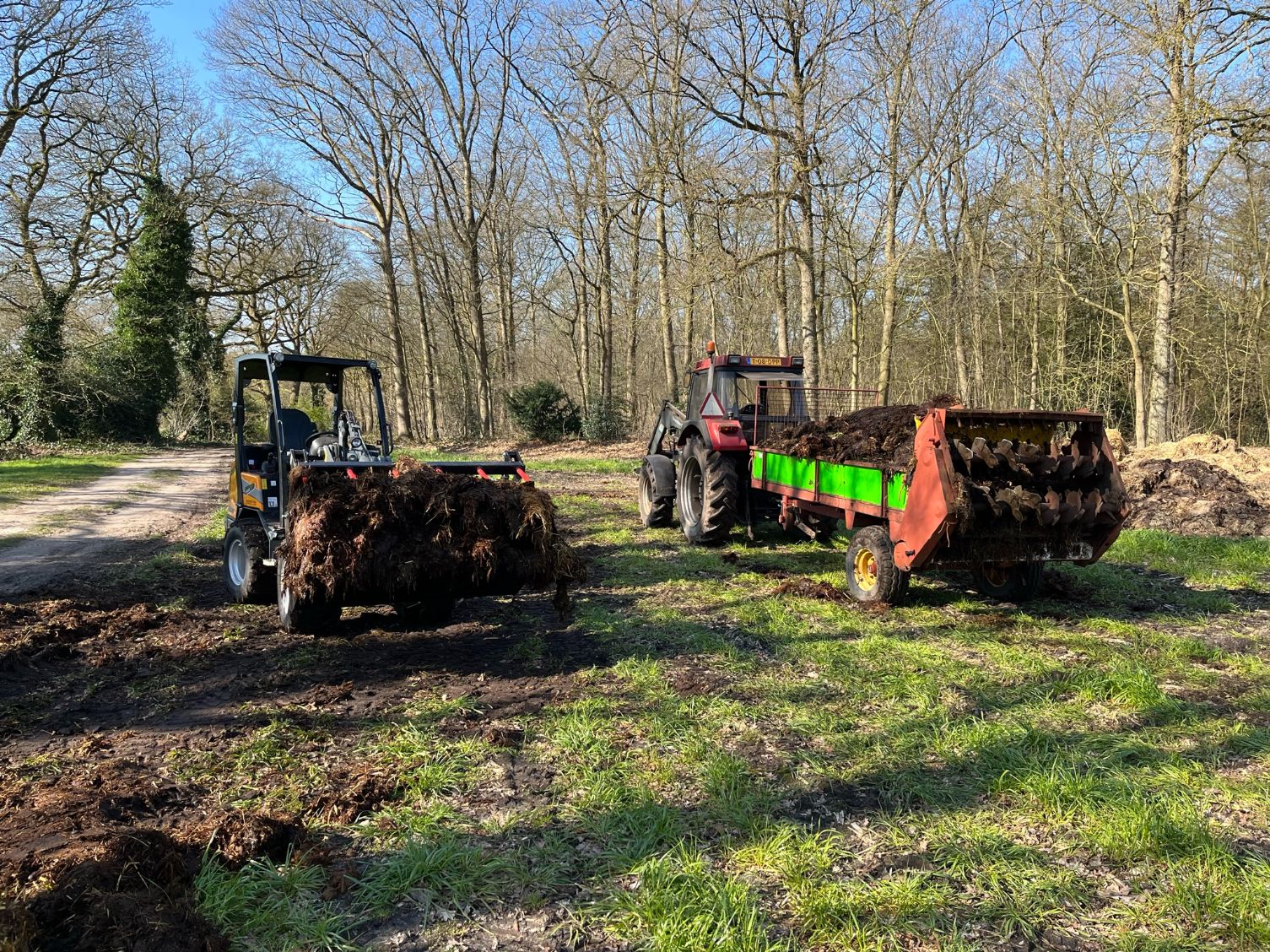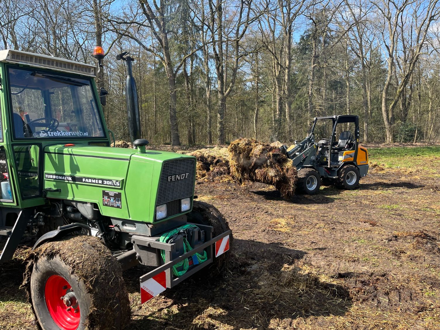 Stalmest verspreiden bij stadsboerderij ’t Nije Hoff. Met de Tobroco Giant werd de mest opgeladen op de twee verspreiders: een Krone Optimat en een Strautmann-meststrooier.