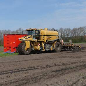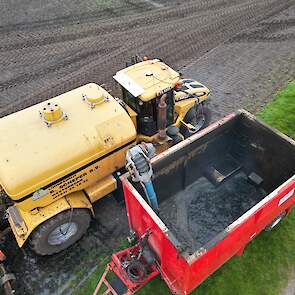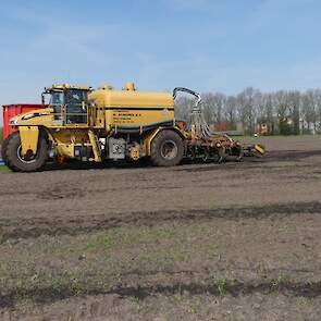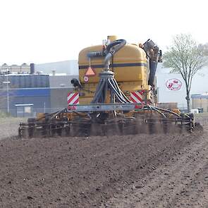 Loonbedrijf B. Scheper BV uit Westerbork (DR) heeft nog een droog stukje bouwland gevonden om de mest te injecteren.