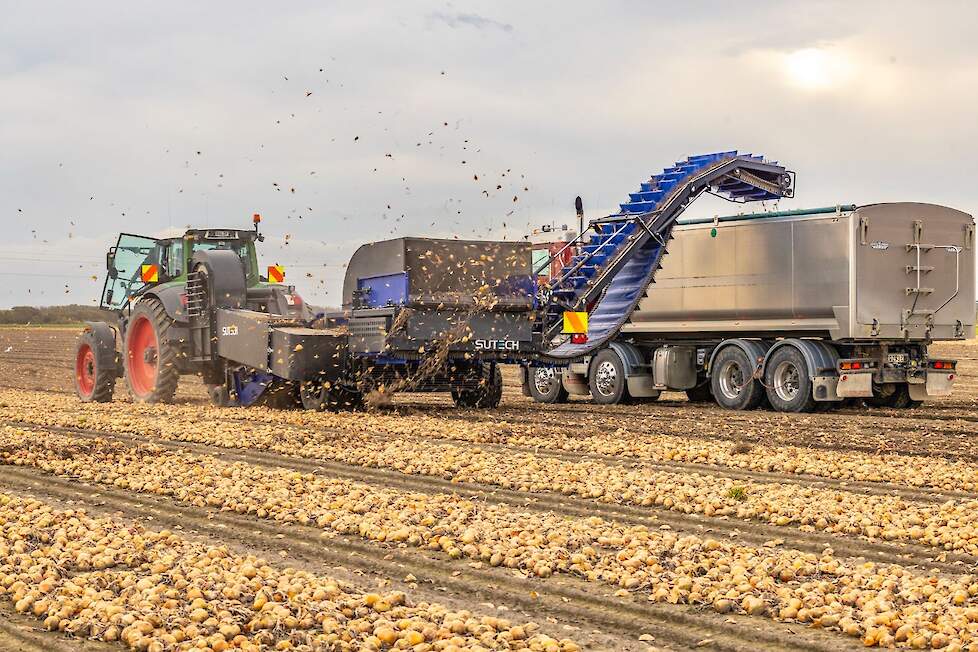 Als eerste West-Europese machinefabrikant heeft het jonge en innovatieve bedrijf SU-Tech een uienlader met geïntegreerde afstaarter gebouwd. De machine heeft inmiddels een succesvol seizoen in Nieuw-Zeeland gewerkt. Reden genoeg om de techniek ook in Europa te beproeven.
