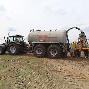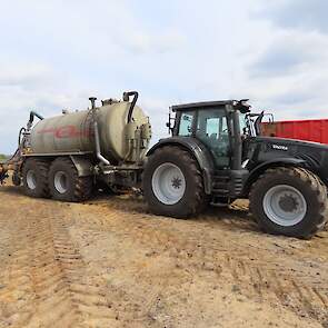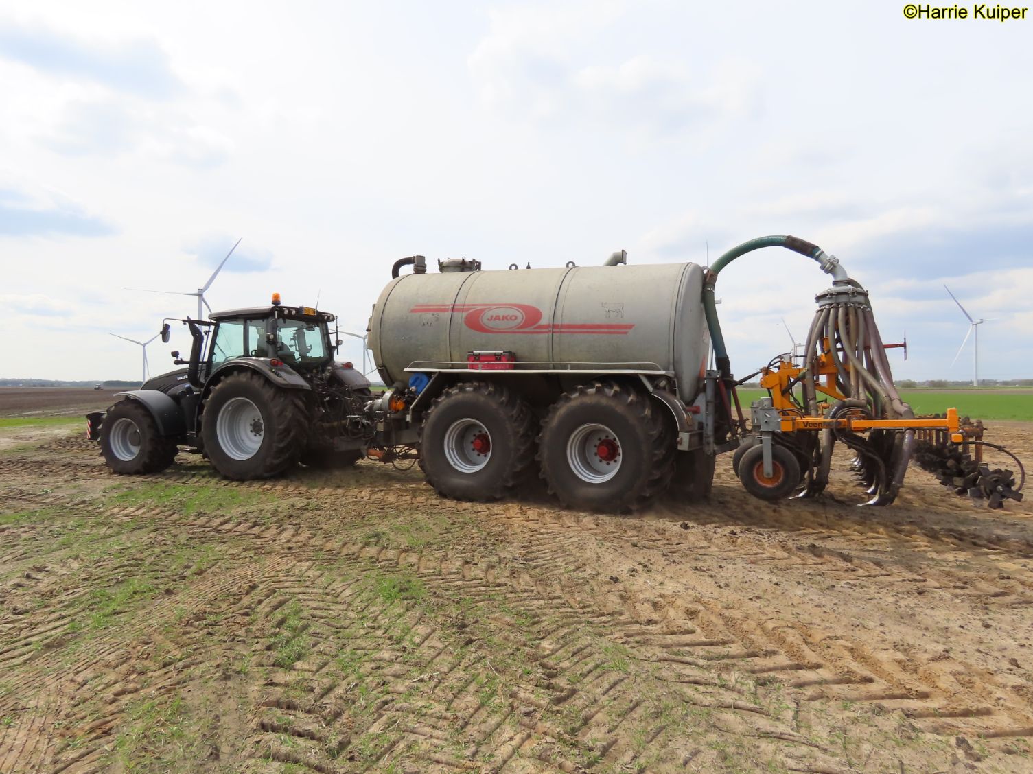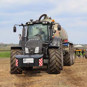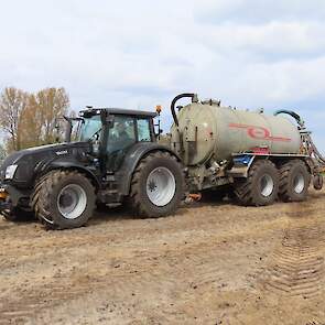 De gebr. Wieringa uit Roswinkel (DR) waren op op 27 april aan het bouwland bemesten met een Valtra T213. De mest werd aangevoerd met een Case 1455 XL.