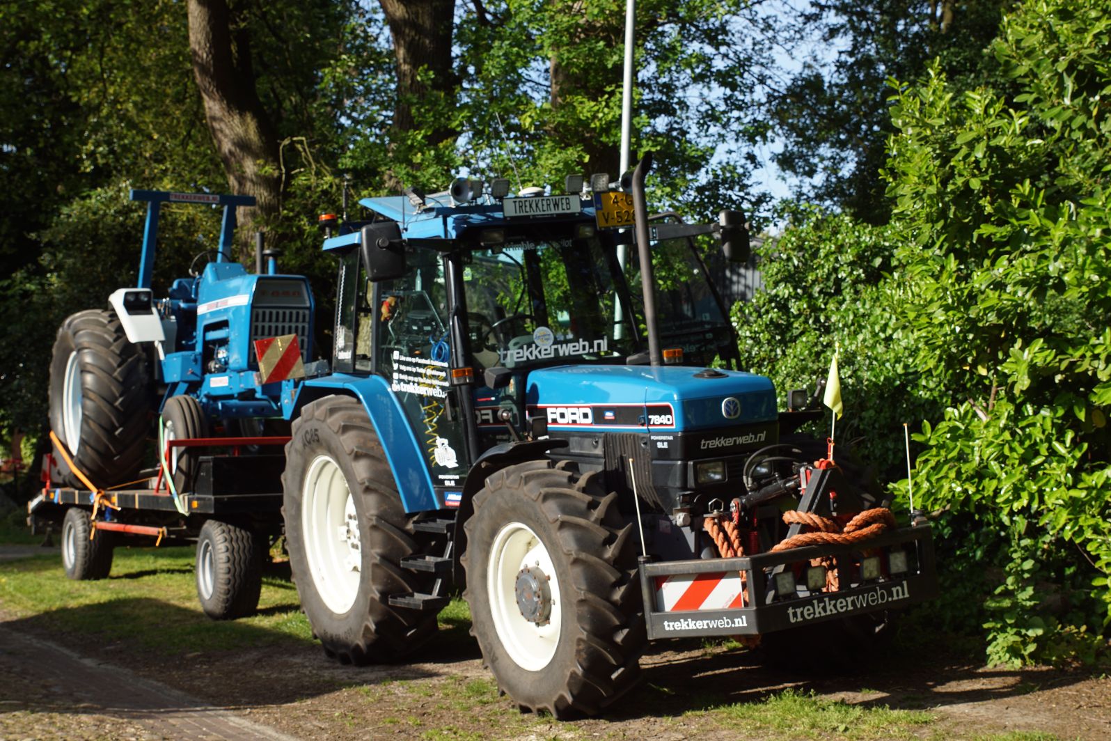 Ford 7840 SLE met Ford 8000 op de dieplader transport trekkerslep