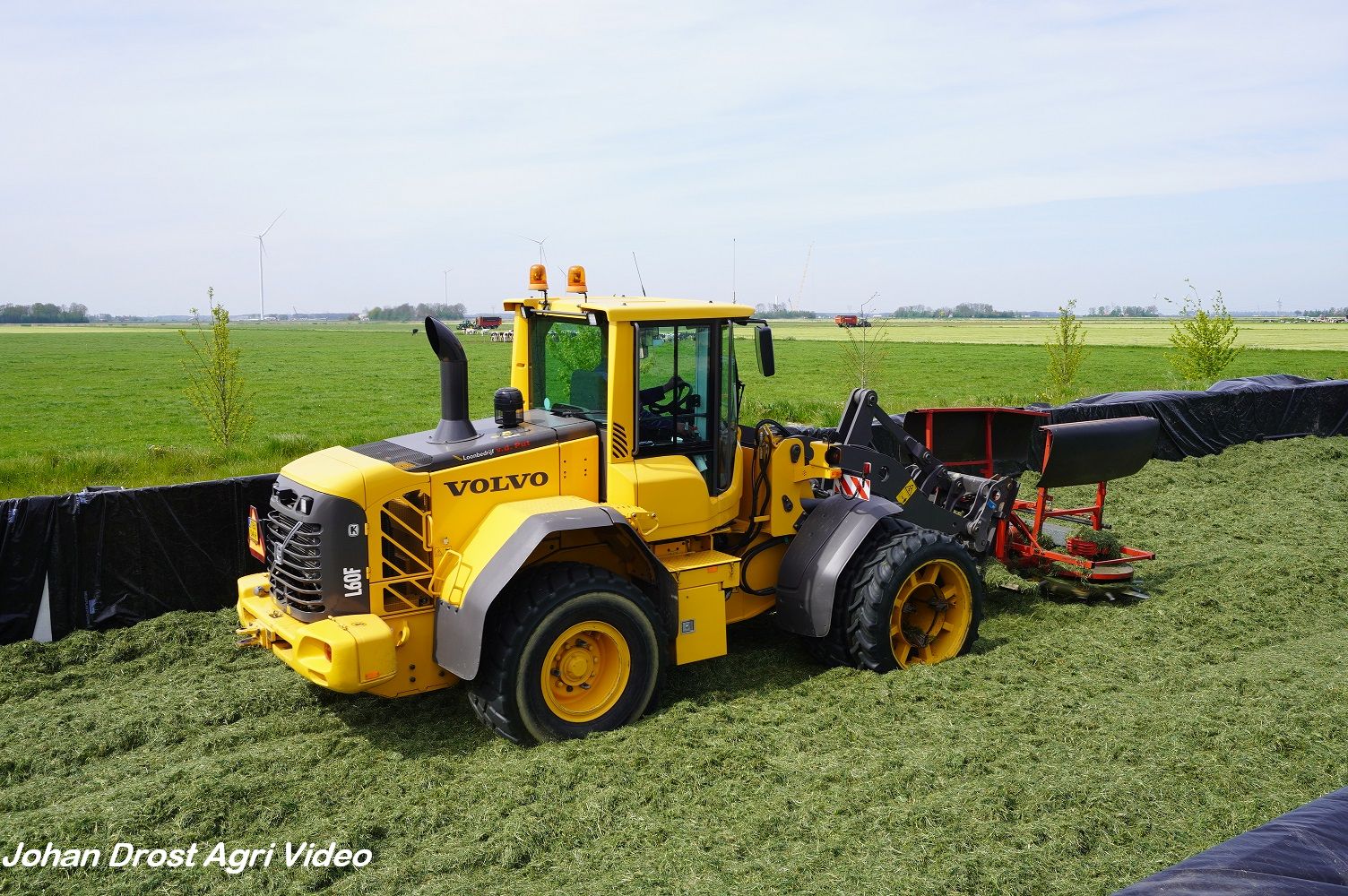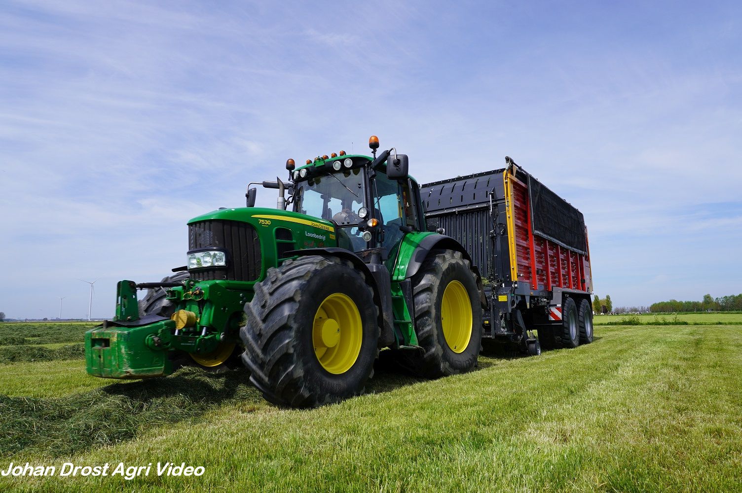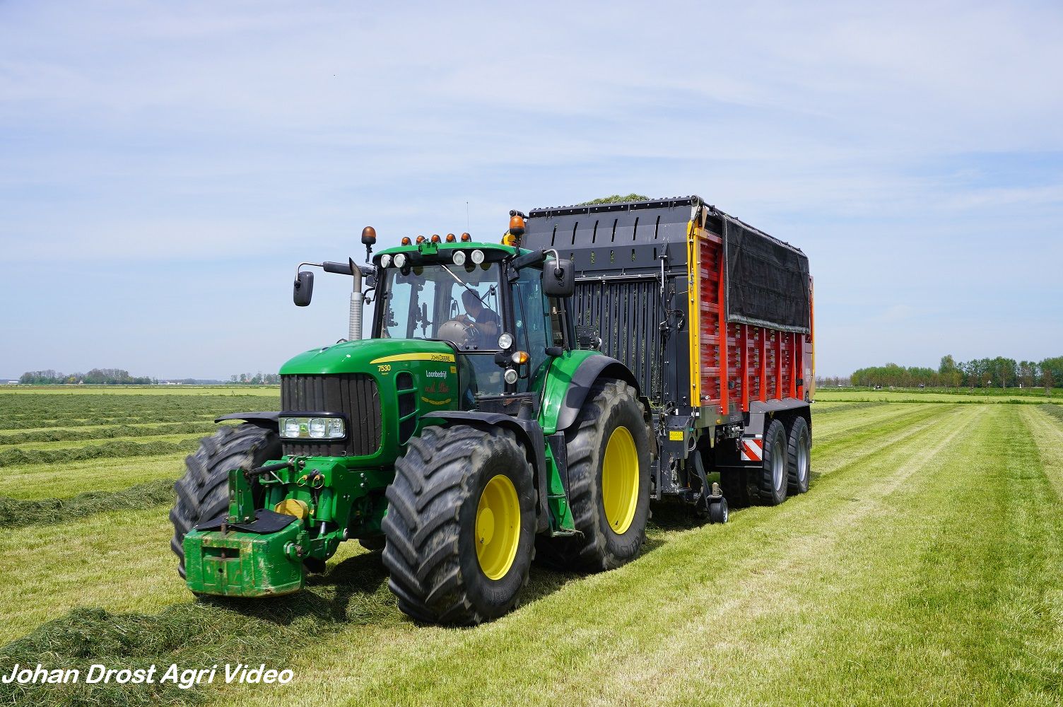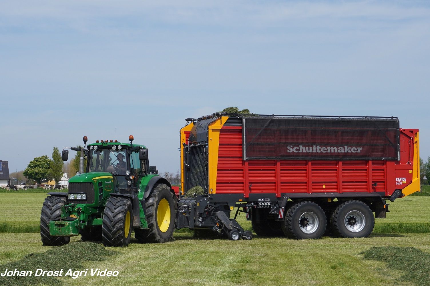 Loonbedrijf van de Put uit Oosterwolde (GD) aan het gras inkuilen met een John Deere 7530 en een Fendt 722 Vario met Schuitemaker Rapide 6600. Op de kuil een Volvo L60F.