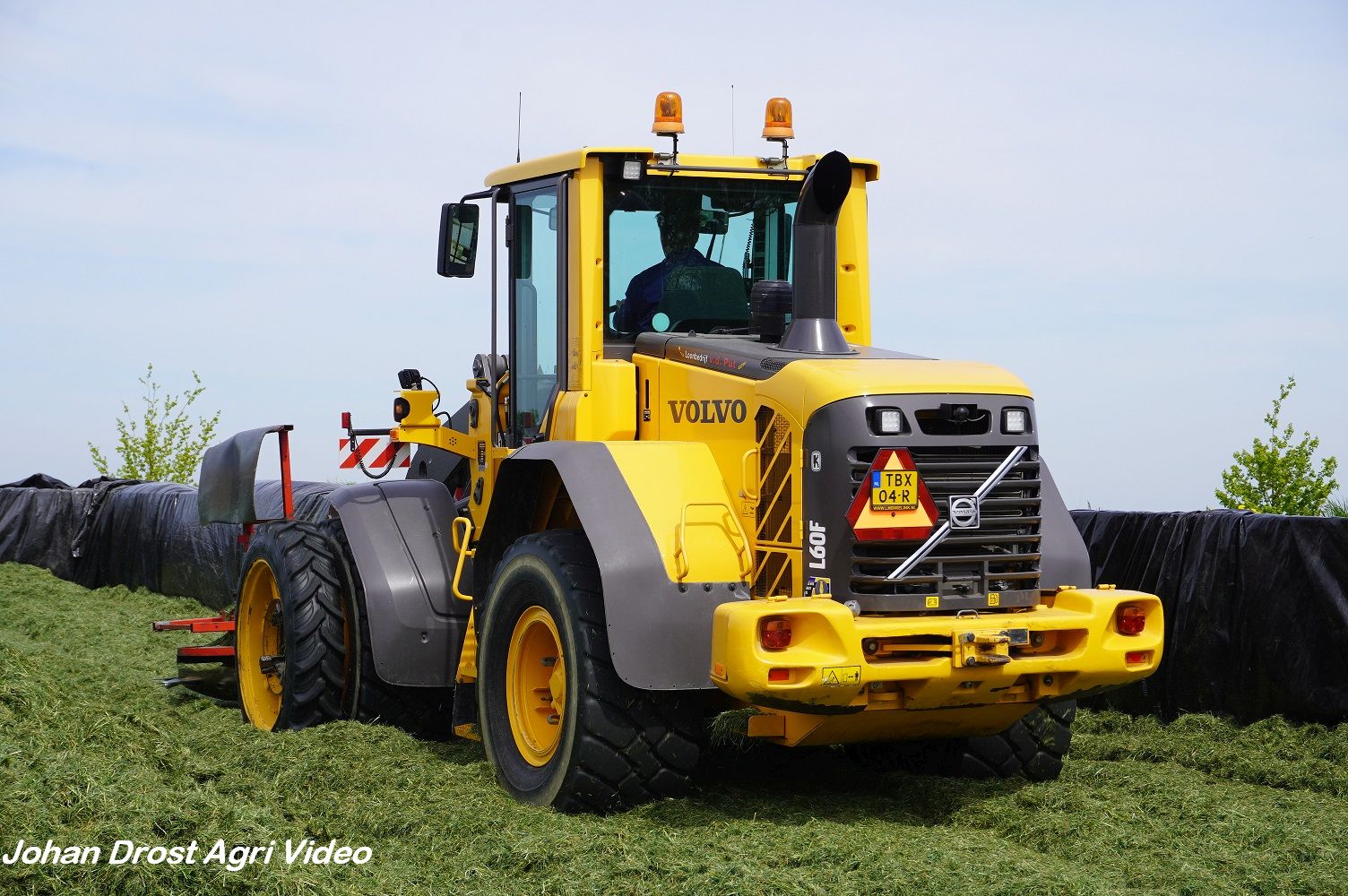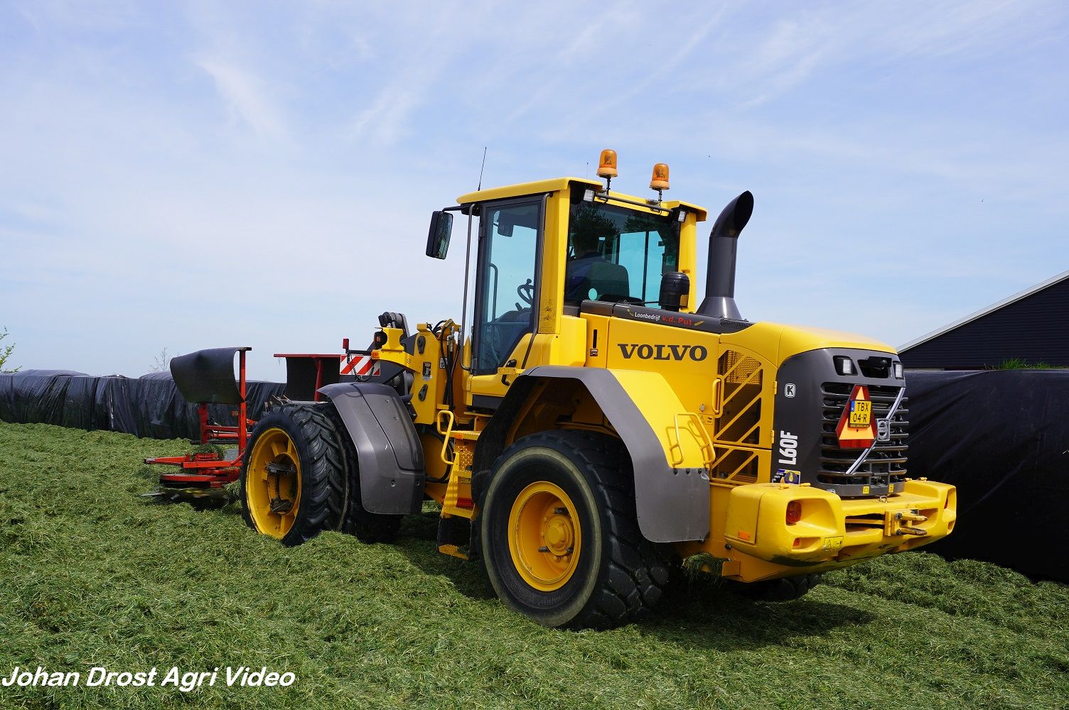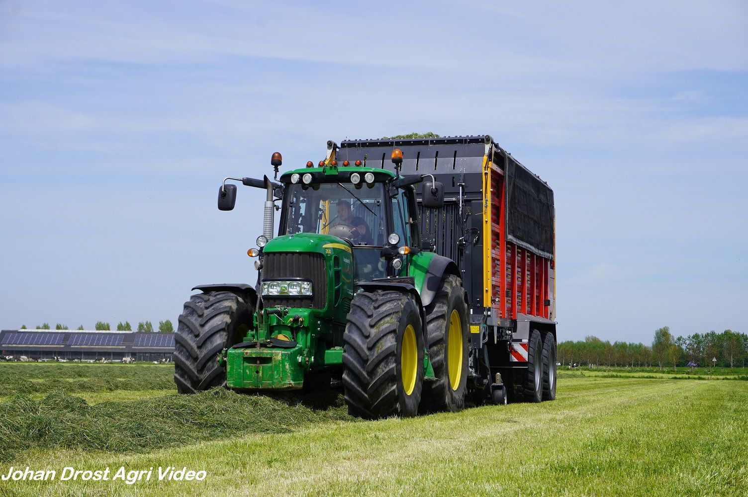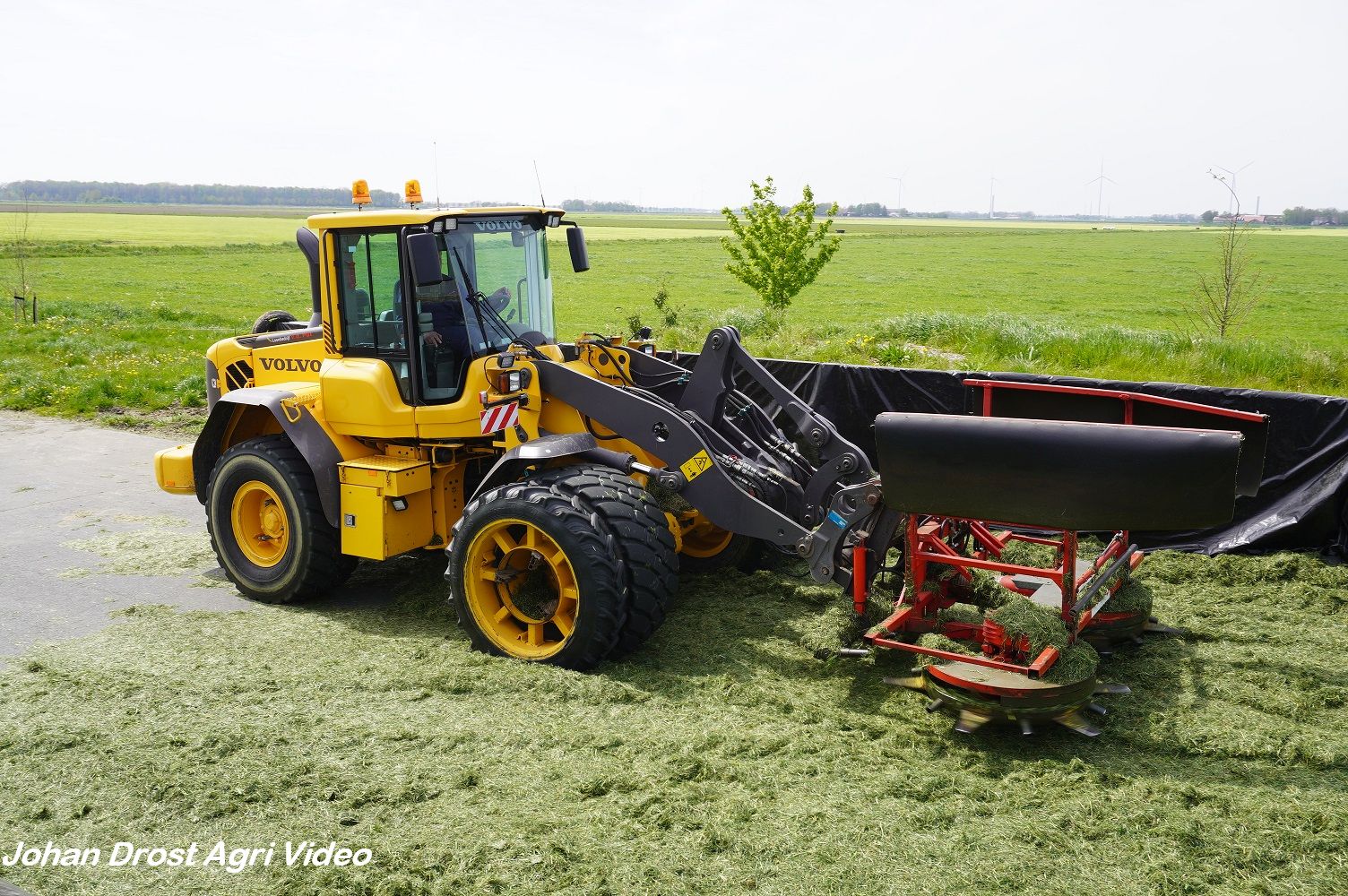 Loonbedrijf van de Put uit Oosterwolde (GD) aan het gras inkuilen met een John Deere 7530 en een Fendt 722 Vario met Schuitemaker Rapide 6600. Op de kuil een Volvo L60F.