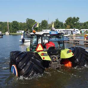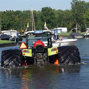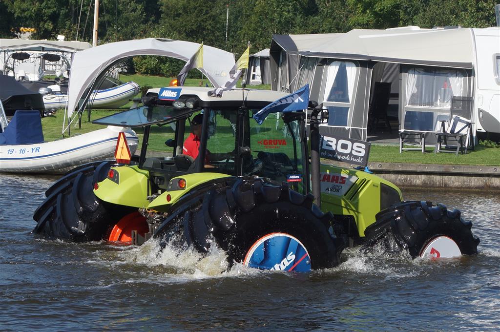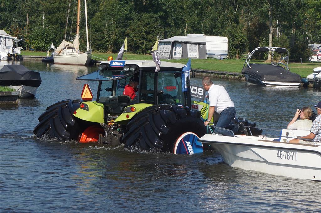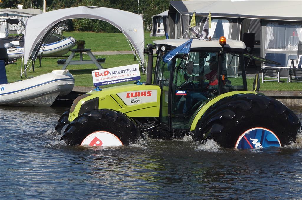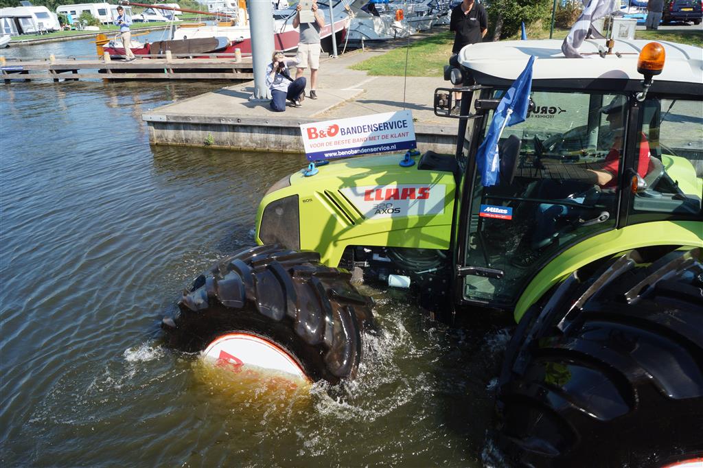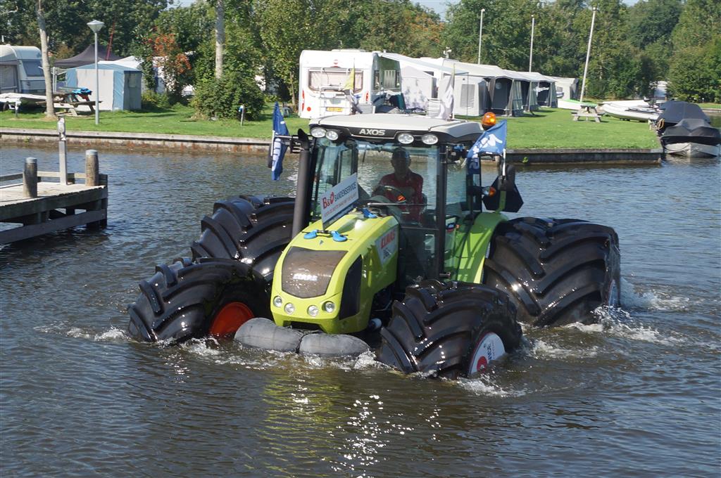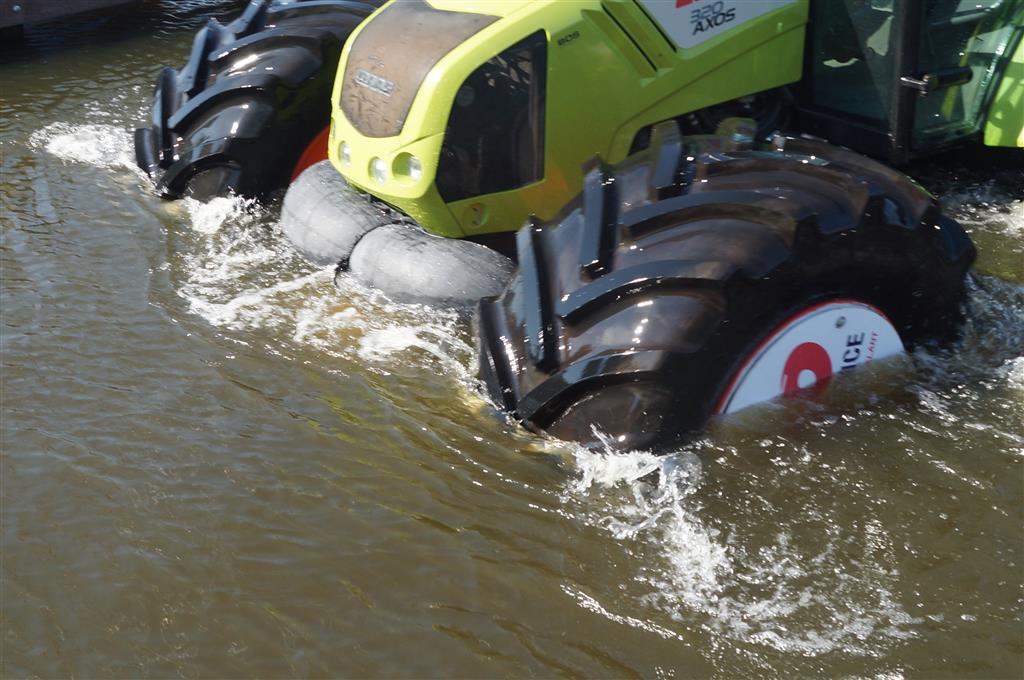 Het gaat allemaal over drijfvermogen. De combinatie van volume en lucht in de gemonteerde banden maakte het mogelijk een 4-tons trekker op het water te laten drijven. Stel je de lage drukverdeling op de grond eens voor als de machine haar dagelijkse werk doet.