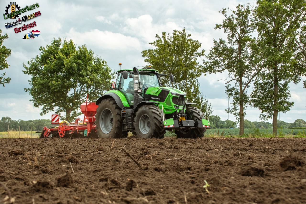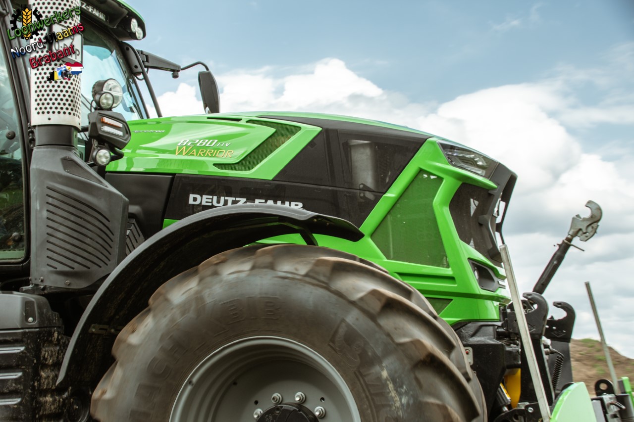 Bij loon-/ grondverzetbedrijf Gebr. de Jong was er een Deutz-Fahr Agrotron 8280 TTV Warrior Edition als demo vanuit Bayens Mechanisatie. Deze sterke trekker was uitgerust met een AGRIbumper, gps en bijna 300 pk's onder de motorkap. Dit perceel werd bewerkt met de Kverneland CLI-woeler, gevolgd door een Terrano 3 FX. Deze cultivator maakt gebruik van diepe tanden tot 30 cm diep en een aandrukrol achterop; ook is er de mogelijkheid om te zaaien. Een prachtige combinatie om aan het werk te zien.